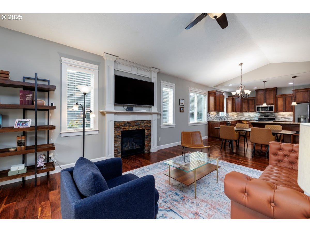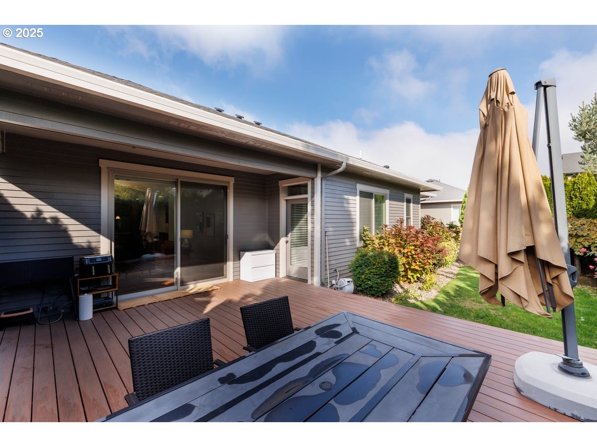 Experience refined living in this stunning single-level craftsman located in the desirable Tukwila Community with pool, tennis/pickleball courts, and nearby OGA Golf Course. This elegant home offers a spacious open floor plan with vaulted ceilings, beautiful engineered hardwood and laminate flooring throughout-no carpet! The gourmet kitchen features slab granite counters, large island, SS appliances,gas range, built-in beverage chiller, and custom soft-close cabinetry with under-cab lighting.The luxurious primary suite includes a tray ceiling, spa-like bath with dual vanity, tile shower, walk-in closet,heated fans in both baths and direct access to the private composite deck-perfect for morning coffee or quiet evenings. Fully owned solar system with automated irrigation and low-maintenance landscaping, you'll have more time to enjoy the pool or perfect your golf swing. Extra-deep 2-car garage and ample parking.Luxury, comfort, and elegance await-welcome home!