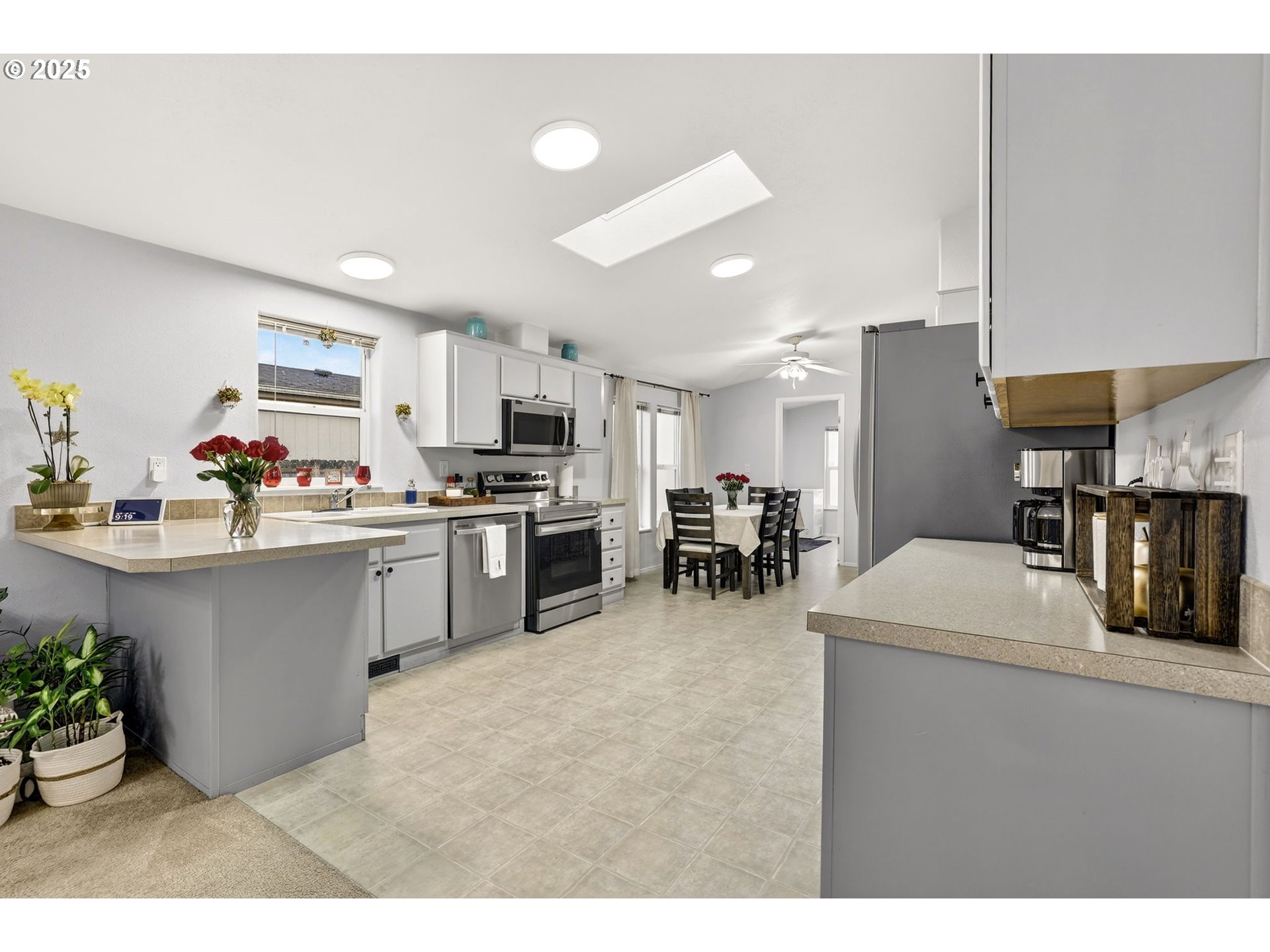 Step inside and you’ll immediately feel how open, bright, and easy this home lives. Thoughtfully maintained and truly move-in ready, it offers a comfortable flow that works for both everyday routines and relaxed gatherings. The primary suite feels like a quiet retreat, while the kitchen and living room area — with stainless steel appliances and recent updates — naturally become the heart of the home. Everything is laid out on one level, creating a sense of simplicity and ease, with extra space to adapt to your lifestyle, whether that means a home office, hobby room, or space for guests. Tucked within the welcoming Woodburn Crest Estates community, this home offers the kind of comfort that lets you settle in and simply enjoy where you live. And when you need to be on the move, easy access to I-5 makes trips to Salem, Portland, and throughout the corridor simple and convenient.