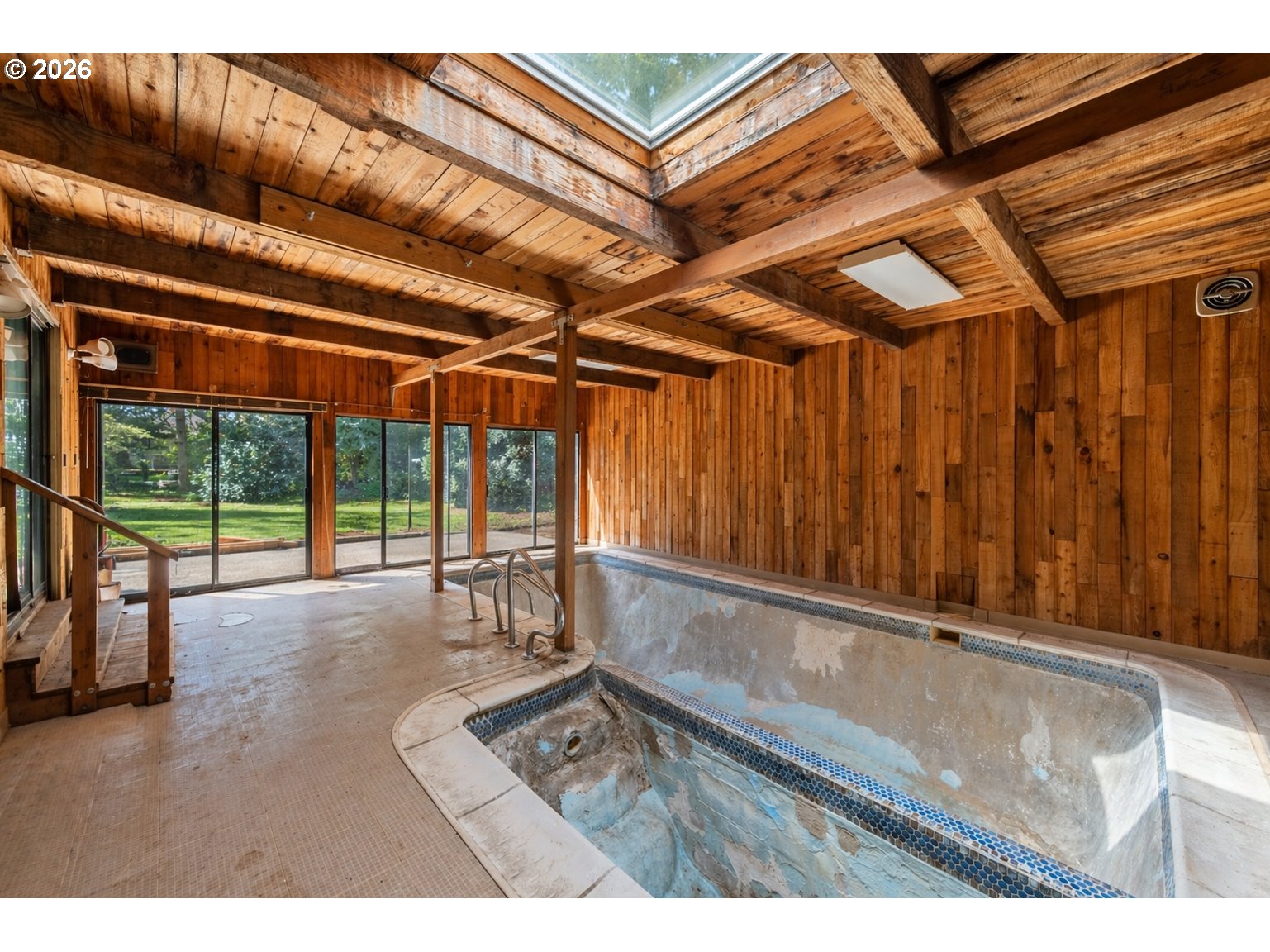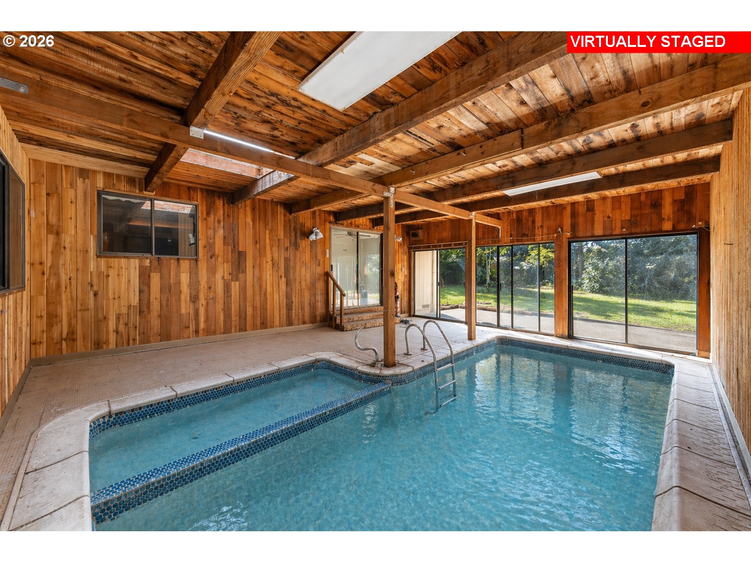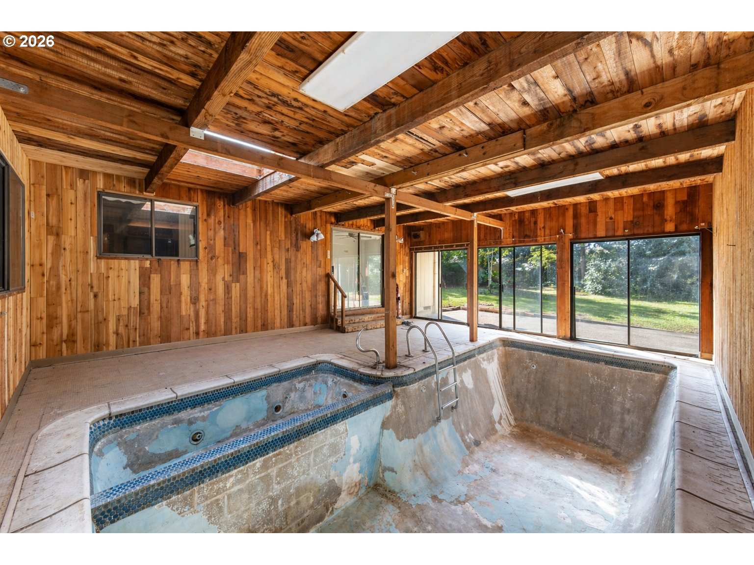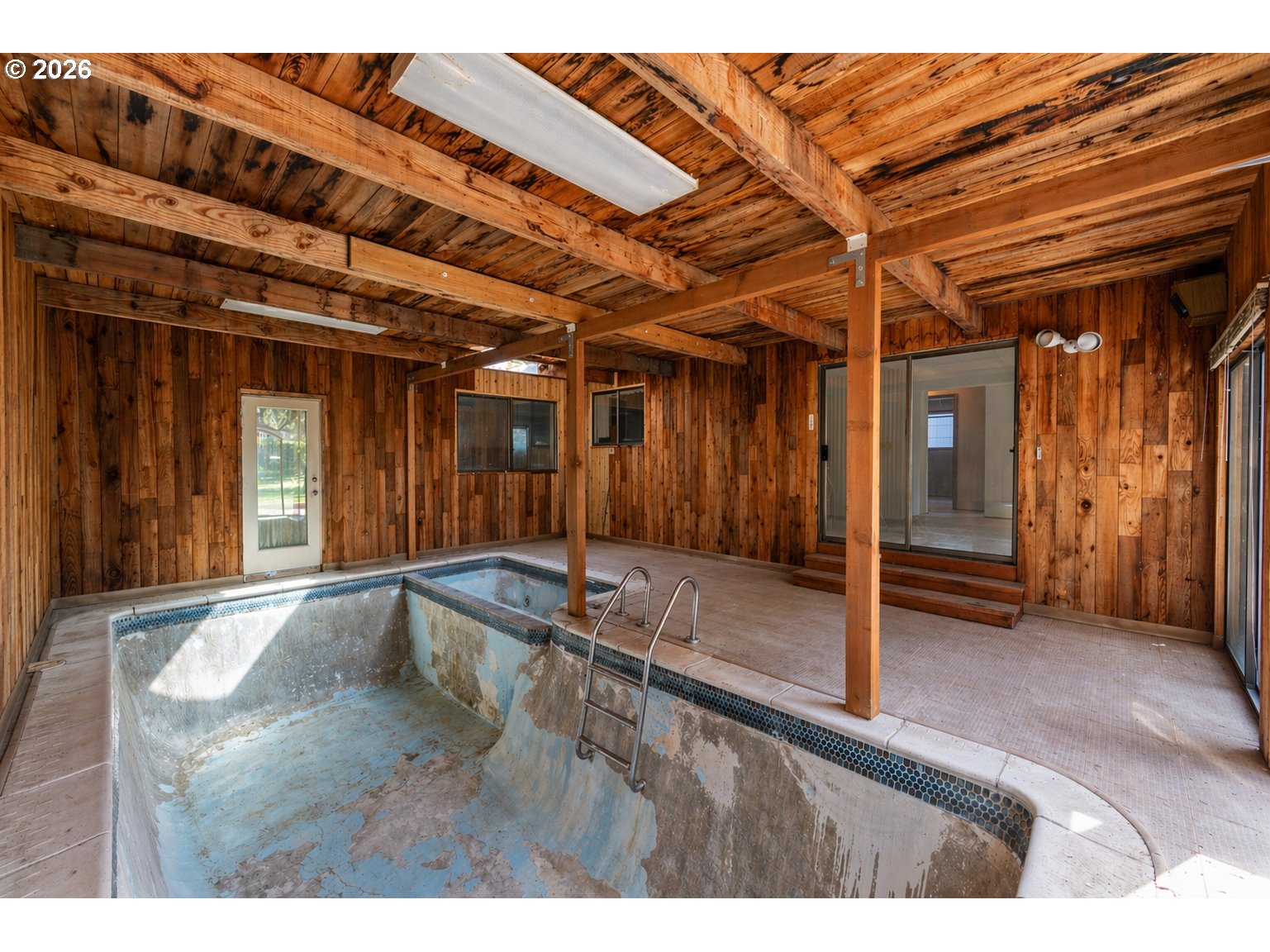 Tucked away on a quiet side street and sitting on a quarter acre of land, this 1975 ranch is waiting for your personal touch. This 3 bedroom, 2 bath ranch offers solid construction, a large back yard, a family room, living room and new furnace (2025). The indoor hot tub and swimming pool give you that chance to be creative, get it back in working order, cover it up or fill it in for an indoor atrium. The backyard is fully fenced and has RV parking. Located just a few blocks from Faye Wright Elementary School.
