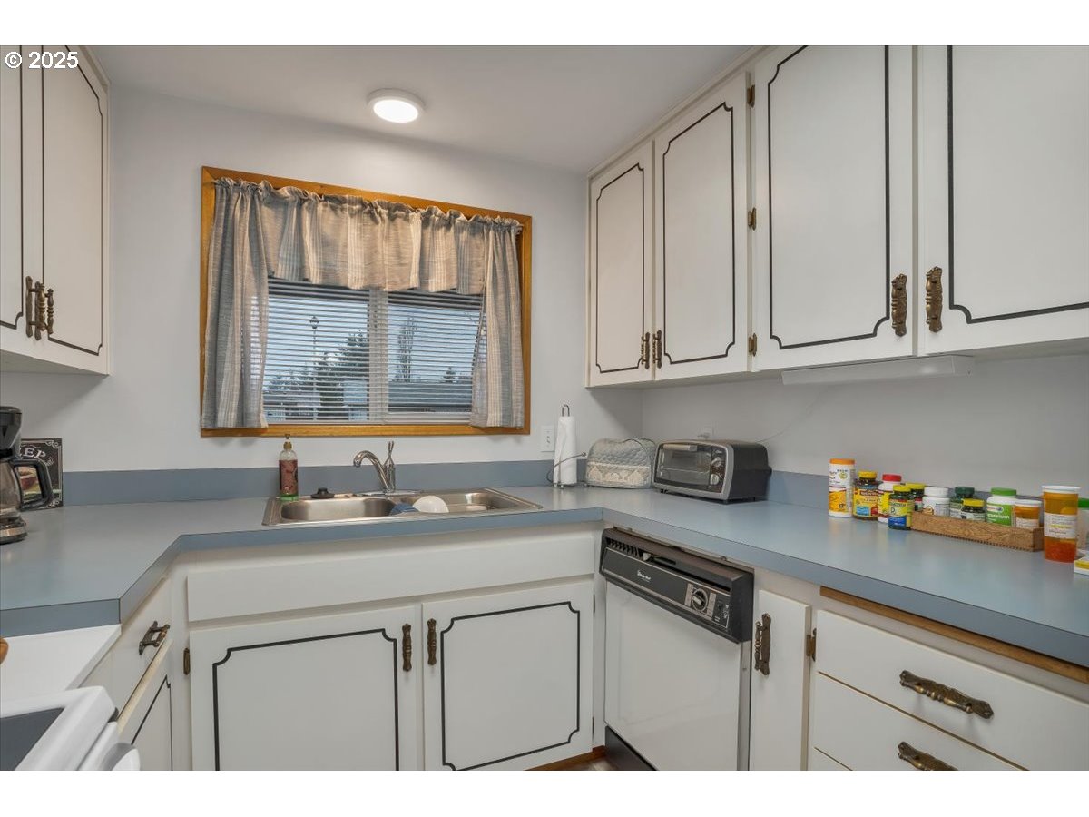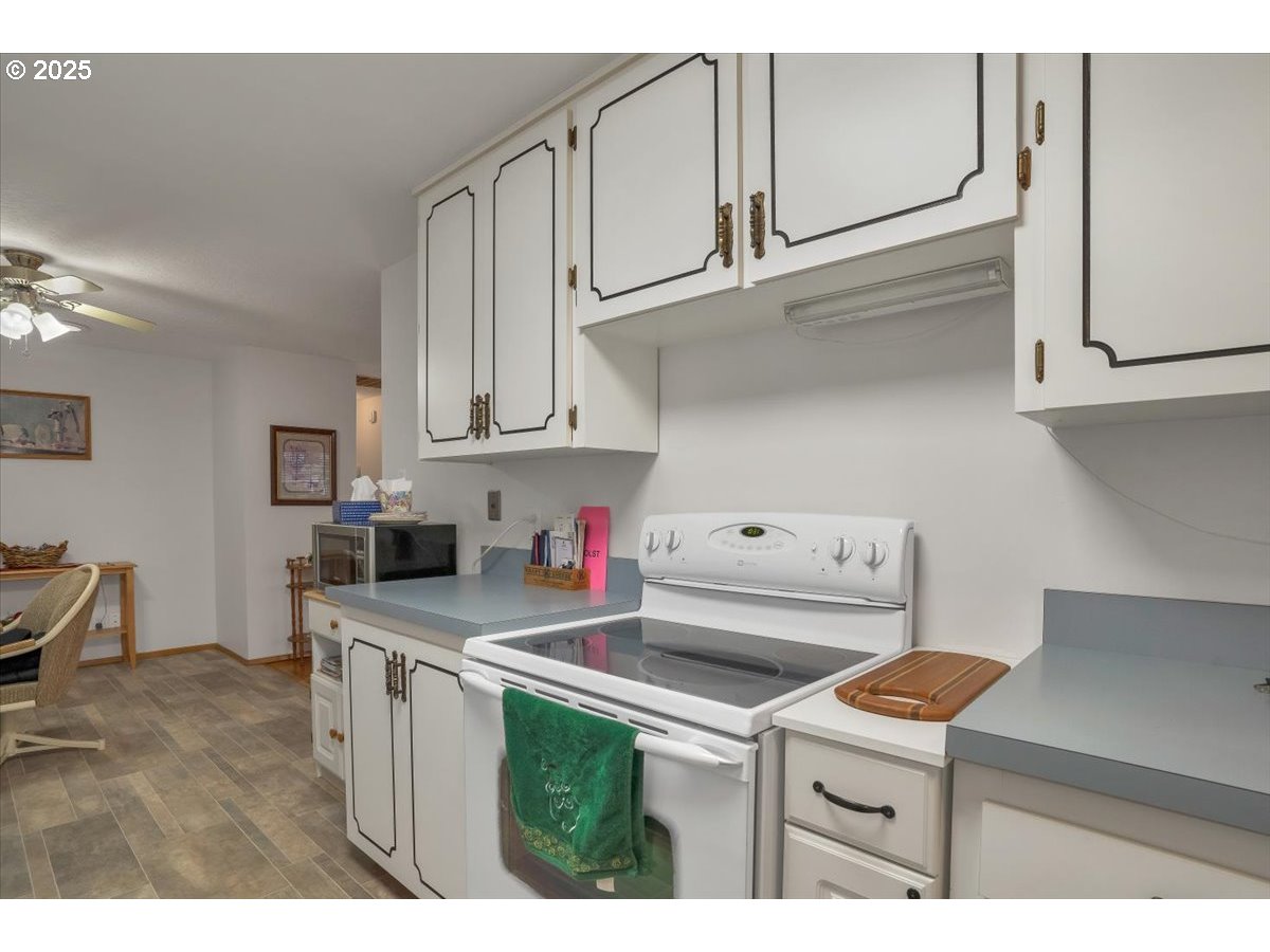 Well-maintained home in Woodburn Estates & Golf, a 55+ community. Features a bay window with built-in seat that enhances the living room and adds natural light. Spacious living area with an area for dining. Thermal-pane windows and a slider from the primary bedroom lead to a covered patio in the backyard, perfect for year-round sitting and relaxation. The partially covered front porch provides a welcoming space for outdoor enjoyment. Home includes HC features for accessibility.