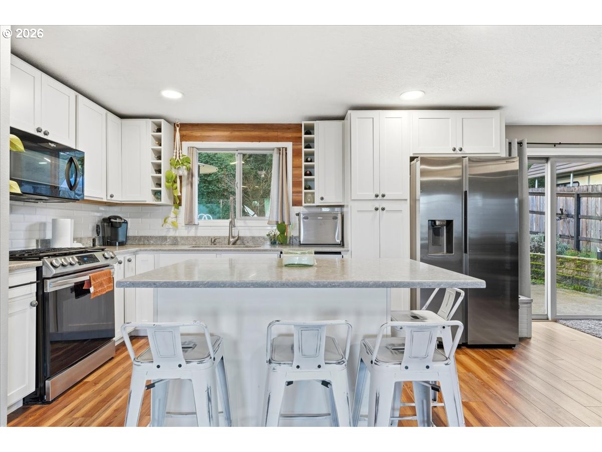 4 bed/3 bath in desirable South Salem on a quiet cul-de-sac! The oversized lot has extensive concrete work, including a new approach for easy RV access—RV & trailer fit side by side! An extra-large backyard patio and yard with UGS is ready for entertaining. Inside, find an open-concept living space with a cozy gas fireplace, a kitchen with stainless steel appliances & quartz counters. LVP floors throughout the main that flow into into the spacious downstairs 4th bedroom, which could be a flex or bonus room.