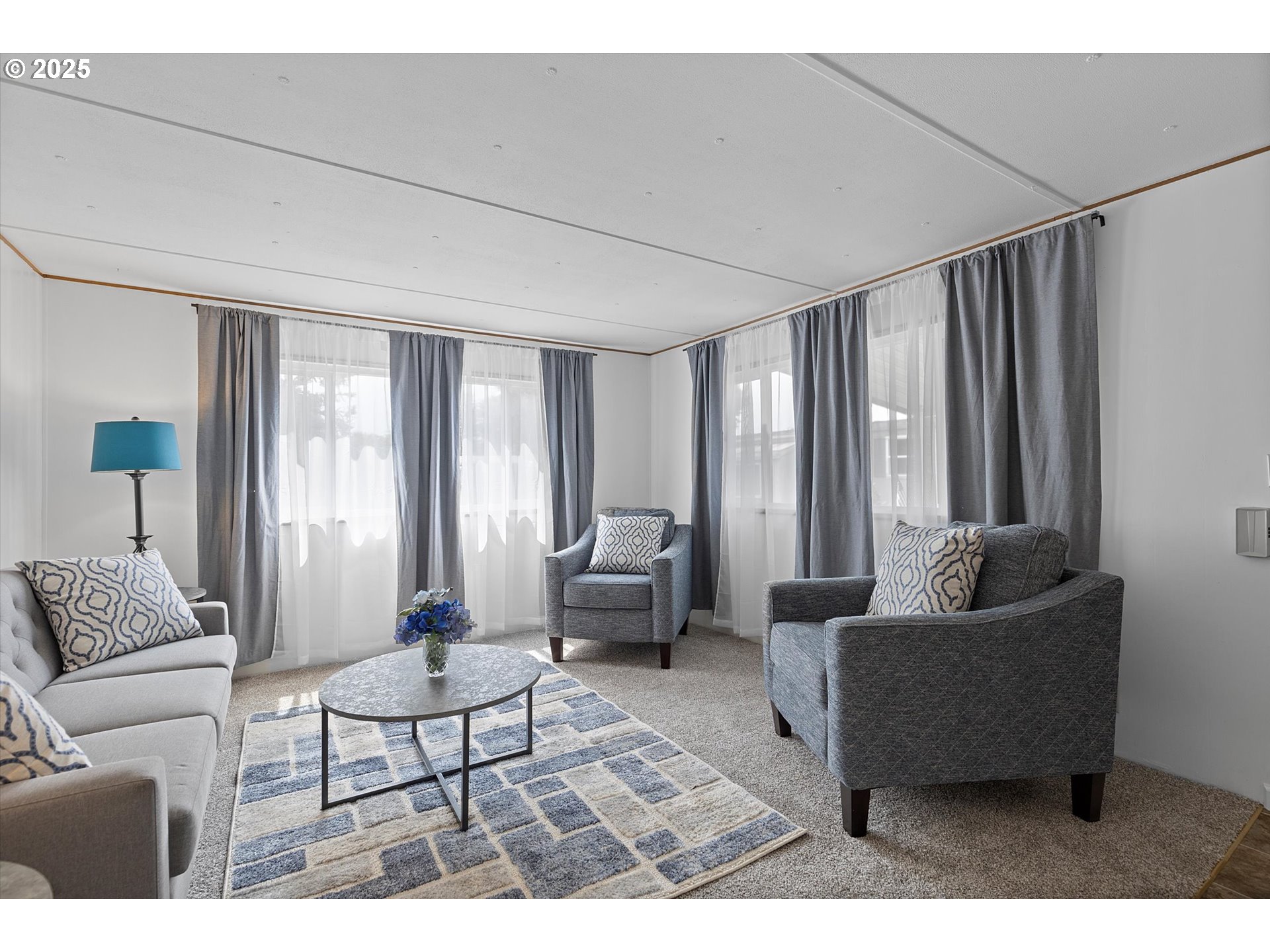 Enjoy all the updates this home has to offer. Wonderful floor plan with large living room that opens up to the kitchen and a built in bar into the dining area. New kitchen sink and faucet has been replaced. Comes with the refrigerator and stove. New carpet and vinyl flooring. Large bedrooms and full sized closets. The primary bedroom has 2 built in dressers and offers access to the main bathroom. Washer and dryer are also included. New interior and exterior paint. Newer vinyl windows. Located on a nice lot with a large backyard. Enjoy this oversized shop that has windows to let in natural lighting, one this size is hard to come by. Covered carport with large covered patio. Financing available. Space rent $875.00 buyers must get park approval prior to purchasing. Located at Woodburn Senior Estates Mobile Home Park. This is a 55+ community. Easy access to freeway, shopping and restaurants. This home is ready for it's new owners! Listing broker is related to sellers.
