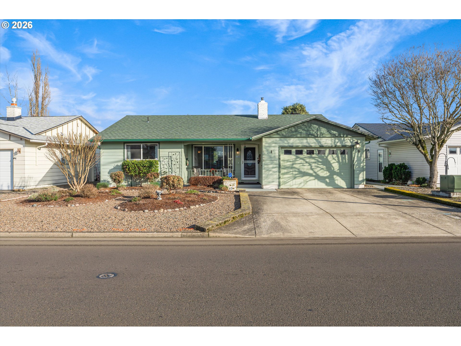 Discover Senior Estates Golf and Country Club, a premier 55+ vibrant community! Home backs to putting green and view of 12th hole! Covered front porch invites you in to this 2bd, 2ba 1210sf gem! Enjoy the soothing ambiance of the gas fireplace. Attractive newer laminate flooring in main living areas. Updated kitchen offers newer BI range and microwave, and abundant counter, storage space. Adjacent is a comfortable sitting space or poss nook area, plus conveniently placed computer/workspace area! A private bath for the primary bedroom w/step-in shower. Generous guest BR. Slider leads to fenced back yard w/expanded concrete, generous covered patio. A convenient Gate in back for golf carts to drive off the course onto your own back patio. Re-landscaped front yd w/sprinkler sys. Recent updates are sure to impress: new laminate 2022, gas furnace 2024, a/c 2025, both showers remodeled 2020, updated vanity in hall bath, kitchen and bathrooms w/slab granite countertops, siding, roof, gutters, patio cover, vinyl windows, pull down shades. Every aspect of the property reflects the care and attention it has received. An abundance of storage cabinets in attached garage, new garage door opener, plus pull-down ladder access to attic for additional overhead storage. With a double-width driveway, there's plenty of space for you and your guests to park. HOA includes parks, library, meeting room, fitness center, indoor pool, and more! A plethora of activities to enjoy: pickleball, billiards, exercise, crafts, aerobics, water volleyball and active social clubs. Take in a meal at the on-site restaurant. You'll love the resort lifestyle! Welcome to your new haven!