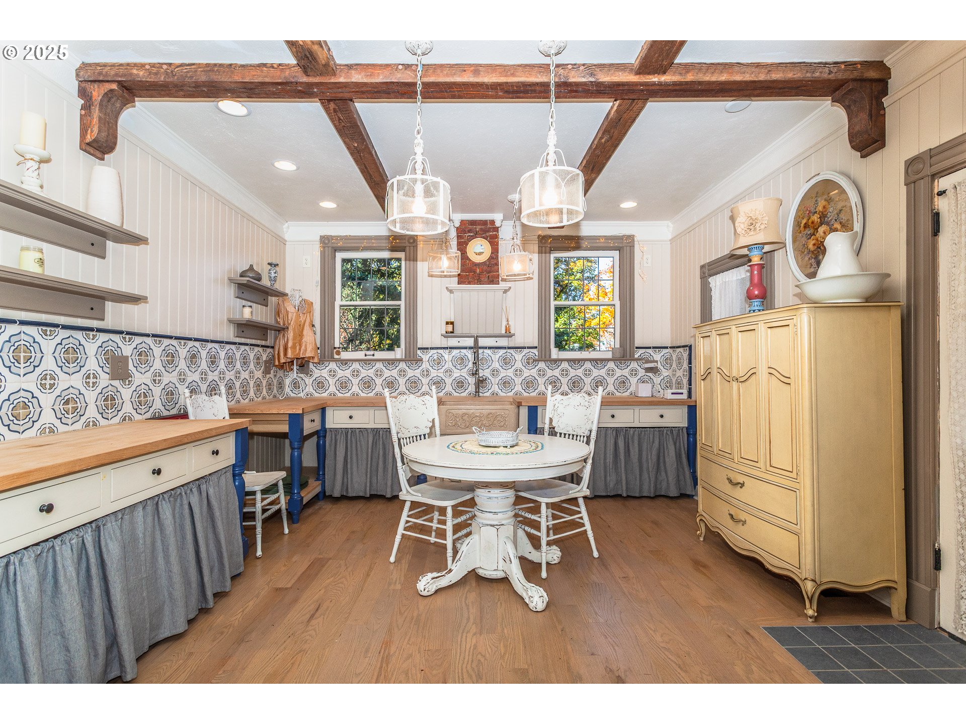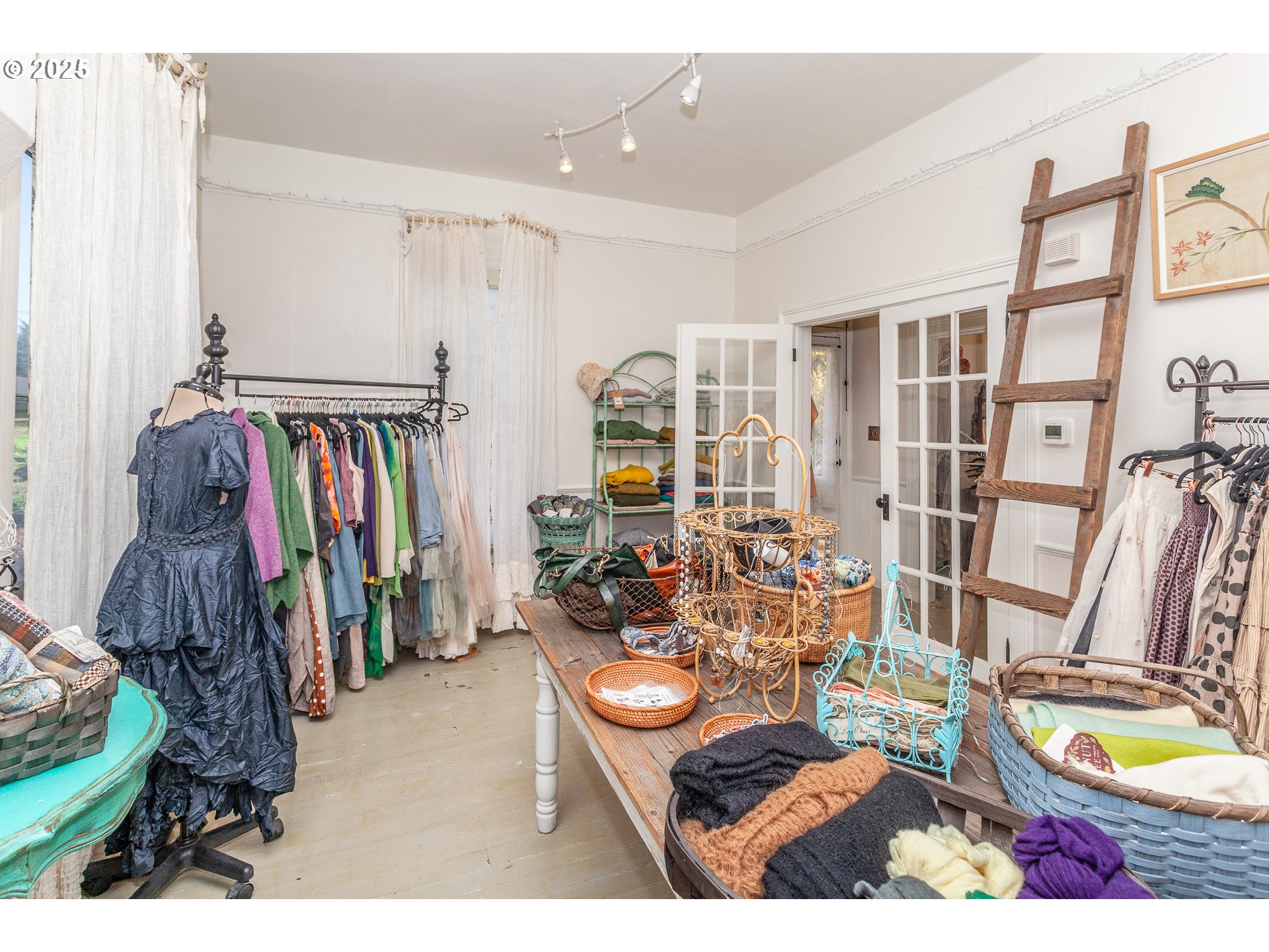 Wonderful colonial in the heart of Aurora’s antique district! Historic Aurora is a hub for antique, and vintage shopping. Known as the Captain William Miley House, current use is as a dress shop but could serve a variety of uses from retail, office space, mixed use commercial/residential and more! This charming building has been lovingly restored and updated, with all the original charm and character intact! New hardwoods in the kitchen, which features a classic beamed ceiling, new cabinets, counters, and farm sink. Vintage charm in the retail shop with fir floors, high ceilings, and plenty of shop or office space. Two generous sized rooms upstairs could be additional retail area, storage, or living space! Remodeled bath features classic claw foot tub and separate laundry area. Updates include plumbing, electrical, HVAC, roof, and more! .3 acre lot offers rooms for future expansion or parking. The perfect location with Highway 99E frontage, and a serene back yard view of trees and green space. This is a must see!