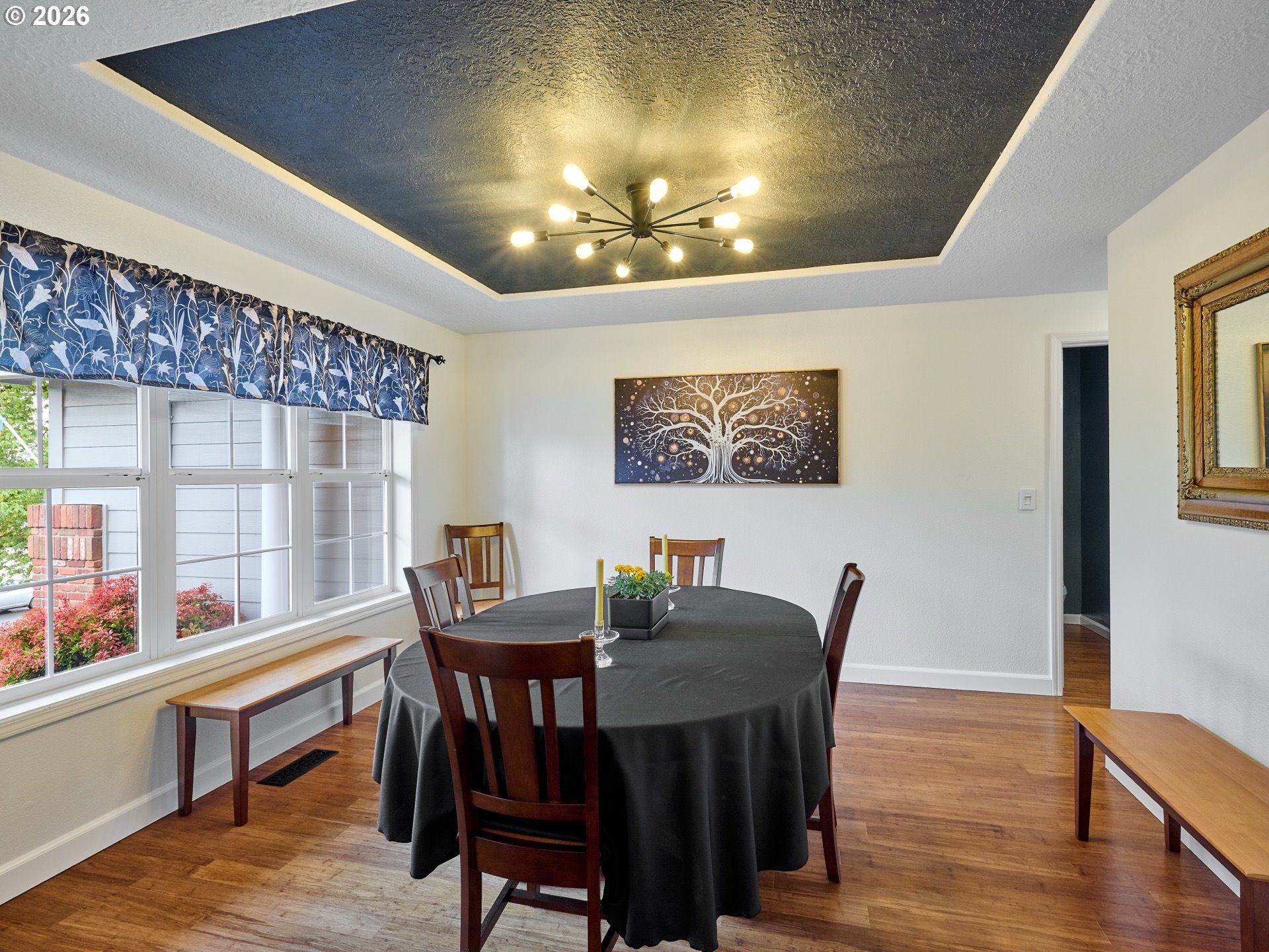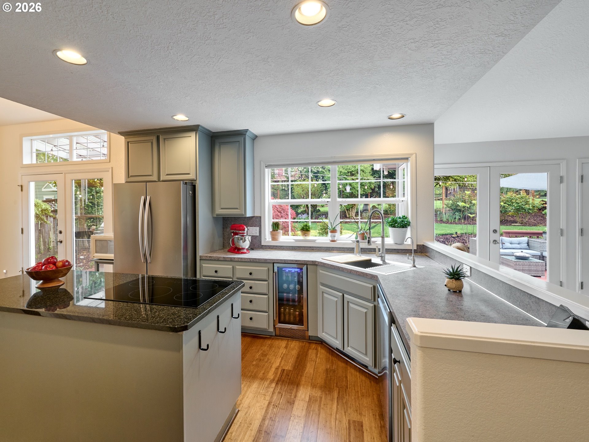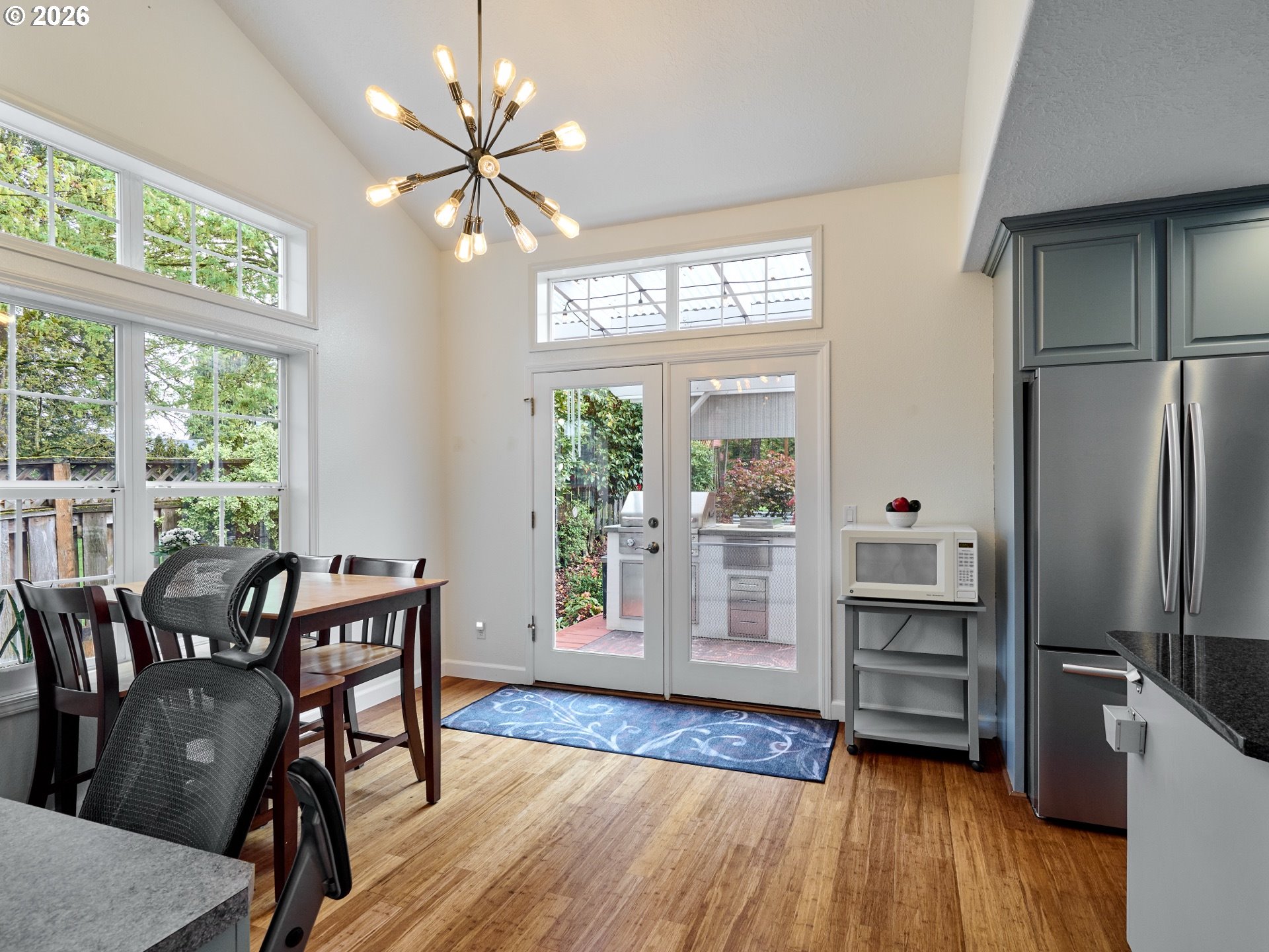 (503) 893-8874Located on quiet Silverton cul-de-sac, this stately 2-story, 3 bed, 2½ bath home rests on gently sloping .20-acre lot w/ lovely views & has a great layout for easy living. The main level features a primary suite w/ jetted soaking tub & tile surround, walk-in shower, double sinks & a spacious walk-in closet. New highly-durable Fossilized® Cali bamboo flooring flows through the kitchen, living room, dining room, ½ bath & laundry room, creating a cohesive feel throughout. A gas fireplace anchors the living room, where French doors open to the backyard, filling the space w/ natural light & extending the living area in a strong indoor-outdoor connection. The kitchen’s cooking island w/ new glass cooktop, double ovens, stainless steel appliances, water purifier, wine cooler & walk-in pantry support both daily routines & entertaining. In addition to the formal dining room, a breakfast nook & built-in desk/work station sit just off the kitchen, w/ additional French doors leading outside, further connecting the home to the fully-fenced backyard & beautiful garden surroundings. As the weather warms, life naturally expands to the covered outdoor kitchen, where a grill, griddle, burner & gas hookup make outdoor cooking & gathering a breeze. Raised garden beds, arched trellis & two fig trees provide fresh seasonal produce at your doorstep, while established landscaping adds color, sweet fragrance & privacy. Upstairs, 2 more large bedrooms w/ big closets & a second full bath provide flexible space for guests, work or additional living needs. Other great aspects are the high ceilings throughout, fast internet, central air, forced air heating & double-pane vinyl windows. The 2-car garage is EV-ready & includes a large storage loft & air compressor. The property also offers a nice covered front porch, in-ground sprinkler system & tool shed. No HOA. A clean, well-designed home where daily life flows easily & outdoor spaces are just as enjoyable as what's inside.