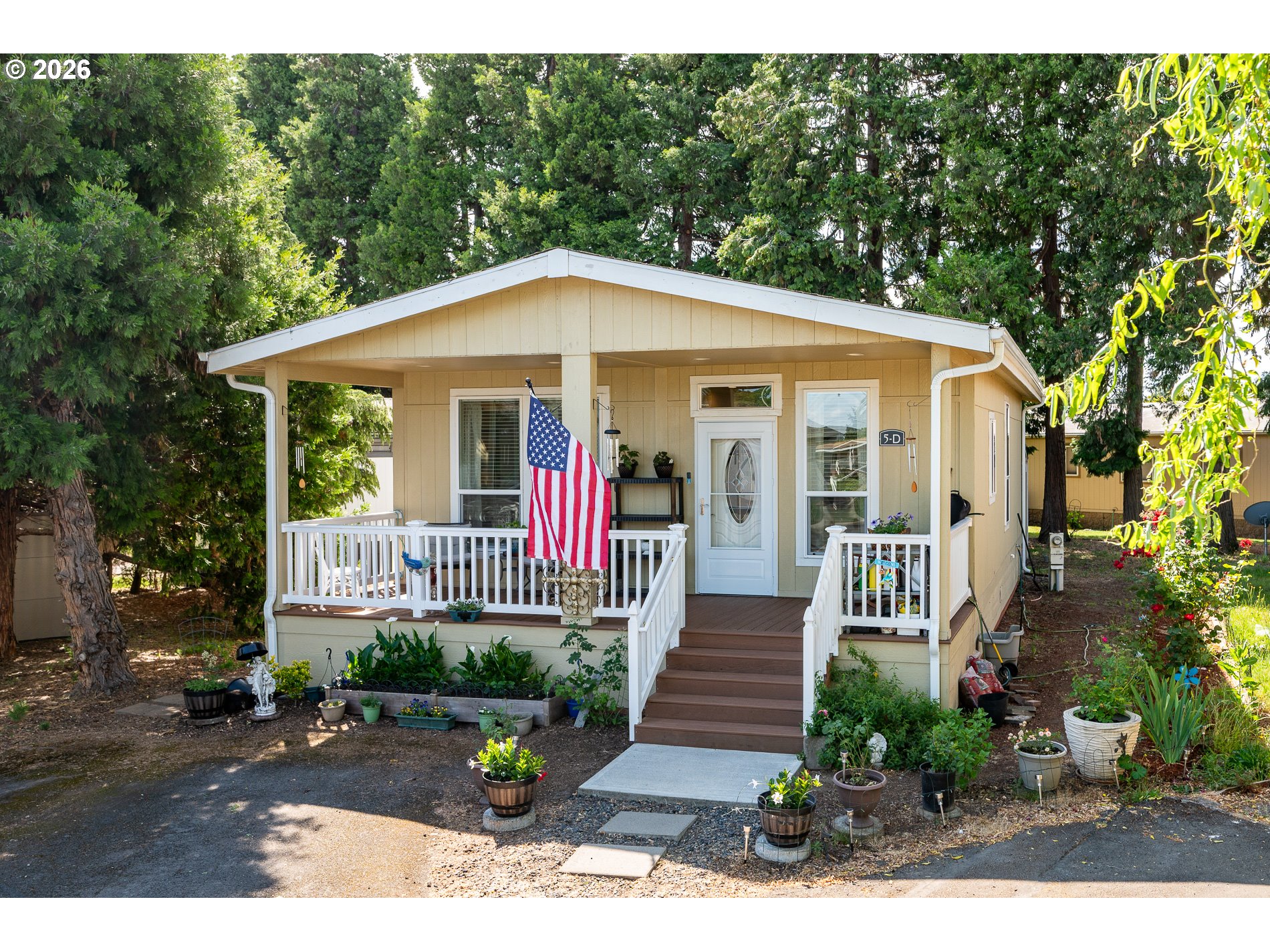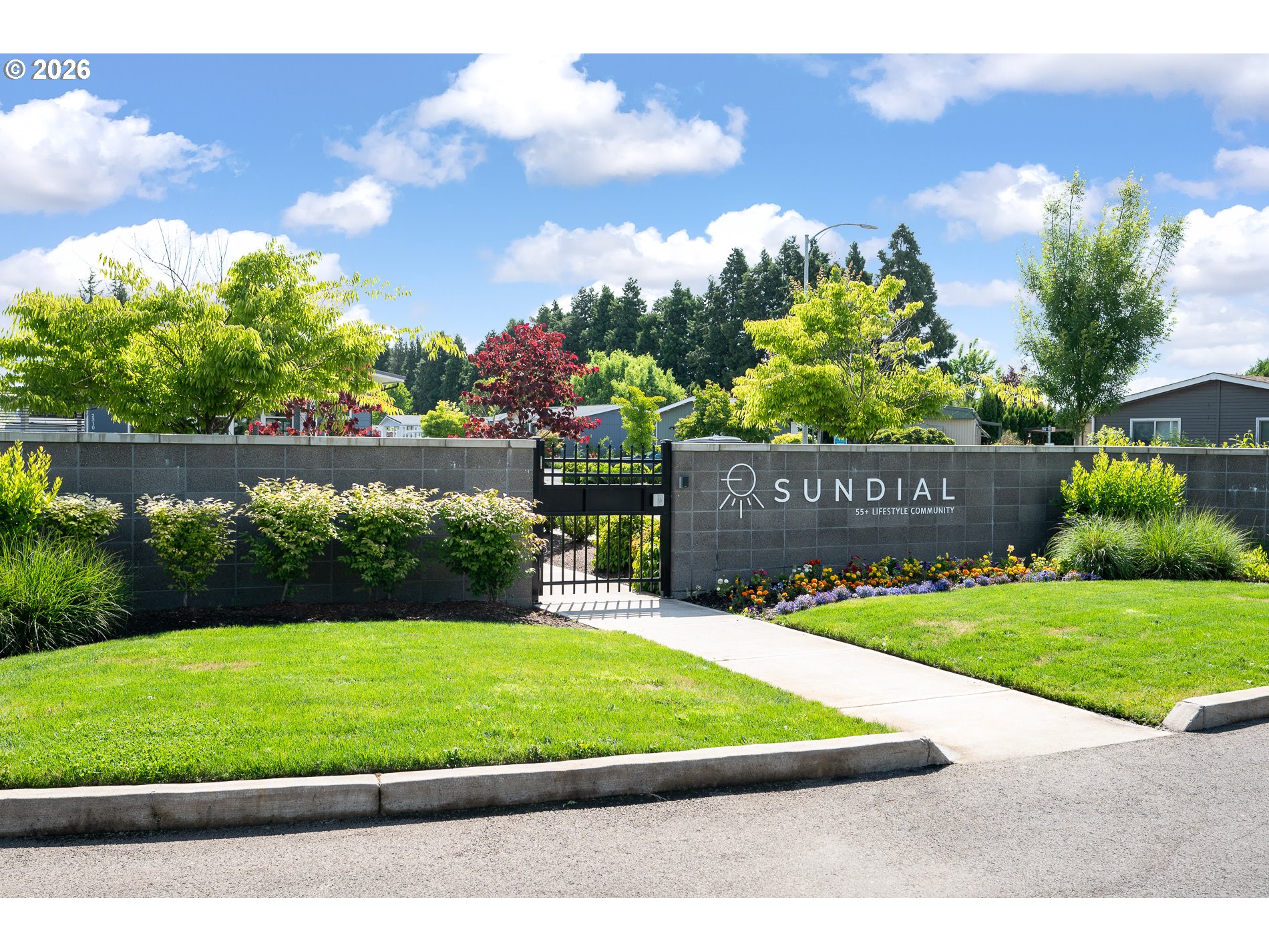 In park Manufactured home located in gated community of Sundial Mobile Home Park, just off Highway 22 in South East Salem. This park offers a spacious community facility; indoor swimming pool with hot tub; Gym, Library, game room with pool tables and a fireplace; tennis courts and more. This home was built in 2021, there are 2 parking spaces with overflow parking very nearby. It has a full across the front cozy covered front porch patio for casual, comfortable viewing of the neighborhood. The decor is up to date with upgraded finishes including faux granite countertops, spacious, tall kitchen cabinets, stainless steel appliances and LVP flooring and a spacious pantry. The living room and bedrooms are carpeted with plush carpeting. The home is heated and cooled with a heat pump unit with integrated, economical heating and cooling. The laundry has room for washer and dryer where the furnace is located in its own enclosed area. Hot water tank is in its own enclosed area. The master suite contains a walk-in closet, a full bathroom with glass door enclosed walk-in shower. The second bedroom is across the hall from the full second bath which has a tub and shower. Please contact the agent for showings and instructions. See private remarks for more information.