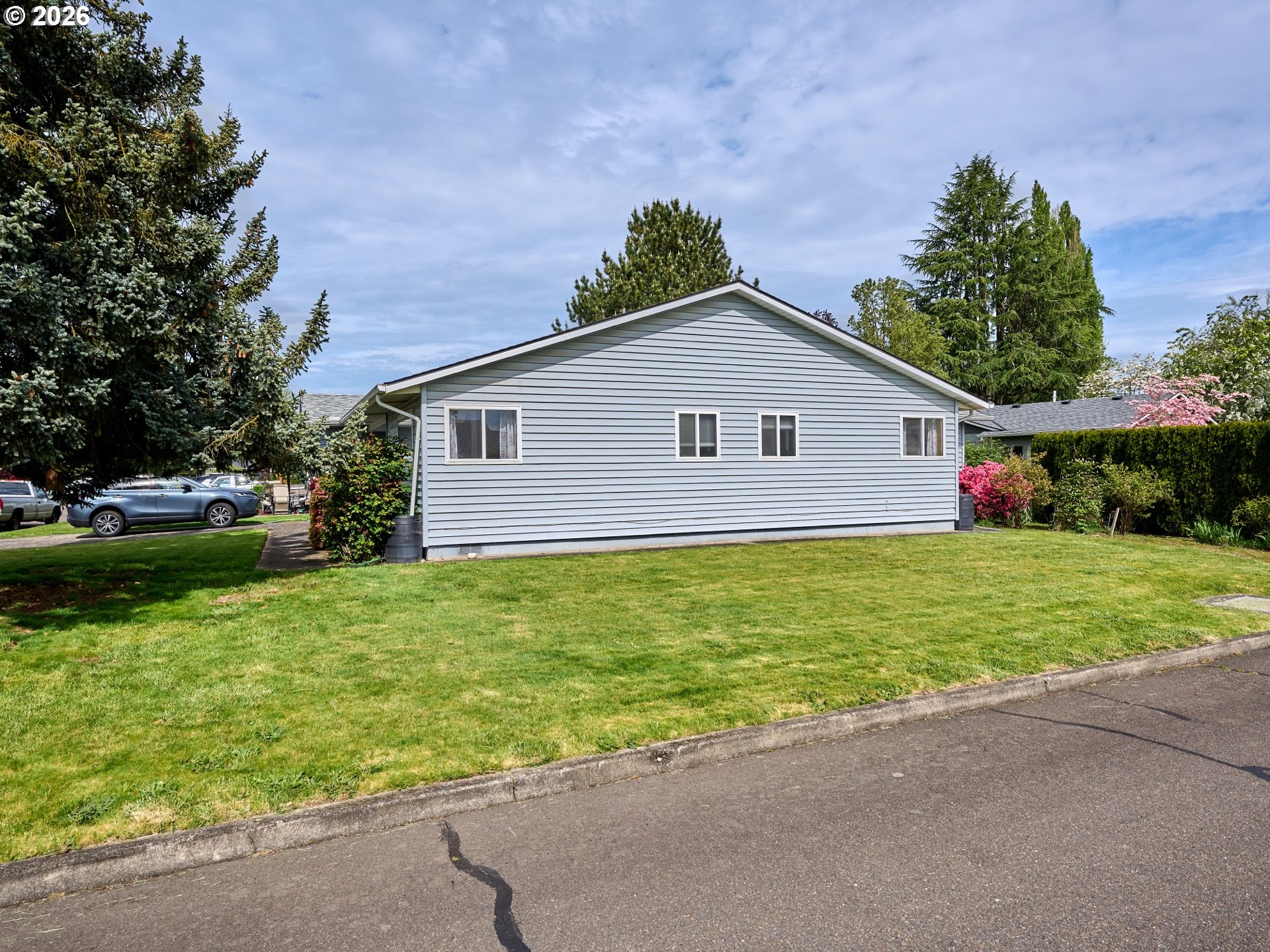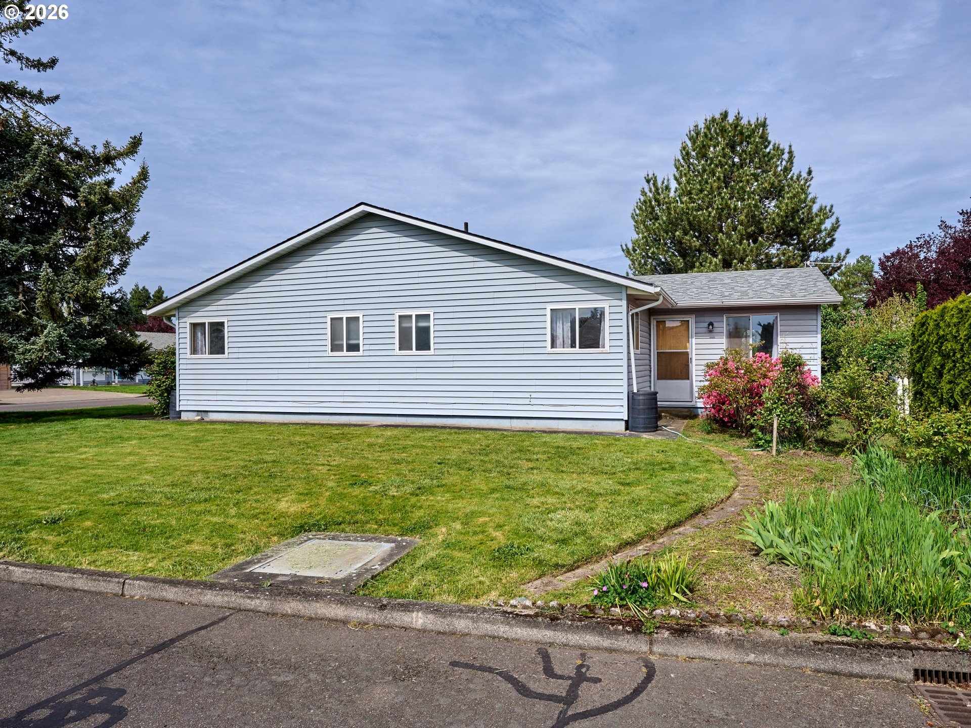 Welcome to Woodburn Senior Estates, a sought-after 55+ community offering comfort, convenience, and an active lifestyle. This well-maintained, move-in ready home sits on a spacious corner lot with room to enjoy the outdoors. Inside, you’ll find beautiful hardwood floors and an abundance of natural light from expansive panoramic windows. The layout offers both a formal dining room and a cozy kitchen nook, along with a functional kitchen ready for your personal touches. A versatile family room with a separate exterior entrance and private walkway offers flexible use as a home office, hobby space, or additional living area. The oversized laundry room includes built-in cabinetry for added storage and convenience. The large bathroom features both a shower and a relaxing jetted tub. The primary bedroom includes two closets and a private half bath. An oversized single-car garage provides ample storage space. Enjoy an annual HOA that includes golf for two, along with access to country club amenities and activities. Ideally located with easy I-5 access and close to shopping and dining.