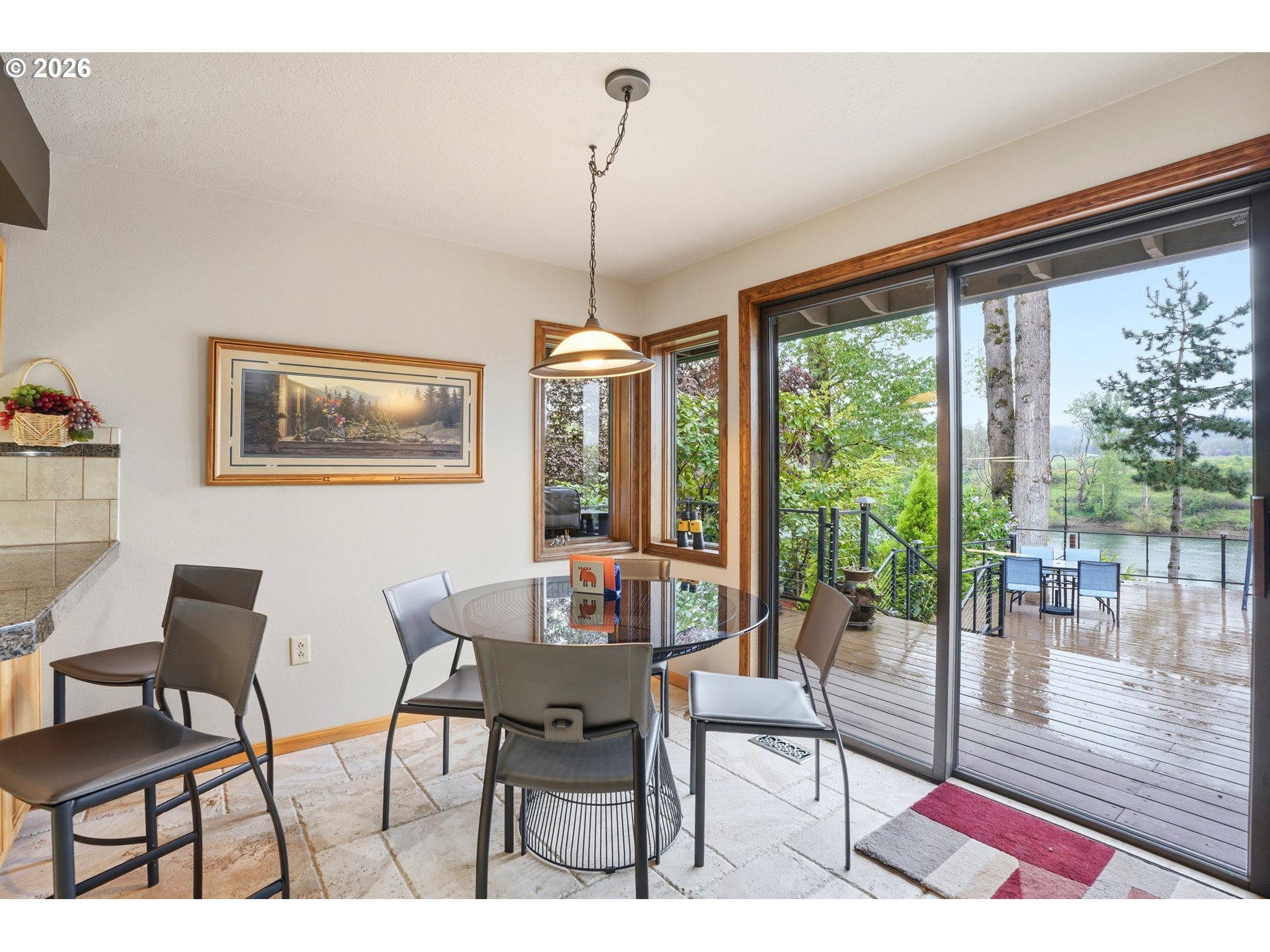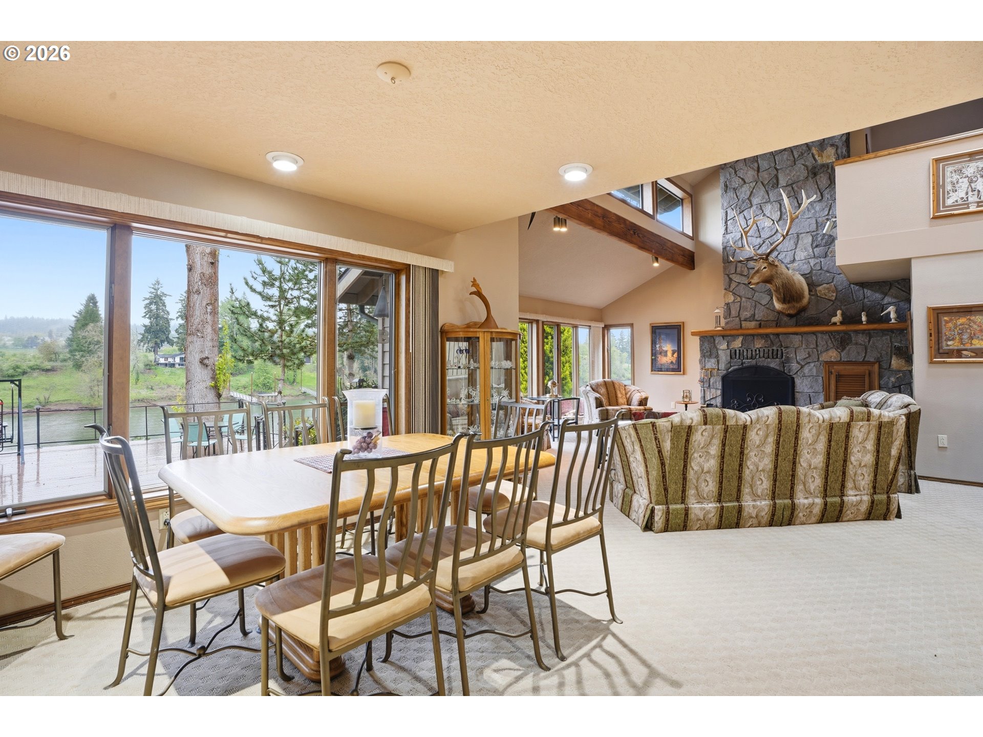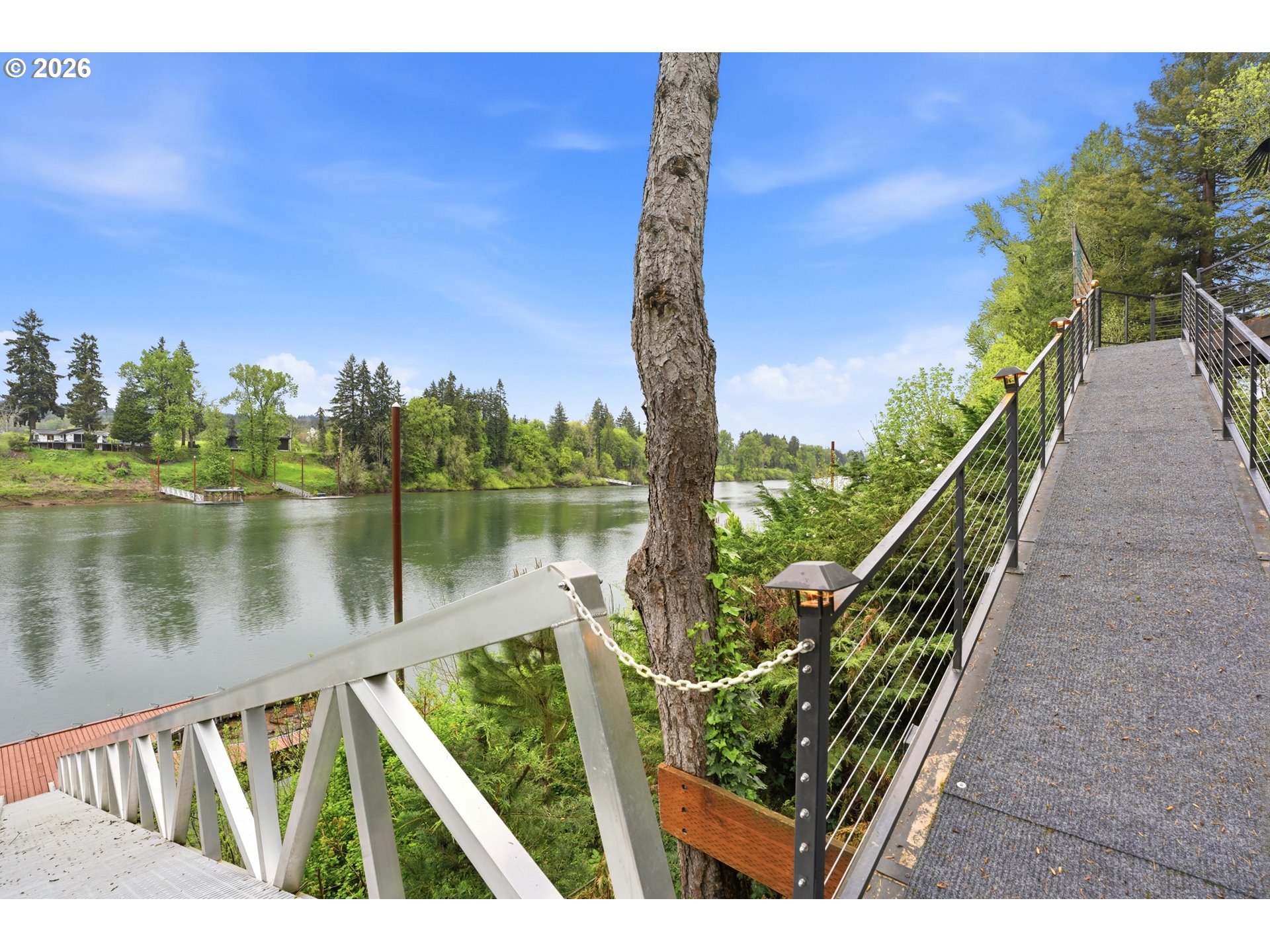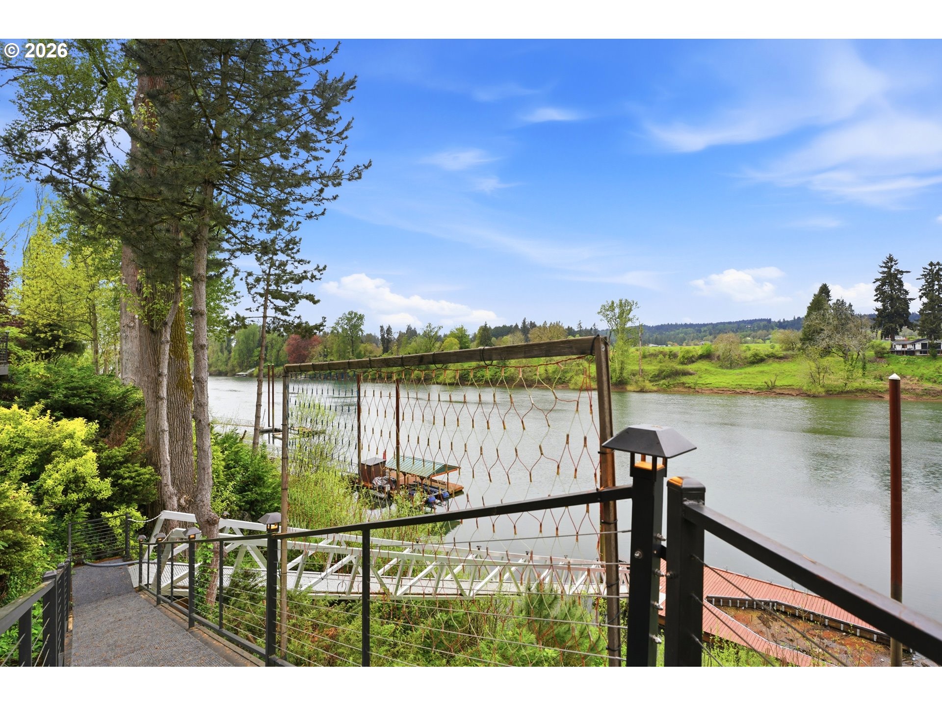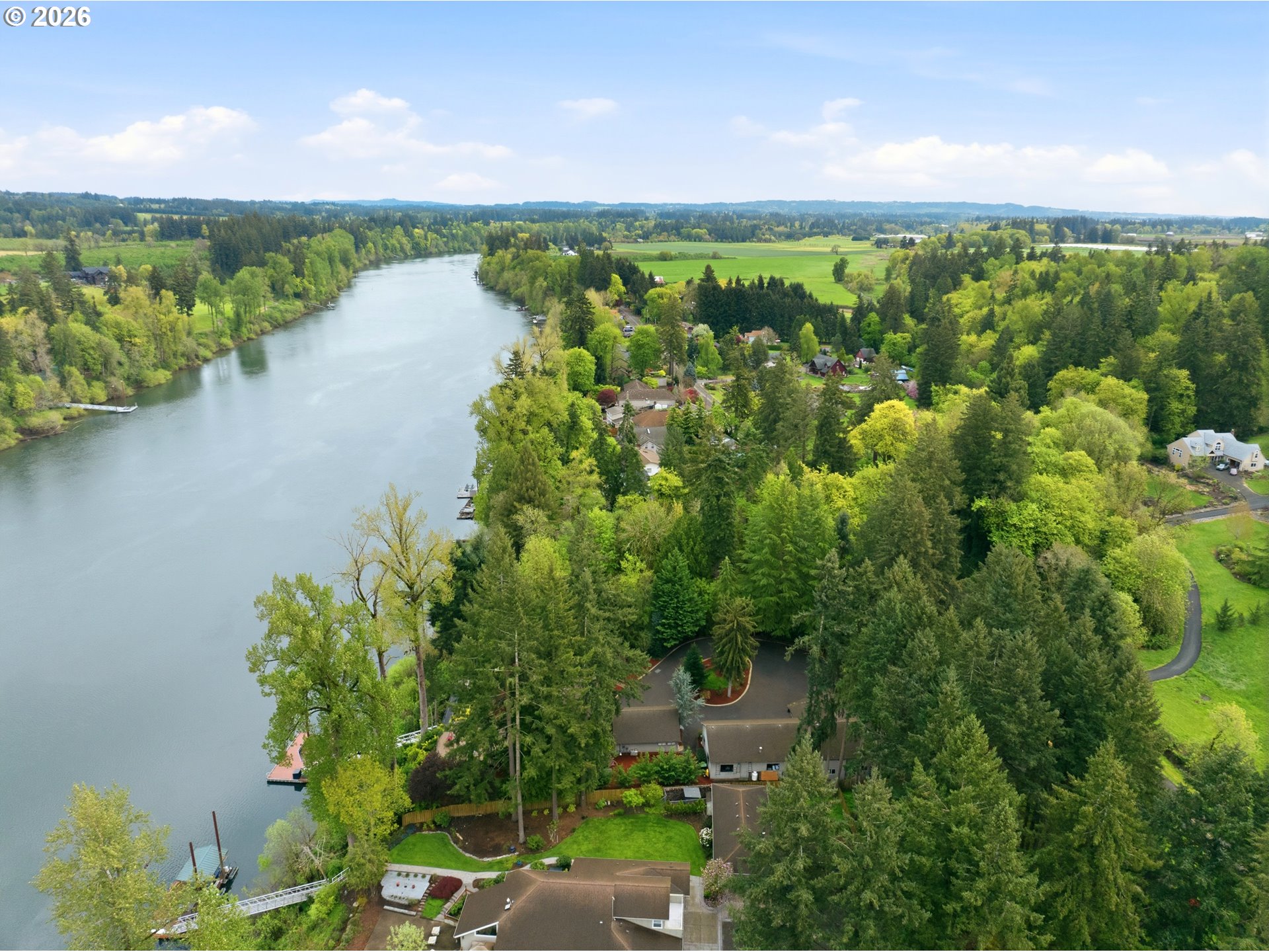 (503) 893-8874Private riverfront estate on 1.2 acres with 3,298 sf, 4 bedrooms, and 3 full + 2 half baths, offering direct river access and a private dock (approx. 45x27) with new gangway (2023). Gated entry and set back from the road for exceptional privacy. Interior features include vaulted ceilings, travertine flooring, and a floor-to-ceiling rock fireplace, with main-level living designed to capture river views from multiple living spaces including family room, living room, dining, and breakfast nook. Finished basement (approx. 554 sq ft) ideal for dual living, media, game room or office. Exterior highlights include newer roof for house and shop, cedar siding, cedar deck with cable railing and lighting, circular driveway, sprinkler system, and RV/boat storage. Property includes an approx. 3,400 sq ft heated shop with concrete floors, 220 power, cabinetry, plus RV and boat garage with extra one car garage and an attached 2-car garage. Convenient location near I-5, Wilsonville amenities, Champoeg State Park, golf, and wine country. Rare opportunity for riverfront living with acreage, privacy, and versatile use.