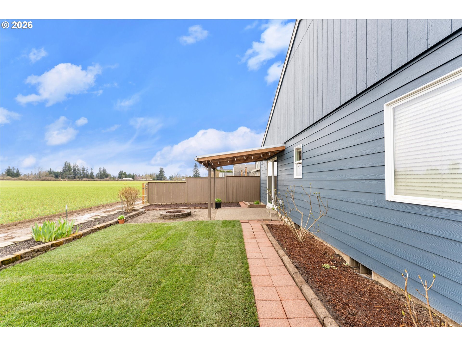 ***Open Sunday 3/15 12:00-2:00*** Move-in ready one-level home on a quiet street backing to farmland. Recently painted interior & exterior. Newer HVAC. The family room features vaulted ceilings, gas fireplace, & slider to backyard. The kitchen offers an eat bar, gas range, built-in microwave, pantry, & opens to the dining & family rooms. Enjoy outdoor living with a covered patio, firepit area, garden bed, lush lawn, fenced yard, & shed. The attached 2-car garage includes a custom workbench & utility sink, ideal for hobbies or projects. All appliances & work bench are included. Located in the small town community of Hubbard with easy access to I-5. Conveniently positioned between Wilsonville & Salem, each about 20–25 minutes away.