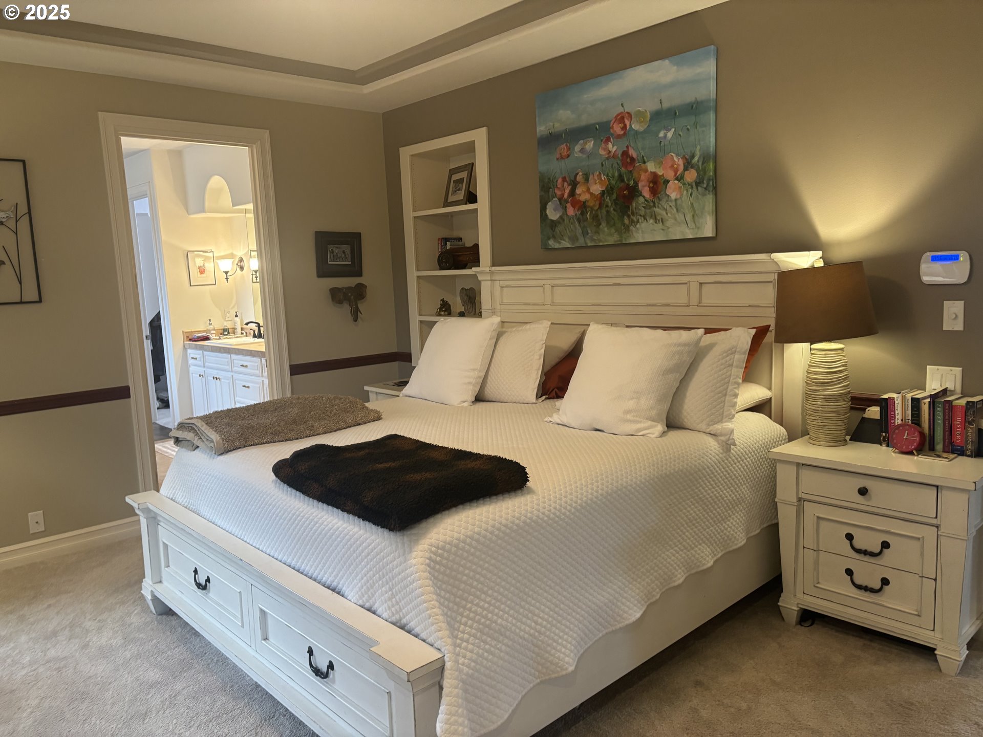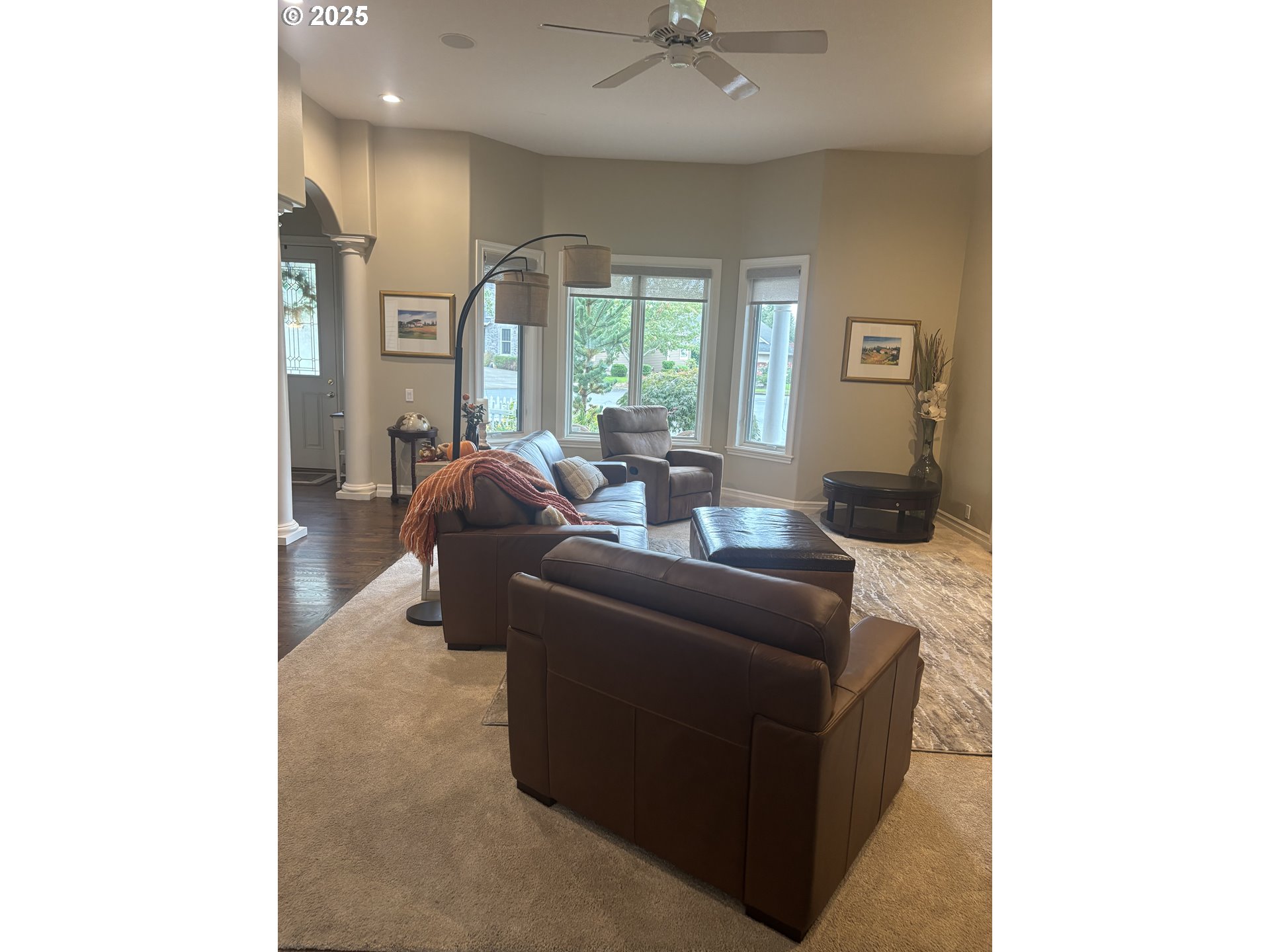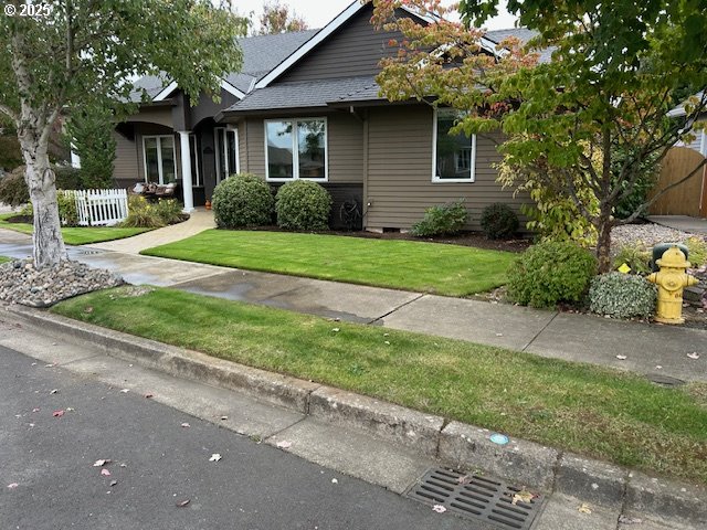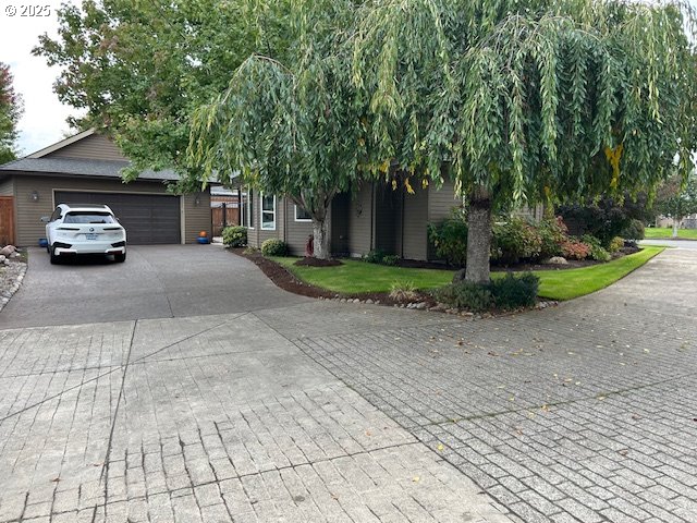 Custom one level home in golf course community. Large kitchen island with double ovens and granite countertops. French doors in primary as well as 12 foot ceilings. Two gas fireplaces and a small shop behind the oversized garage. Matching lawn and garden shed built behind garage. Two full bath with a custom Murphy bed in one room. Newer furnace, paint (inside and out) and AC system. Hardwood floors and large windows. Solar Panels and EV charging station. Custom details throughout. Must see.