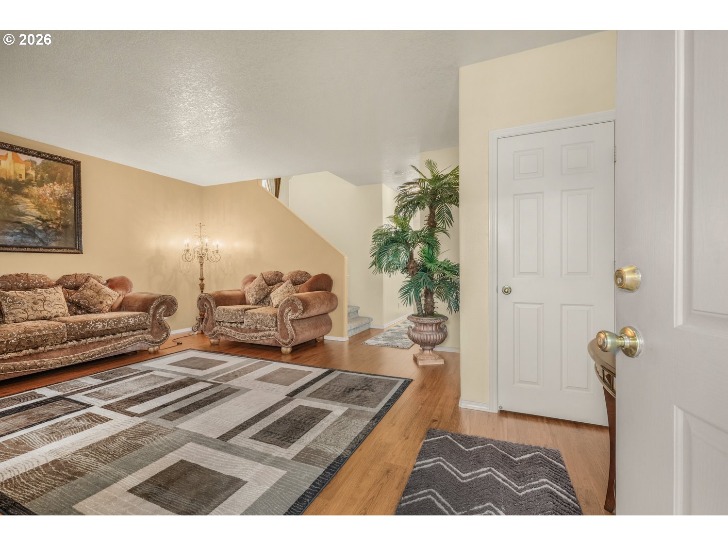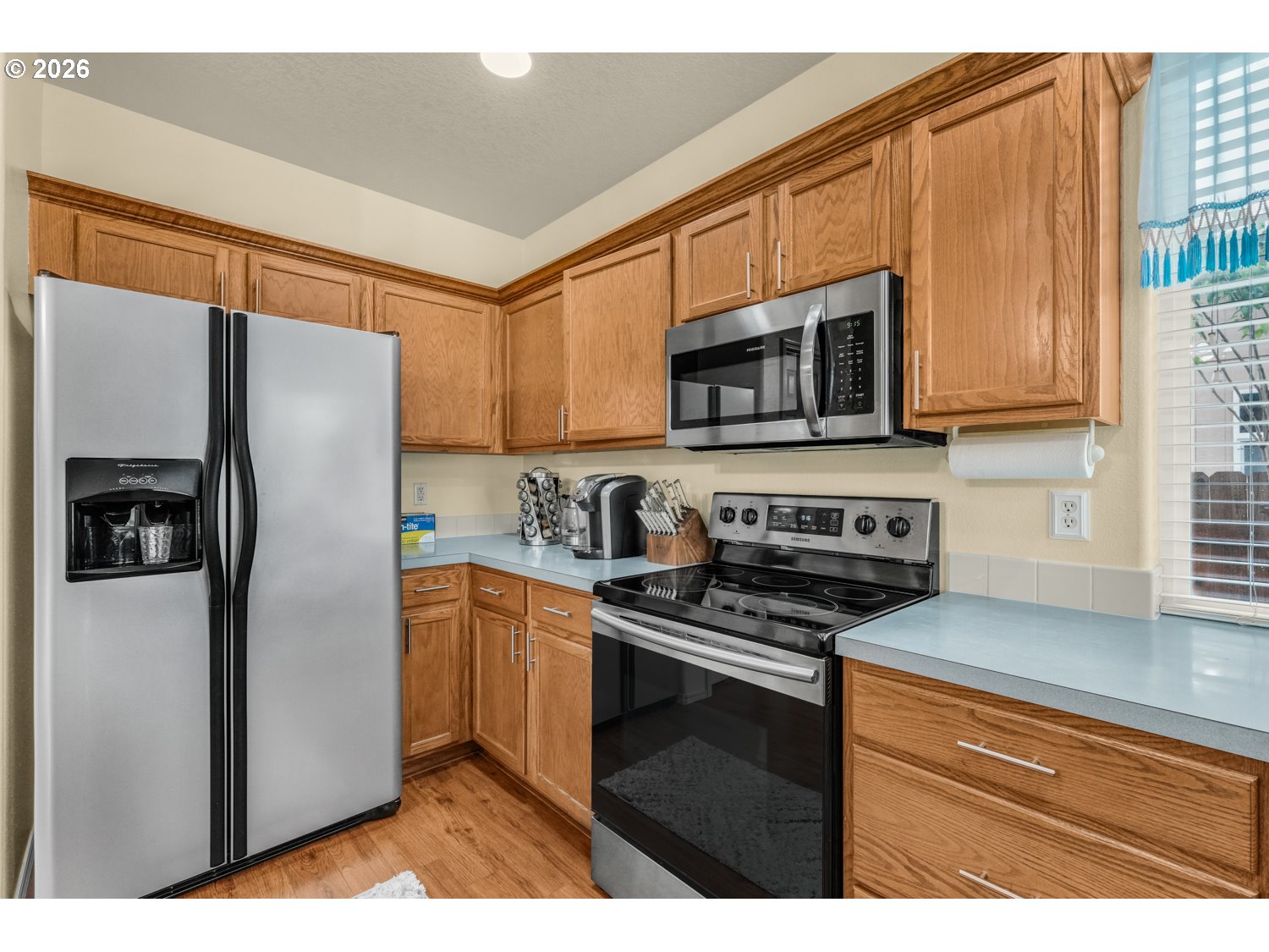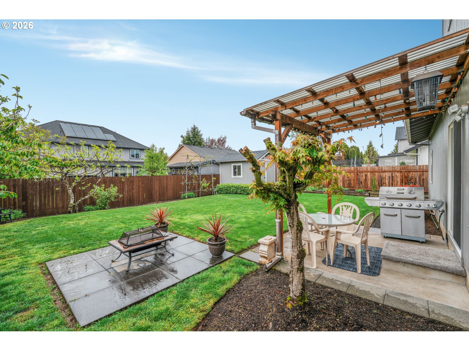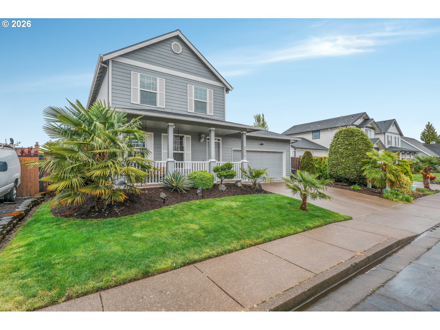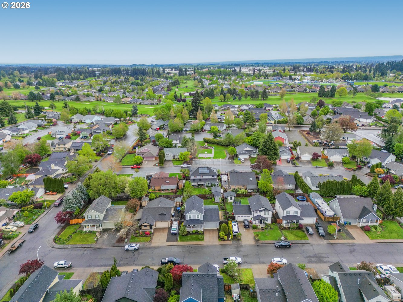 Welcome to this beautifully maintained 3-bedroom, 2.5-bath home offering comfort, space, and timeless charm. With soaring 9-foot ceilings and warm laminate flooring throughout the main living areas, the home feels bright, open, and inviting from the moment you step inside. Enjoy the flexibility of both a formal living room and a spacious family room for entertaining guests or relaxing with loved ones. The kitchen is thoughtfully designed with stainless steel appliances and a pantry for extra storage, all flowing seamlessly into the dining area that opens to the covered patio. Upstairs, you’ll find generously sized bedrooms, including a primary suite with its own private half bath. The home has been well cared for, with a brand new roof providing peace of mind for years to come. The private, fully fenced backyard is an ideal setting for outdoor living. Whether you're gardening, enjoying fresh fruit from your own trees, or hosting gatherings under the covered patio, this space offers something for everyone. A tool shed adds convenience, while the front landscaping with palm trees creates welcoming curb appeal.Located just minutes from parks, golf courses, shopping, and schools, this home combines everyday convenience with a peaceful neighborhood setting.