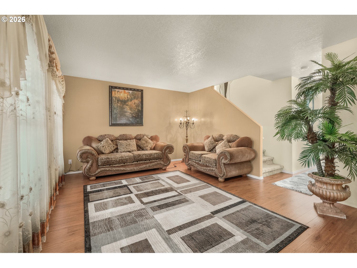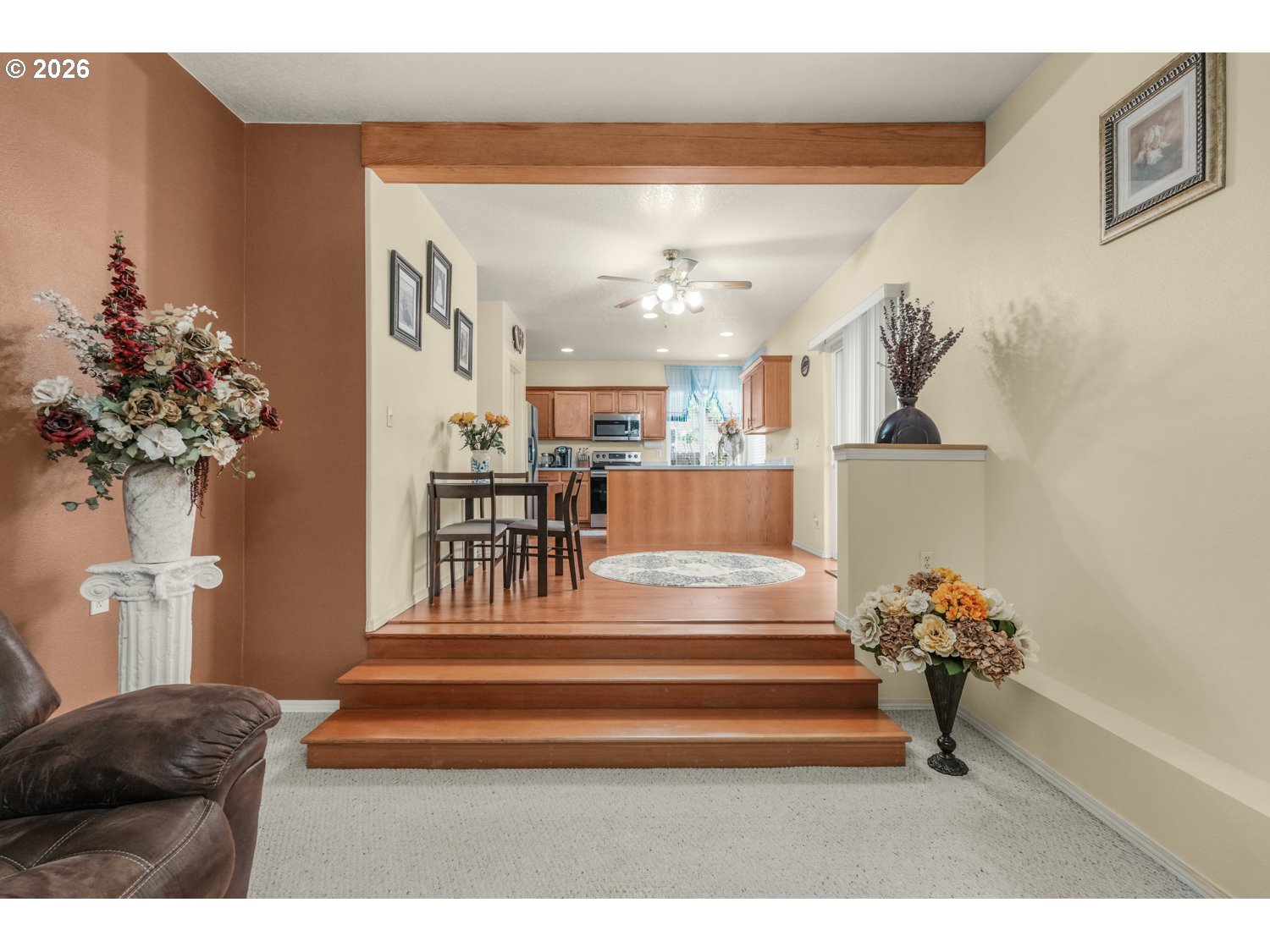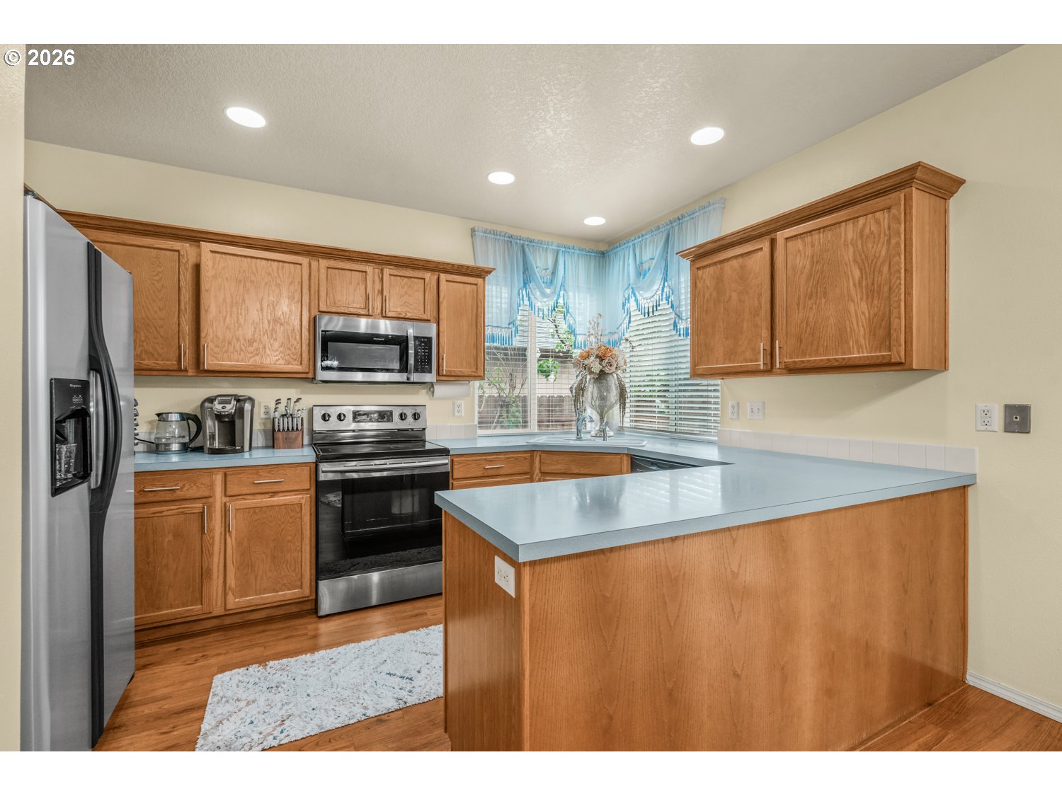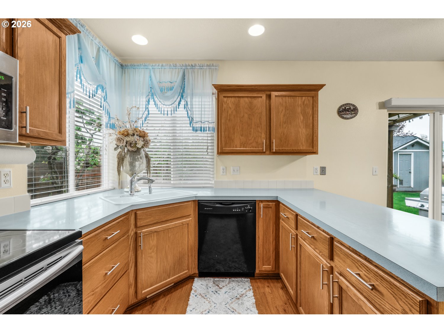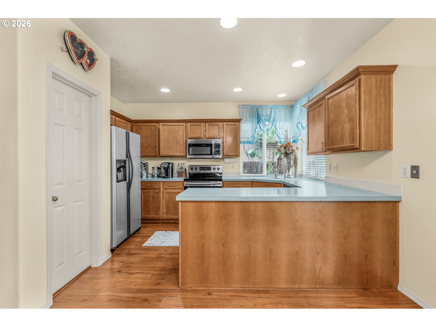 Welcome to this beautifully maintained 3-bedroom, 2.5-bath home offering comfort, space, and timeless charm. With soaring 9-foot ceilings and warm laminate flooring throughout the main living areas, the home feels bright, open, and inviting from the moment you step inside. Enjoy the flexibility of both a formal living room and a spacious family room for entertaining guests or relaxing with loved ones. The kitchen is thoughtfully designed with stainless steel appliances and a pantry for extra storage, all flowing seamlessly into the dining area that opens to the covered patio. Upstairs, you’ll find generously sized bedrooms, including a primary suite with its own private half bath. The home has been well cared for, with a brand new roof providing peace of mind for years to come. The private, fully fenced backyard is an ideal setting for outdoor living. Whether you're gardening, enjoying fresh fruit from your own trees, or hosting gatherings under the covered patio, this space offers something for everyone. A tool shed adds convenience, while the front landscaping with palm trees creates welcoming curb appeal.Located just minutes from parks, golf courses, shopping, and schools, this home combines everyday convenience with a peaceful neighborhood setting.