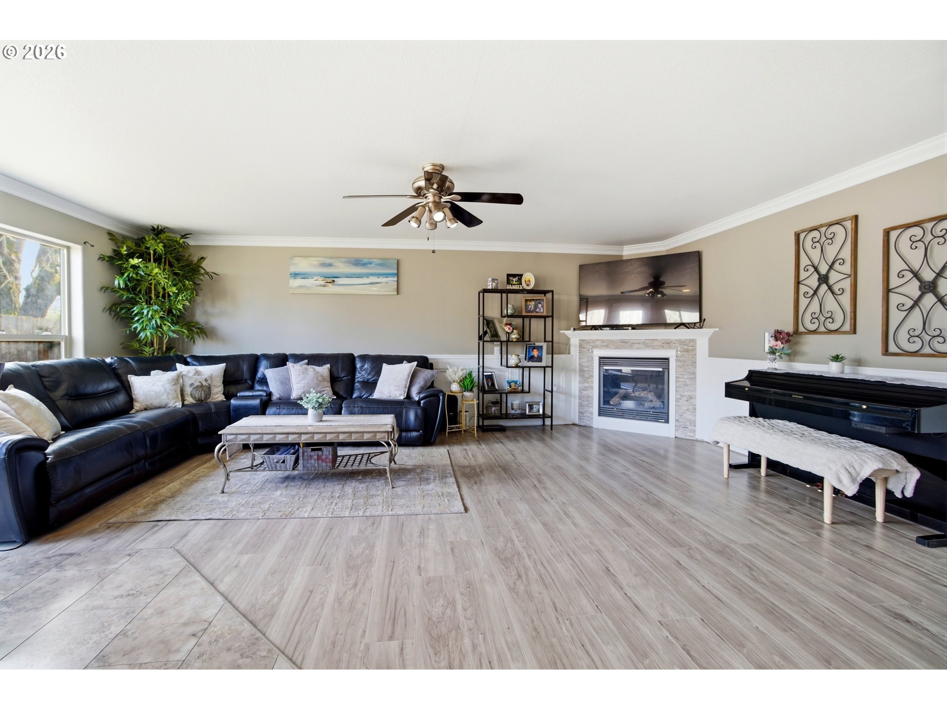 Well-designed modern home home w/ new roof, 4 bedrooms + office & 2.5 baths w/ a desirable 18x13 main-level primary suite featuring walk-in closet + bath w/ double sinks. Open floor plan includes a spacious living room w/ gas fireplace & a large kitchen w/ abundant storage. Dual laundry rooms upstairs & down add convenience. Fenced backyard w/ patio provides low-maintenance outdoor space featuring custom-concrete fireplace w/ built-in seating—great for relaxing or entertaining. Close to parks, shopping & downtown.