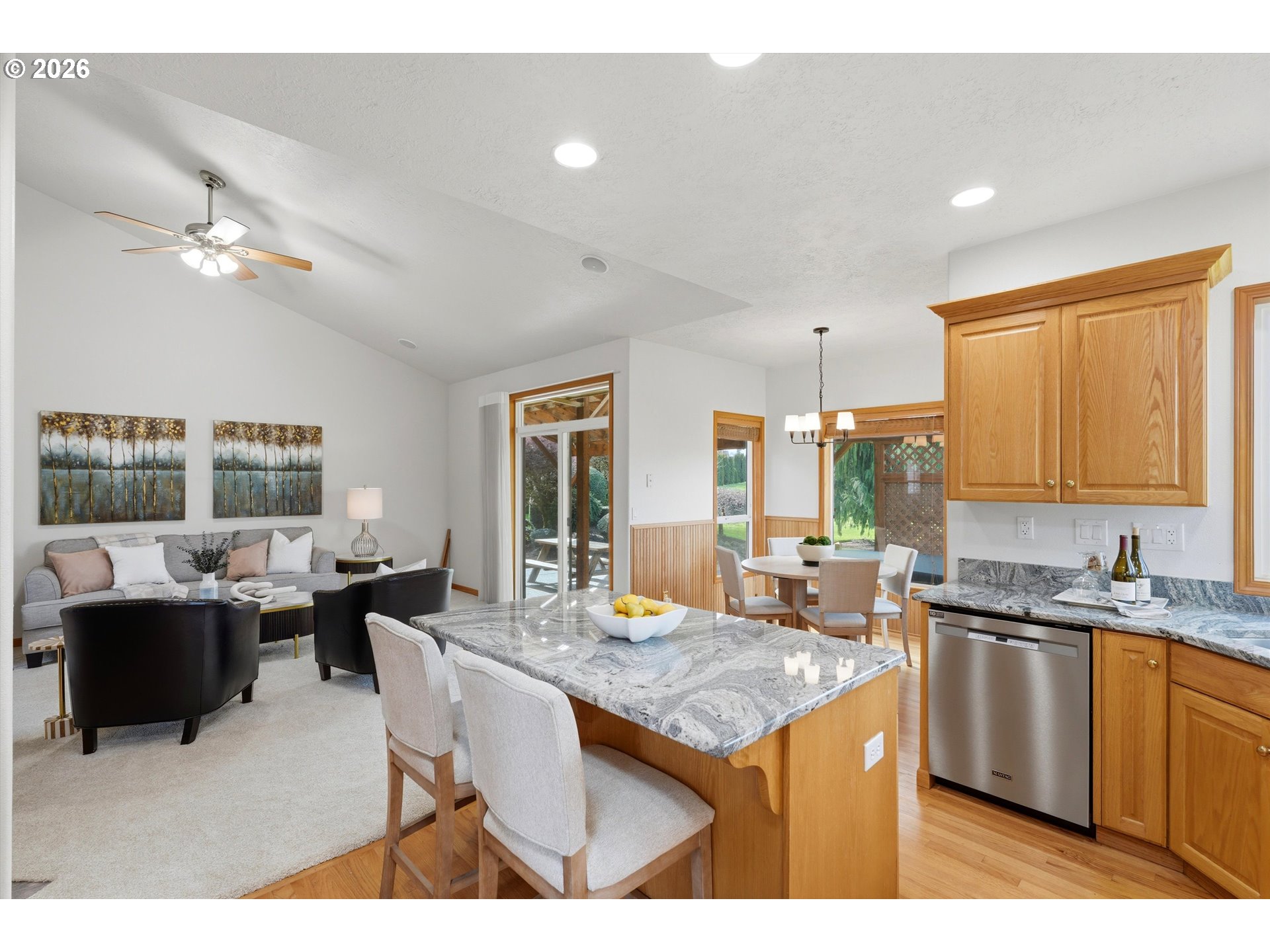 (503) 893-8874Custom high-end build and meticulously maintained single-level home on 2.51 acres featuring exceptional shop space and luxury architectural design. The 2,194 sqft home offers vaulted ceilings, hardwood floors, tray ceilings, skylight shafts, and clerestory windows filling the home with natural light. Enjoy a chef’s kitchen with granite counters, professional gas stove, views of the pond and water feature. Property includes an 1,880 sqft finished 3-bay shop with RV plug, attached studio, and outbuildings. Inside, the thoughtful layout flows between the formal dining room, family room, and living room with gas fireplace and flush tile hearth, all centered around a spacious kitchen designed for entertaining. The kitchen features granite countertops, cook island, stainless appliances, under-cabinet lighting, breakfast nook, and sliding doors leading to the covered patio with gas BBQ stub. The primary suite offers private patio access, tiled bathroom floors, soaking tub, offset water closet, and an enormous walk-in closet with built-in organizers. Architectural details throughout include tray ceilings, dramatic skylight shafts, and angled clerestory windows that follow the rooflines. The property is equally impressive outside. The 1,880 sqft high-end shop features wood framing, fiber cement siding, finished interior, 12’ sidewalls, RV plug, and abundant 110v outlets. Two bay doors serve the 36x30 section while the 20x40 section includes a larger RV storage door. Attached to the shop is a 12x20 studio with water and power, plus a 12x34 lean-to machine shed for additional vehicle storage. Additional structures include a 1,200 sqft metal storage building with power and a 24x24 pump house/storage building toward the rear of the property. A circular driveway winds through the manicured landscaping, connecting the home and shop with a large stamped concrete driveway and additional RV parking. A rare opportunity for luxury single-level living with extraordinary shop space.