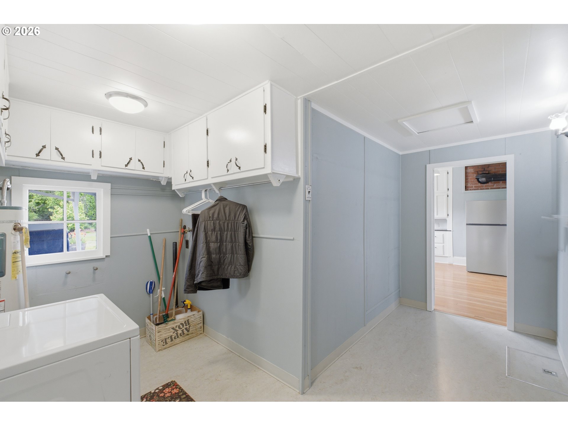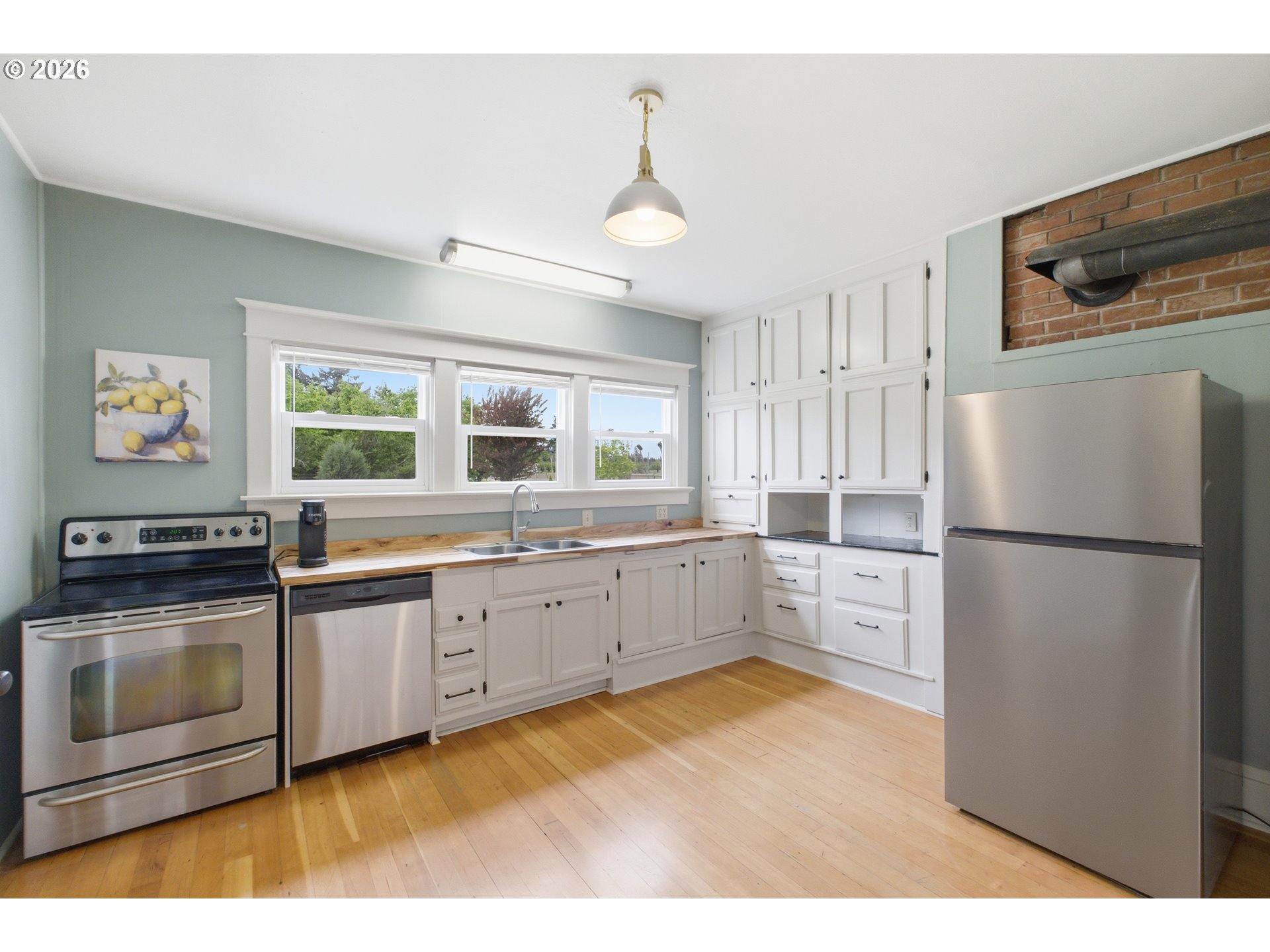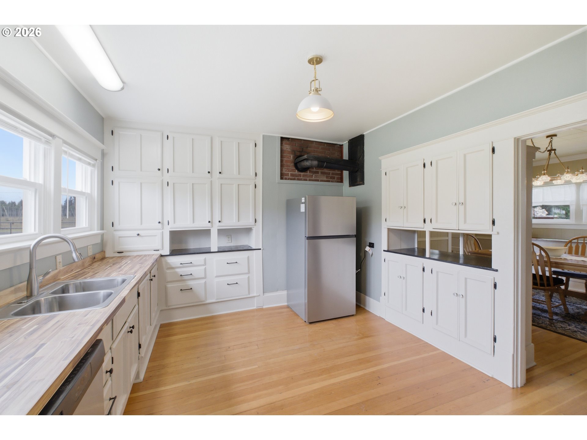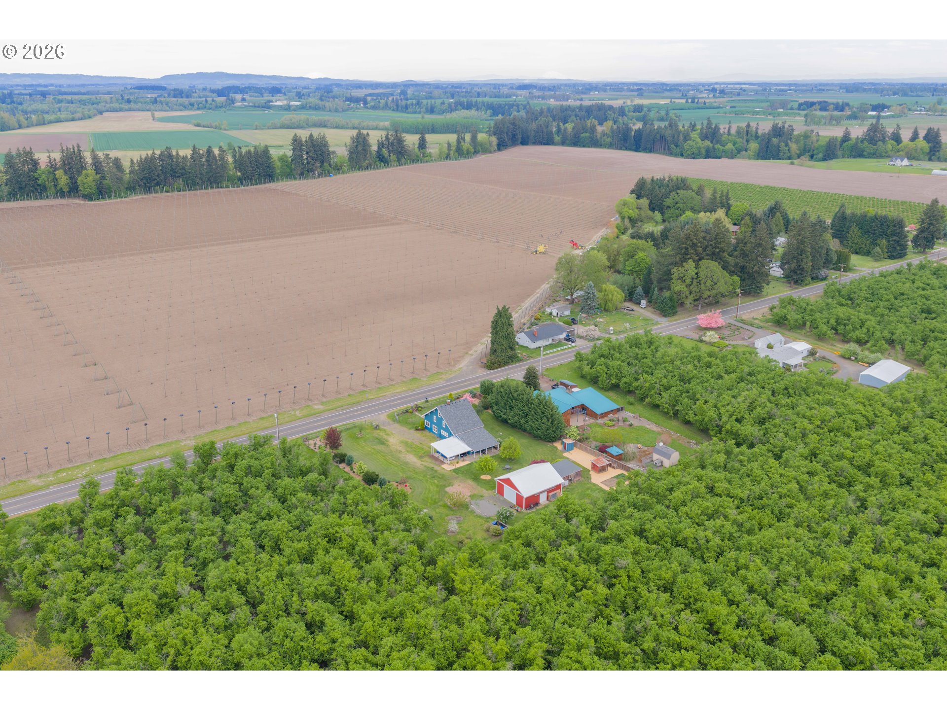 Step into a rare blend of history, comfort, and country living in this beautiful 1910 Craftsman on 0.85 acres, surrounded on three sides by orchards and farmland. With low county taxes, usable land, multiple outbuildings, and flexible living spaces, this home offers rare affordability and long term versatility in a lovely community. Thoughtfully updated while preserving its original character, this home features a new roof (March 2024), updated windows (2021), fresh interior and exterior paint, and a new stainless steel refrigerator. The kitchen features butcher block countertops [that flows] into a formal dining room with built in buffet and hutch. Original hardwood floors are preserved in many rooms, complemented by new LVP flooring in select areas. Additional spaces include a traditional wood pantry, sunroom, reading nook, flex room, and utility room. The main home rests on a poured foundation and is heated by forced air, with high speed internet available. The well system was updated in 2016 with a new pump and raised casing. Outdoors, the property features a fully fenced perimeter, solar powered gate opener (2021), ample parking, and a two car carport. The 30 x 36 barn has a 6 inch concrete floor and100 amp subpanel. While the adjacent 25 x 15 historic wood shop is equipped with 50 amp power. Here you have year round beauty with drought tolerant perennials, flowering shrubs, ornamental grasses, and seasonal blooms. A strawberry patch, large garden area, established fruit trees and berries including Bartlett pear, sweet cherry, Honeycrisp apple, marionberries, and blueberries. Located only 4 minutes to Jones Farm Produce, 10 minutes to Keizer Station, and 12 minutes to Woodburn Premium Outlets. Quick access to I5 makes commuting simple, while Wheatland Ferry and Willamette Mission State Park are nearby.