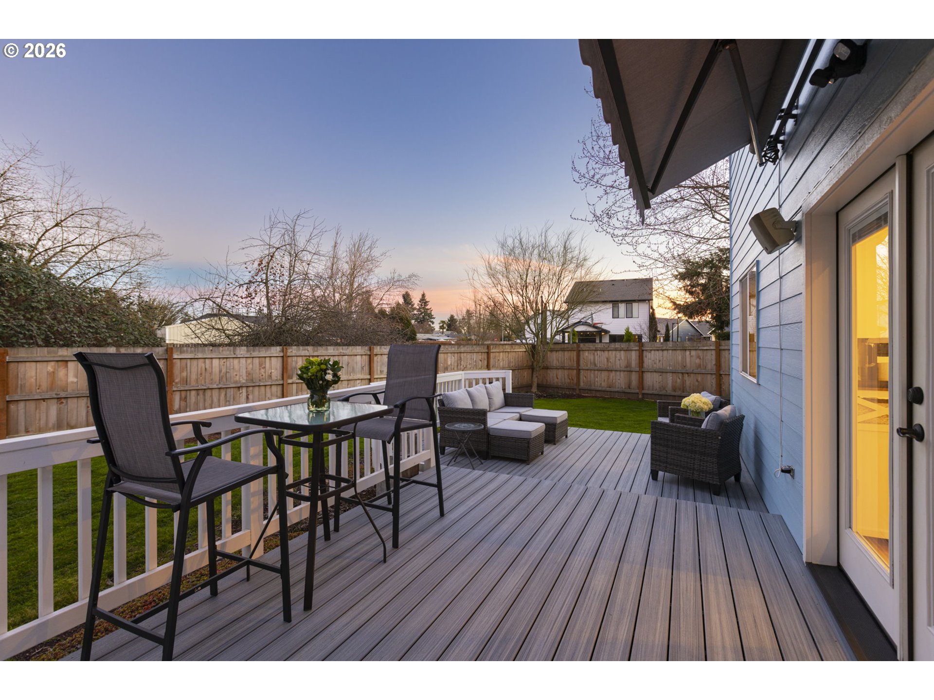 This beautifully updated, one-owner home blends comfort, style, and convenience in a quiet neighborhood setting. Inside, brand new plank flooring flows throughout the main level, up the stairs, and into the upper hallways, creating a seamless, modern look. The light-filled, open layout is designed for effortless everyday living and entertaining. The kitchen shines with stainless steel appliances, slab countertops, and ample workspace. Upstairs features a versatile bonus room (possible 4th bedroom), three additional bedrooms, and two full baths. The vaulted primary suite offers a walk-in closet and a spa-inspired en-suite with a custom walk-in shower, heated tile floors, marble countertops, and a heated towel rack. The hall bathroom has been tastefully remodeled as well. Outside, enjoy a fully fenced, private backyard with a spacious Trex deck, power retractable awning, and mature landscaping—your own peaceful retreat. Experience small-town charm with easy access to nearby communities.