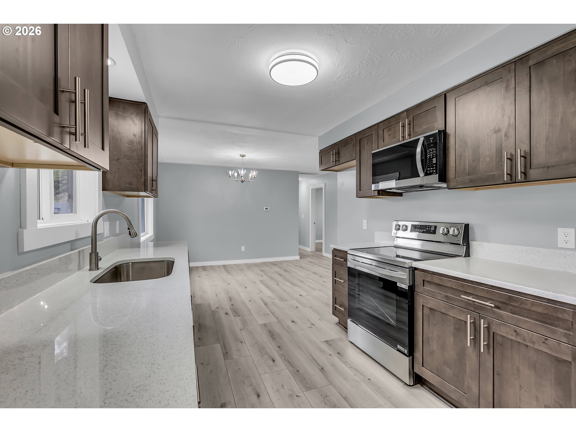 Fully remodeled 3 bed/2bath home with extensive upgrades throughout. Features include new roof, siding, garage doors, interior and exterior paint, and LVP flooring. Fully updated kitchen with quartz countertops and completely remodeled bathrooms. Gas insert fireplace with new tile surround, updated lighting, new sliding door and interior/exterior doors. New trim throughout entire home. New sewer line from clean-out to street. New plastic roof for patio. Move-in ready and conveniently located. Open house 4/26 1-3pm