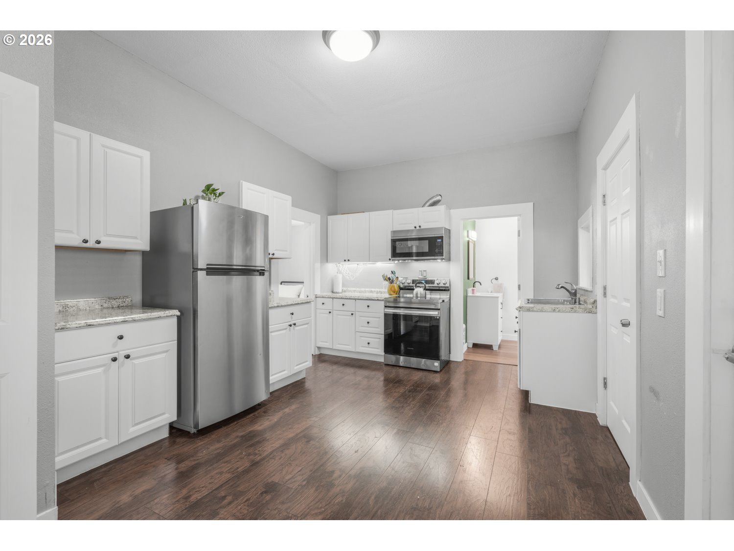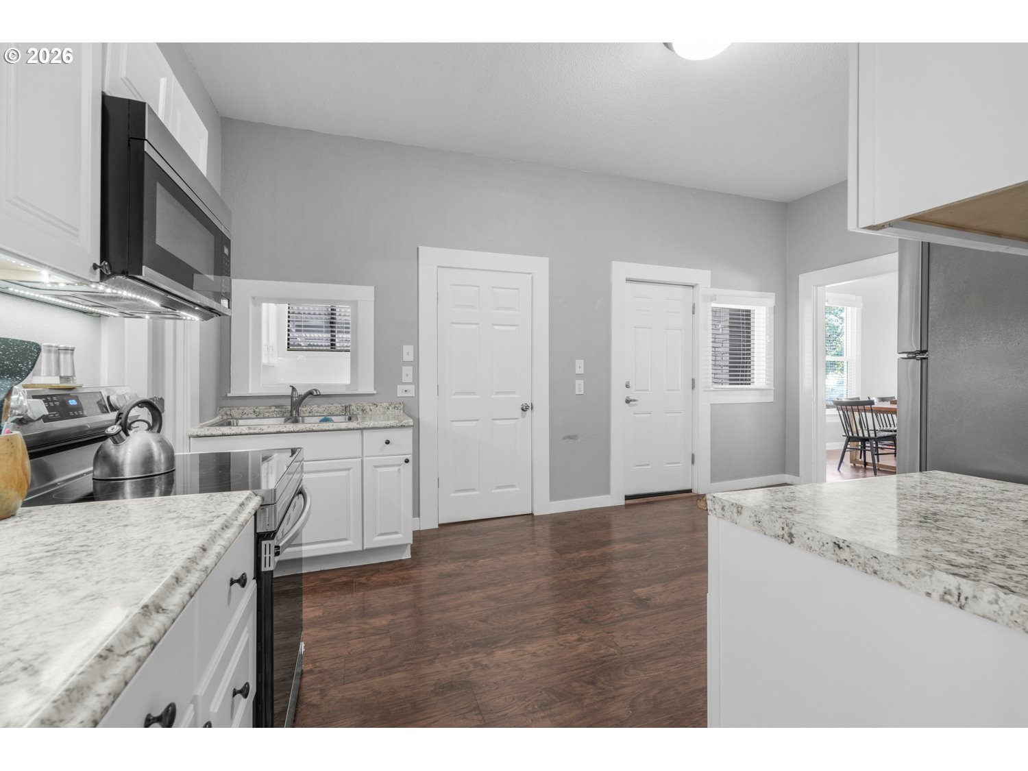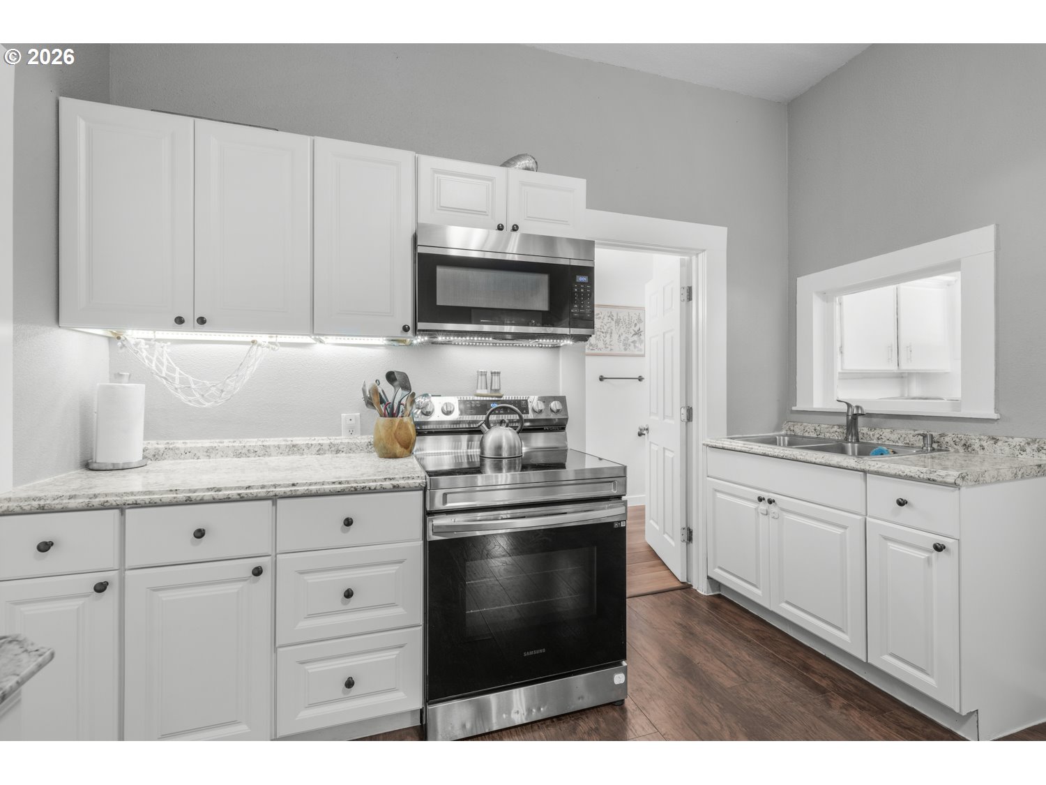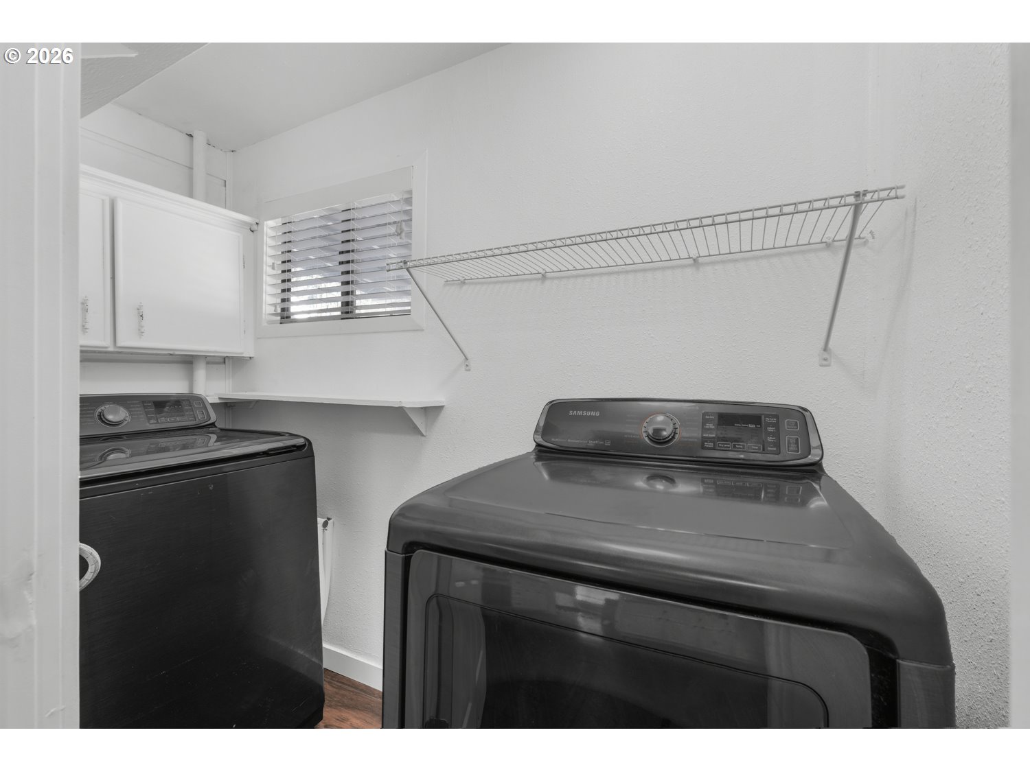 Beautifully updated 2-bedroom, 1-bath home is move-in ready and perfectly situated just minutes from shopping, dining, and neighborhood parks, plus only 15 minutes to Chemeketa Community College. Step inside to gorgeous laminate flooring that flows seamlessly throughout, filling the home with warmth and style. The large, bright living room features abundant windows and connects effortlessly to the dining area making it ideal for entertaining guests. The kitchen has stainless steel appliances, a pantry, and direct access to a spacious covered patio for effortless indoor-outdoor dining. The primary bedroom includes a walk-in closet, while the remodeled bathroom showcases modern finishes and thoughtful design. A convenient laundry room comes complete with washer and dryer. Outside, you’ll find an 11x18 shed offering additional storage or hobby space. Don’t miss this opportunity for a stylish, turnkey home in a fantastic location!