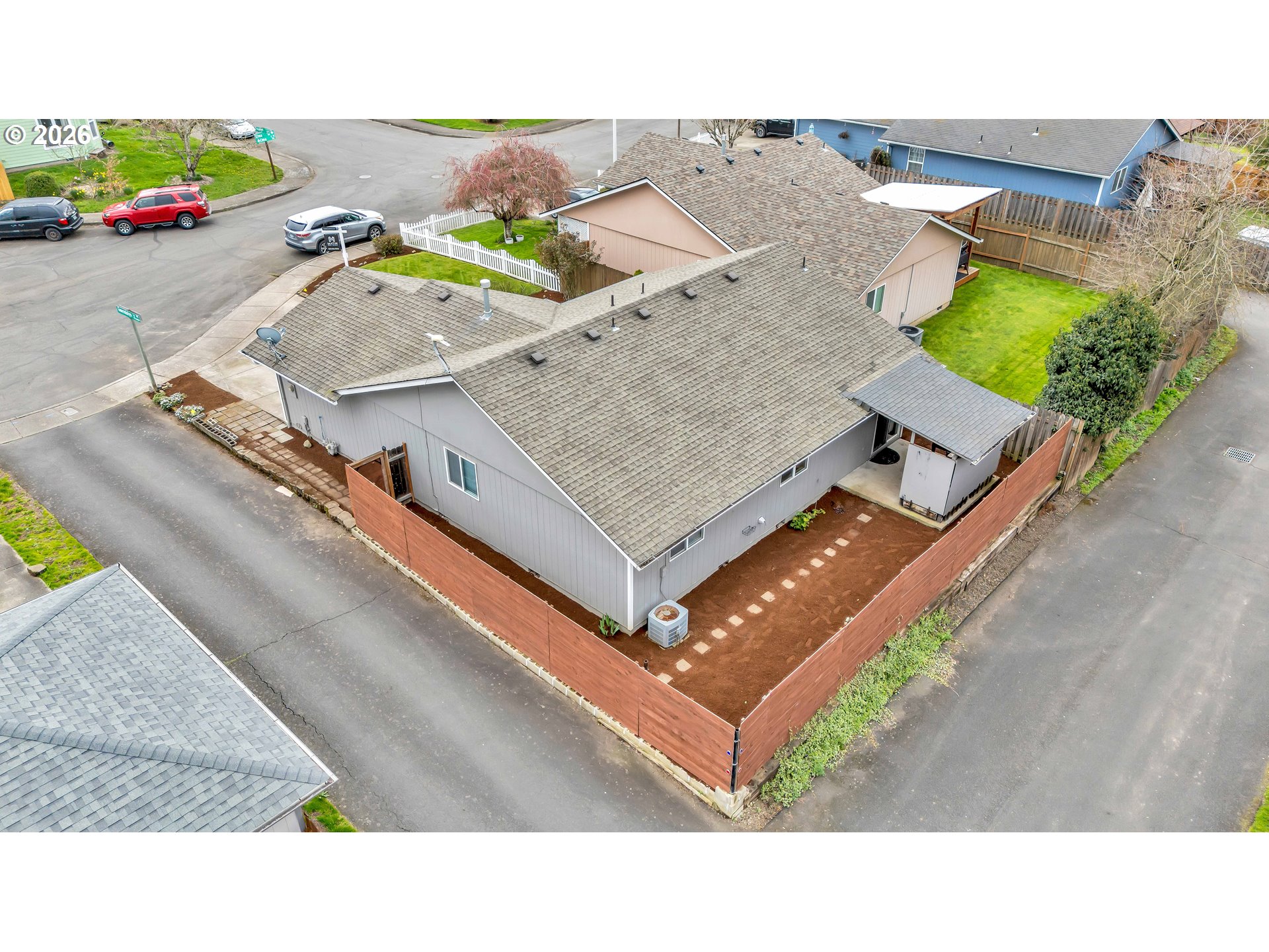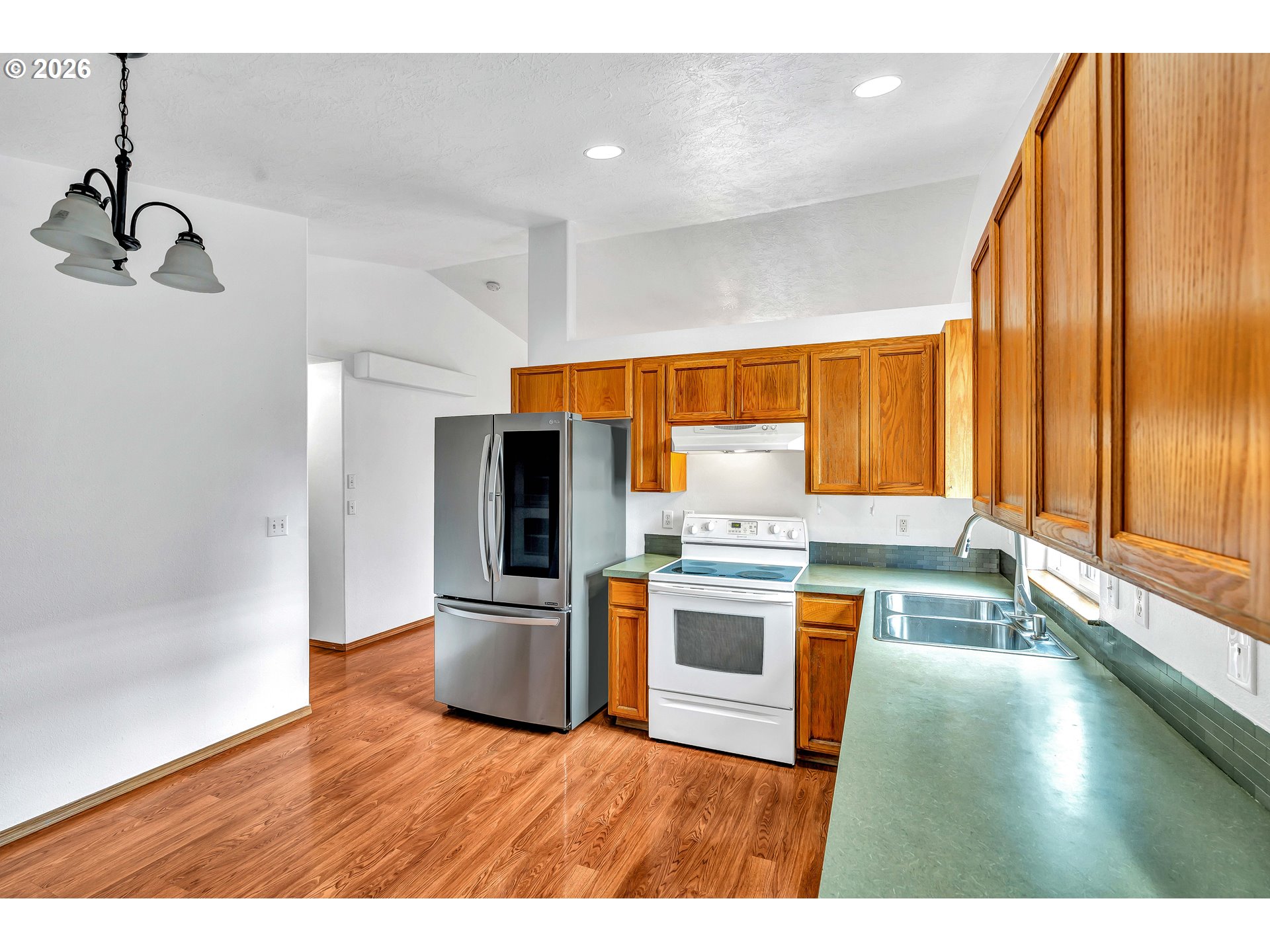 Beautiful one-level home on a cul-de-sac offering 3 bedrooms and 2 bathrooms, including a comfortable primary suite with an ensuite bath. Step inside to find hardwood floors throughout and high vaulted ceilings that create a bright, open feel. The living and dining room combination features a ceiling fan and large windows that fill the space with natural light while overlooking the front yard.The spacious L-shaped kitchen is designed for functionality, featuring double sinks, a built-in dishwasher, and sliding doors that open to a covered patio, perfect for seamless indoor-outdoor living. Laundry is conveniently located in the garage.Enjoy the outdoors in the fully fenced backyard, complete with a large covered patio—ideal for entertaining, relaxing, or year-round enjoyment.Located in Salem, this home offers easy access to local parks, schools, shopping, dining, and major roadways, making commuting and daily errands a breeze while still enjoying a quiet residential setting. Move-in ready and thoughtfully updated, this home is a fantastic opportunity!