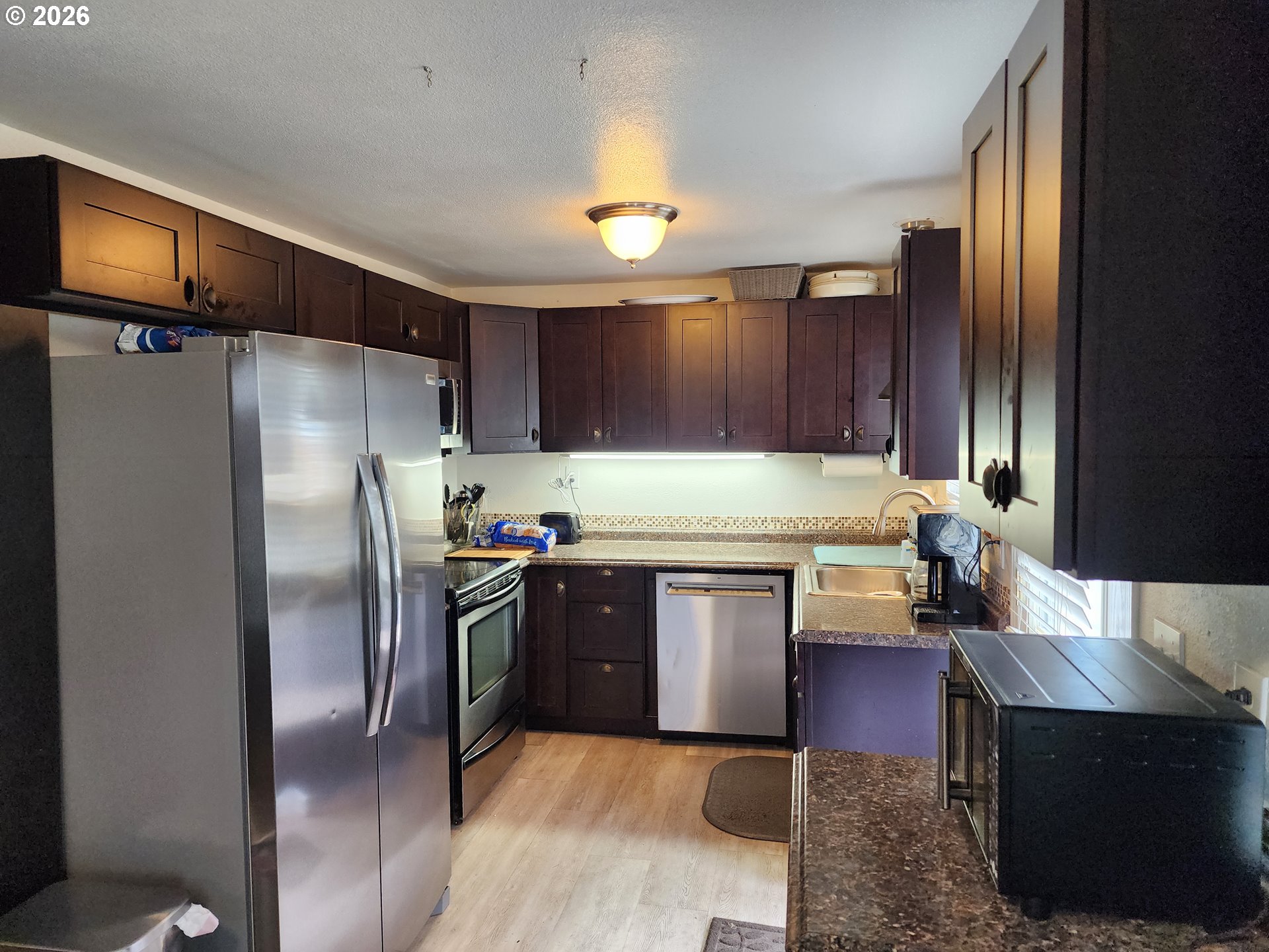 Well-maintained condo in gated community, featuring a primary suite with an ensuite bath and walk-in shower. Includes an updated kitchen with additional cabinetry and newer appliances within the last year. Both bedrooms offer walk-in closets. New roof. Exterior includes a small storage shed and partially fenced yard.