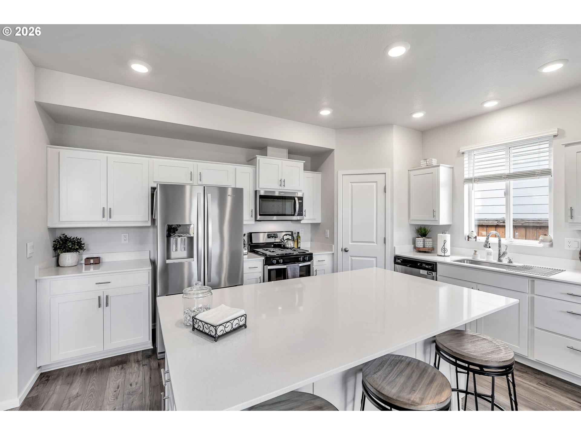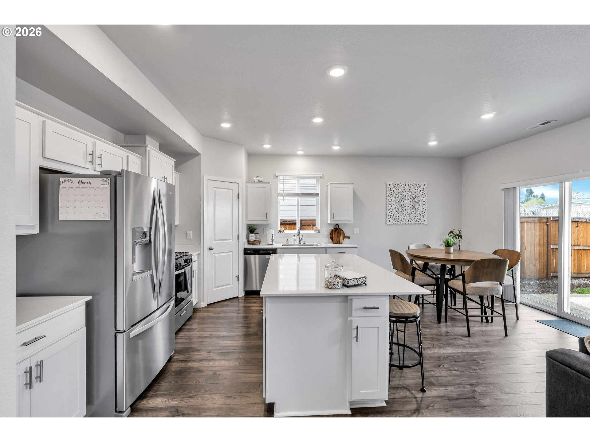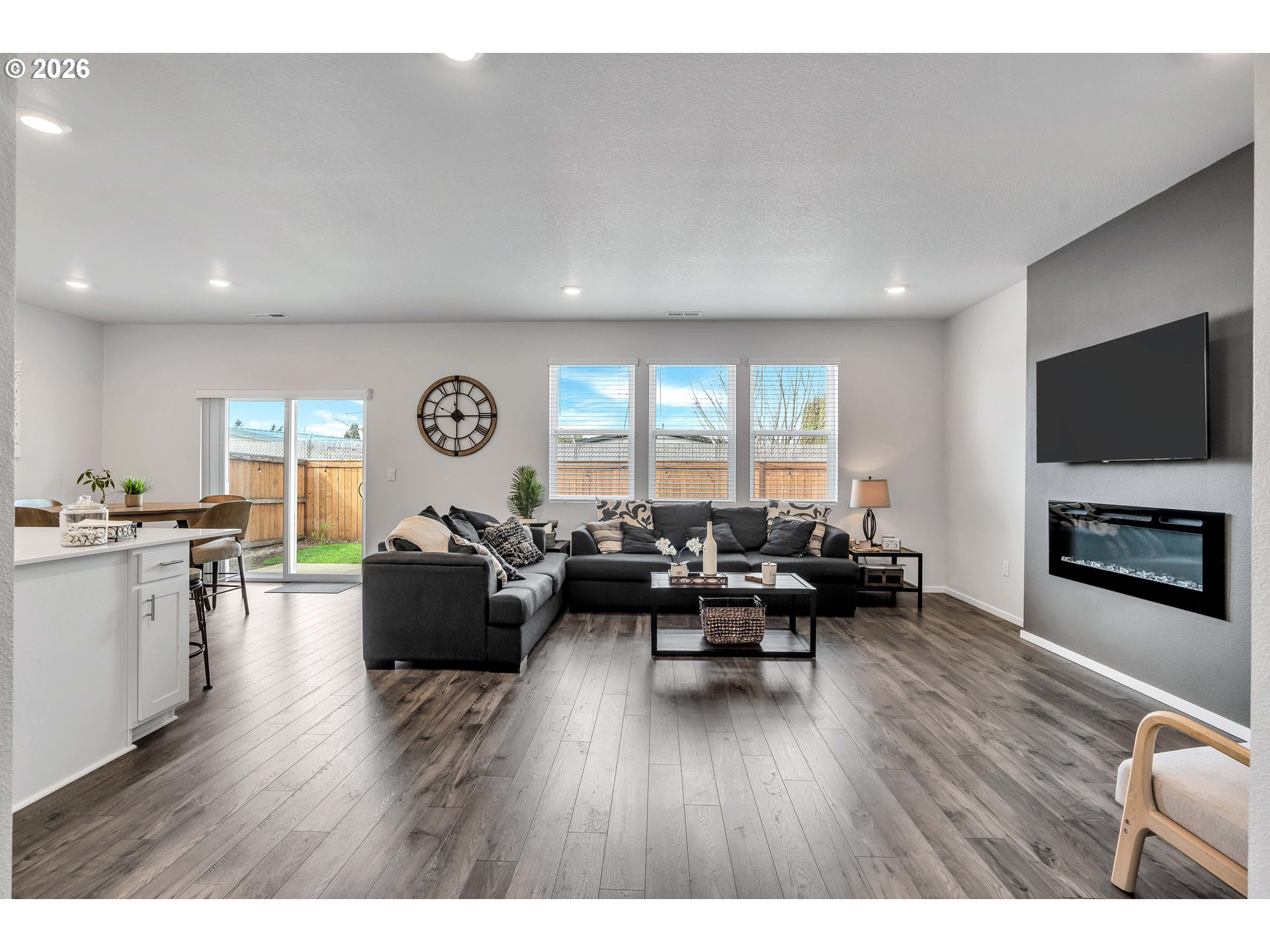 (503) 893-8874This beautifully designed two-level home offers a spacious and functional layout with common living areas downstairs and private spaces upstairs. The main level features laminate flooring throughout and an open-concept design where the living room and kitchen flow seamlessly together, creating an ideal space for entertaining and everyday living. The living room includes a cozy gas fireplace, while the home is filled with abundant natural light throughout.The large kitchen is a true highlight, showcasing a generous island, beautiful finishes, pantry, eat bar, and a dedicated dining area. Sliding doors open directly to the backyard patio, enhancing indoor-outdoor living.Upstairs, you’ll find four bedrooms plus a versatile family room, all with wall-to-wall carpet and closets. The primary suite features a walk-in closet and a private ensuite bathroom with double sinks and a walk-in shower.Step outside to a fully fenced backyard with a patio and yard space, perfect for relaxing, entertaining, or play. With its thoughtful layout, spacious design, and inviting finishes, this home offers comfort, style, and functionality all in one.