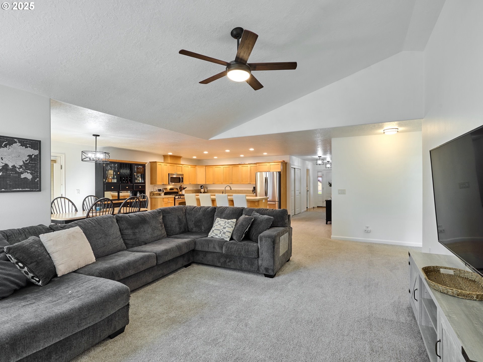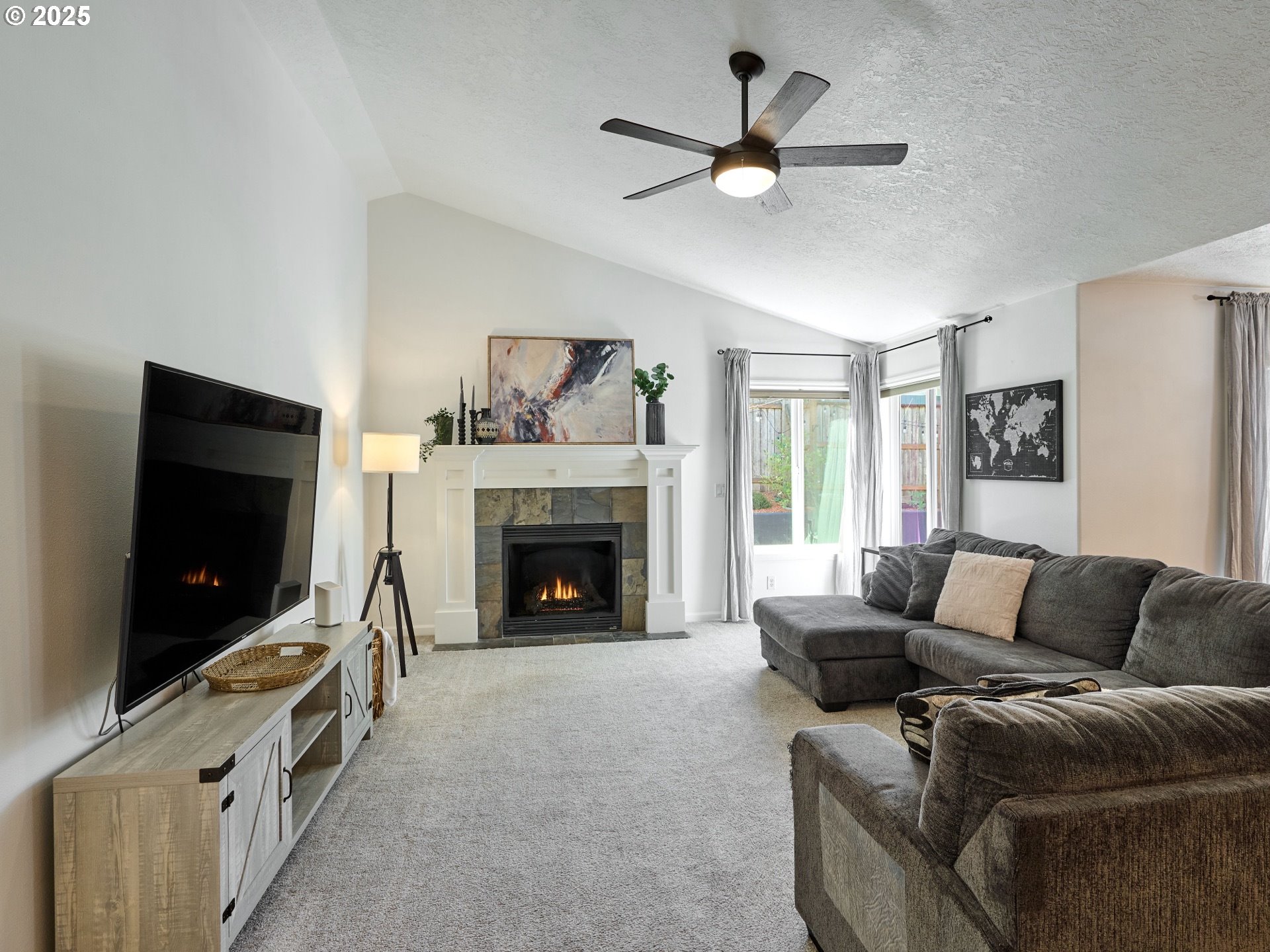 Priced Just Reduced! Beautiful One-Level Home in Quiet Hubbard Neighborhood! This move-in ready home offers easy, single-level living with quick access to Hwy 99. Inside, you'll find an open great room with vaulted ceilings, a gas fireplace with slate surround, and newer carpet throughout. The kitchen and dining areas feature hardwood floors, maple cabinetry, tile countertops, a large island, stainless steel appliances, and a spacious walk-in pantry. The vaulted primary suite includes a soaking tub, dual sinks, and a walk-in closet. Outside is a private backyard with a freshly upgraded fence, usable lawn, and a gated garden area with bark mulch and raised planters. Additional highlights include central air conditioning and a 3-car tandem garage with space for storage or hobbies. Located close to parks, schools, and local conveniences. A must see!