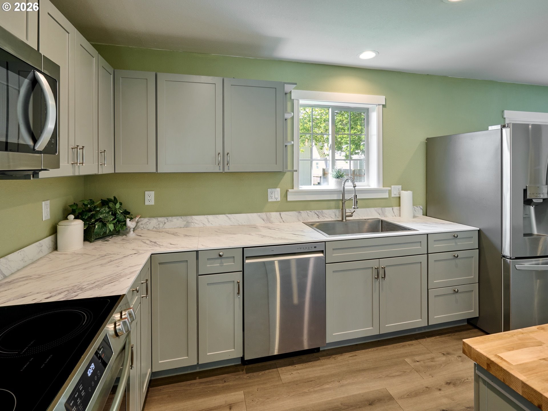 Dishwasher, FreeStandingRange, FreeStandingRefrigerator, Island, Microwave, PlumbedForIceMaker, StainlessS