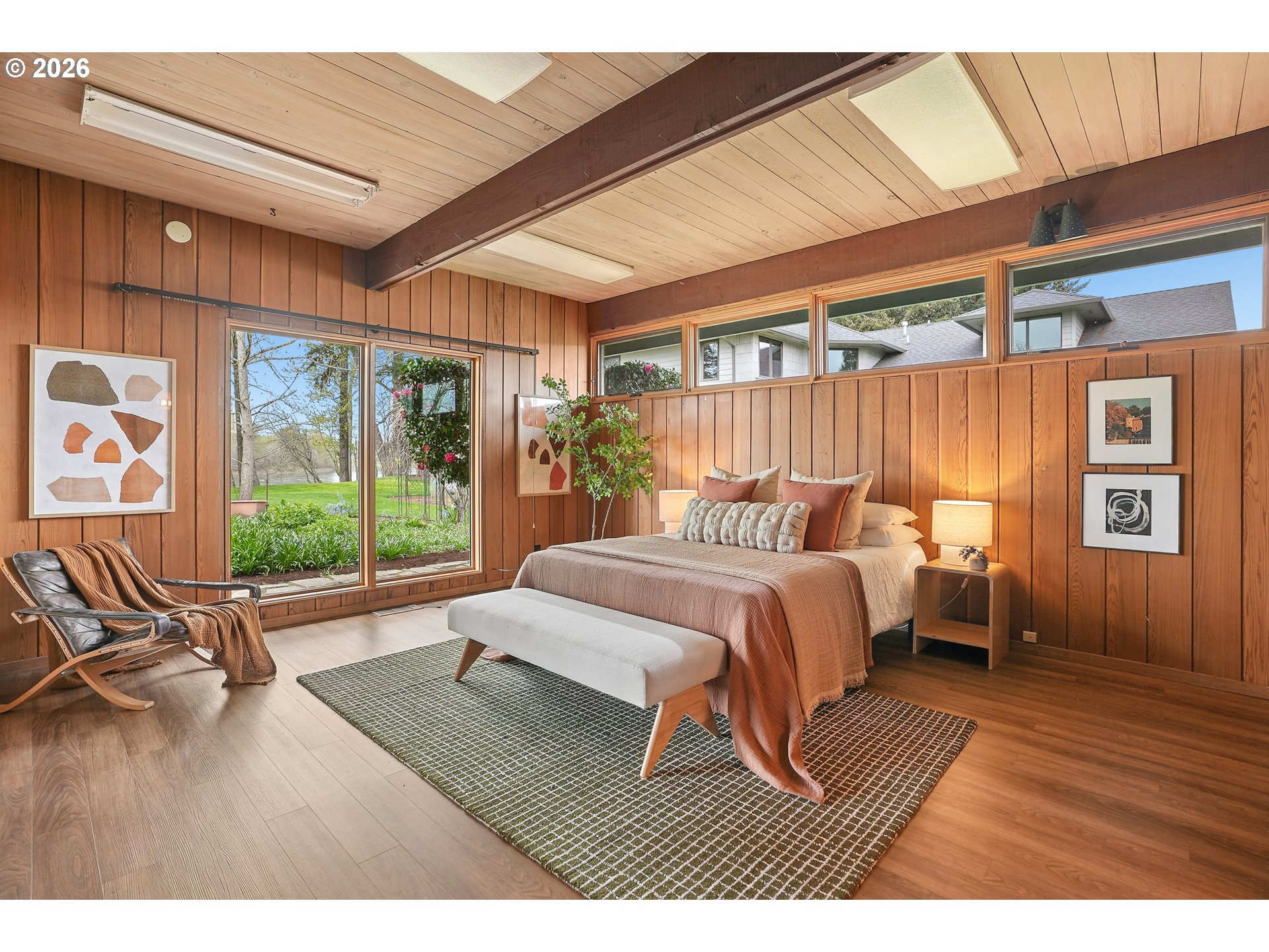 Rare riverfront property just over an acre situated on the Willamette. As you enter, you’re immediately drawn to the view, with abundant natural light, open entertaining spaces, and seamless indoor outdoor living. Exposed beams, built-ins, and a Frank Lloyd Wright inspired interior highlight this custom 1955 home, crafted with hand selected materials by the original owner of a milling company. Beautiful vintage features throughout or bring your own vision and updates. The main level features a chef’s kitchen, gas range, granite countertops, and a dining area with a built-in seating nook framed by large windows. Primary ensuite with water views and patio access, plus updated windows throughout. The lower level daylight basement offers high ceilings, French sliding doors, and a dedicated kitchenette with ADU potential, ideal for extended living, guests, or flexible use. Step outside to a covered outdoor living area with skylights and a gas fireplace, creating a true extension of the home. Beautiful landscaping, privacy, while the terraced, level yard provides easy access to the water and space to enjoy the setting and views. Attached 2 car garage. Generous square footage, see floorplan for layout and flow. Keizer Rapids Park less than 5 minutes away, boat launch, pickleball, golf, and local wineries. Less than an hour to Portland. Twilight open house Thursday 4/9 4:00 PM - 6:00 PM and Saturday 4/11 10:00 AM - 12:00 PM.