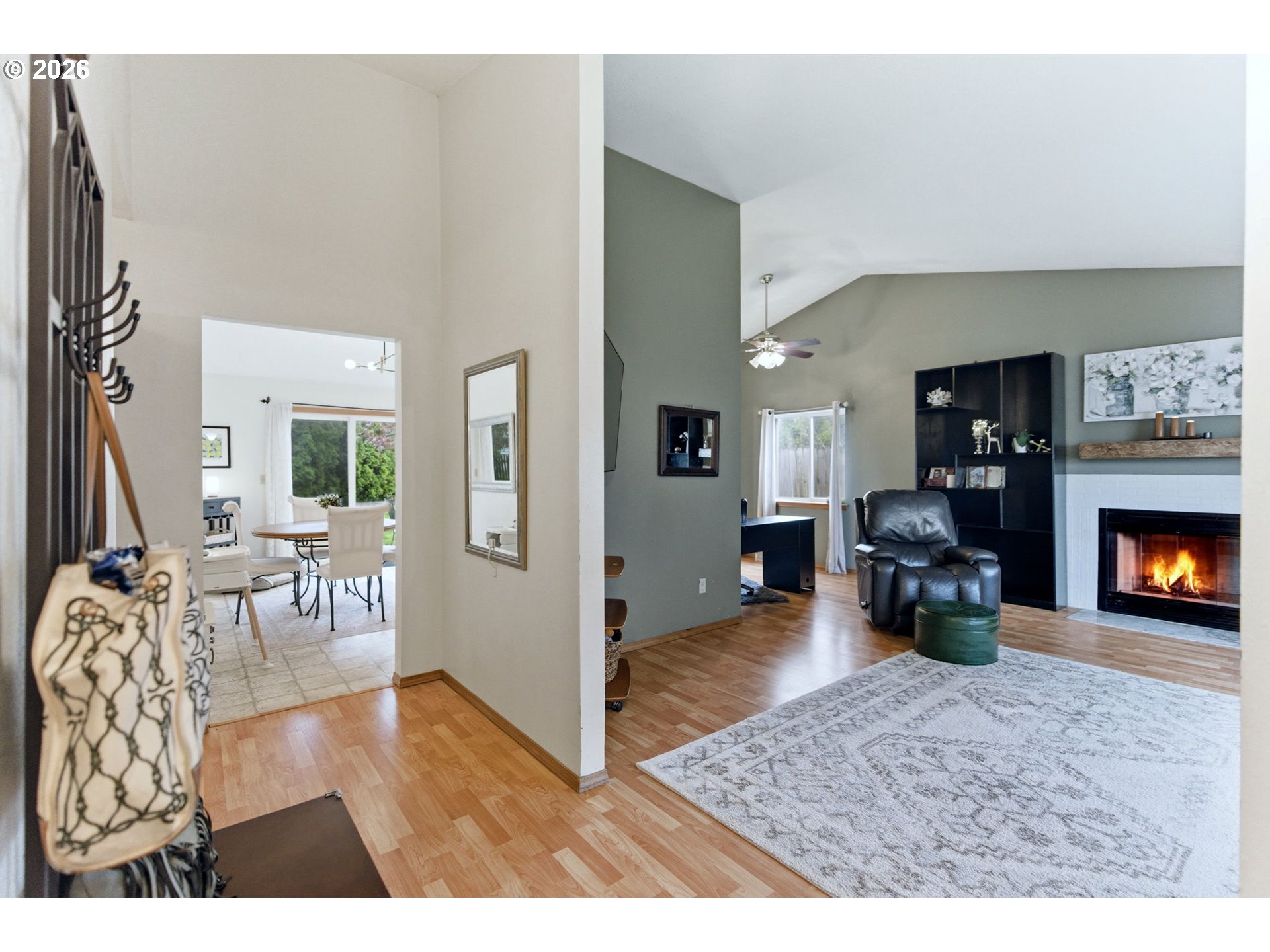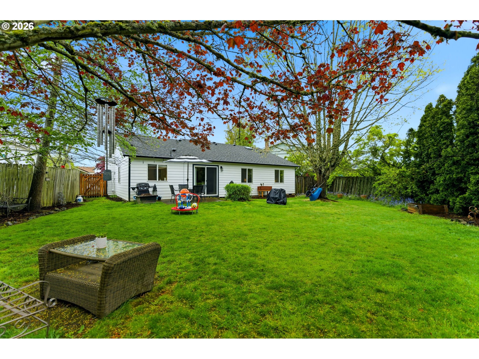 Welcome to this beautifully maintained single-level ranch home, where true pride of ownership shines throughout. Nestled on a quiet cul-de-sac in an established neighborhood, this home offers both comfort and convenience in a highly desirable setting. Thoughtfully updated, the property features a new roof still under warranty (2025), new skylight in primary bath with remote controlled retractable blind (2025), rebuilt chimney & new flue (2022) clean - only used twice since, custom handmade fireplace mantle, exterior paint (2022) and Nest security features; video doorbell, entry keypad, thermostat and smoke / carbon monoxide detectors all conveniently accessible through the app. Along with tastefully renovated bathrooms (2023) that blend modern style with everyday functionality. Inside, you’ll find soaring vaulted ceilings that create a bright, open feel, complemented by spacious living areas perfect for relaxing or entertaining. The kitchen is equipped with stainless steel appliances, and the refrigerator is included in the sale along with the washer & dryer making this home truly move-in ready. Step outside to a generous backyard that backs directly to an elementary school, offering added privacy and a sense of openness. Whether you're hosting gatherings, gardening, or enjoying outdoor play, the space is ready to fit your lifestyle. The play structure is also included, adding extra value and fun. With its combination of thoughtful updates, inviting layout, and prime location, this home is a rare find you won’t want to miss.