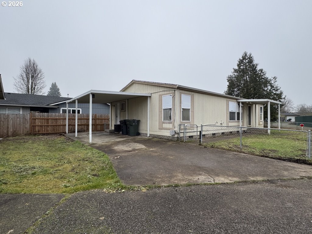 Comfortable manufactured home with vaulted ceilings. Split floor plan with primary bedroom and secondary bedrooms are on opposite sides. Smart thermostat to keep you warm in the winter and cool in the summer. Washer and dryer included. New roof in 2019. Large fenced yard. Carport plus space for shed, small trailer, etc. Easy commute with highway access and public transportation. No park rent and No HOA! As Is Sale, Seller to do no repairs. Bring your vision, add your personal touches and make it home!