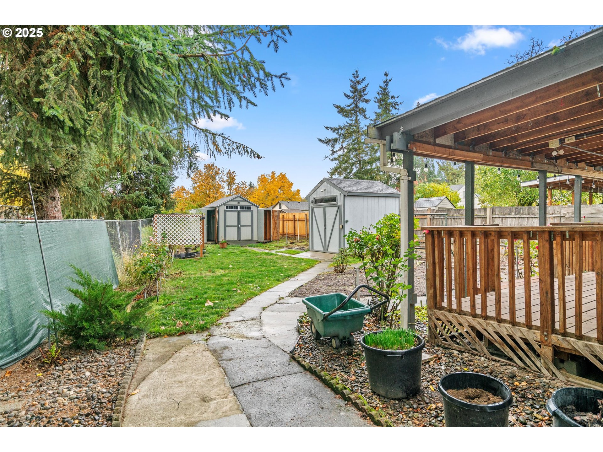 This charming 3-bedroom, 2-bath home sits on a spacious lot at the end of a quiet dead-end street, backing up to a school. Inside, you’ll love the wide, inviting floor plan featuring fresh interior paint, brand-new carpet, and a ceiling fan in every room for year-round comfort. One bedroom is separated from the others, offering privacy and flexibility.The kitchen opens to a dedicated dining area, perfect for gatherings and everyday meals. Outside, multiple storage and utility rooms add exceptional functionality—including a separate laundry area with exterior access—and two storage sheds provide even more room for your tools, hobbies, and outdoor gear.Enjoy the covered back deck overlooking the large yard, an ideal space to relax or entertain. Tucked away in a peaceful setting yet close to all the conveniences of Salem, this home perfectly combines comfort, character, and practicality.