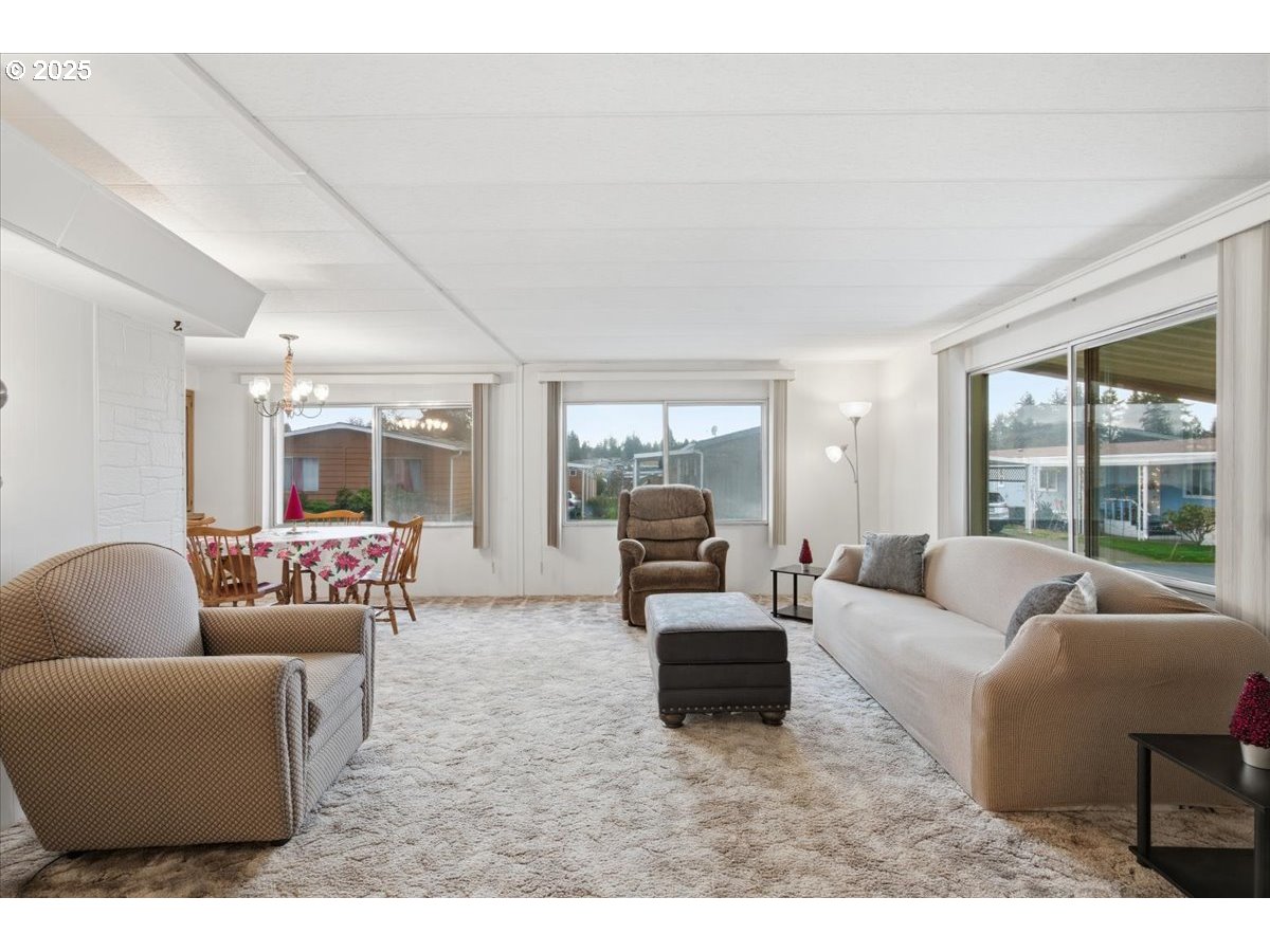Discover comfort and convenience in this charming, move-in-ready 1973 doublewide home located in the desirable Sunnyside Mobile Home Park, a welcoming 55+ community. With 1,344 sq ft of living space, this home offers a bright open-concept layout and a wheelchair ramp leading to the front door for easy accessibility. Inside, enjoy two large bedrooms, two full bathrooms with new flooring and toilets, a spacious living room, cozy family room with an electric fireplace, and a dedicated utility room. The walk-in shower adds extra comfort, and the home has been professionally cleaned, including carpets. Central heating and AC, along with a new HVAC system and water heater, ensure year-round comfort. The kitchen comes fully equipped with all appliances—dishwasher, range/oven, refrigerator, microwave—and the washer and dryer are included. Plenty of storage throughout, plus a carport with an attached shed. All furniture is negotiable. The roof has been recently resealed, offering peace of mind. Space rent is only $815/month, with water/sewer/garbage billed separately at approximately $80/month. Community amenities include a clubhouse, workout room with brand-new exercise equipment, pool table, and a forest picnic area. All buyers must be park-approved. Cash only. This beautifully maintained home won’t last long—schedule your showing today!