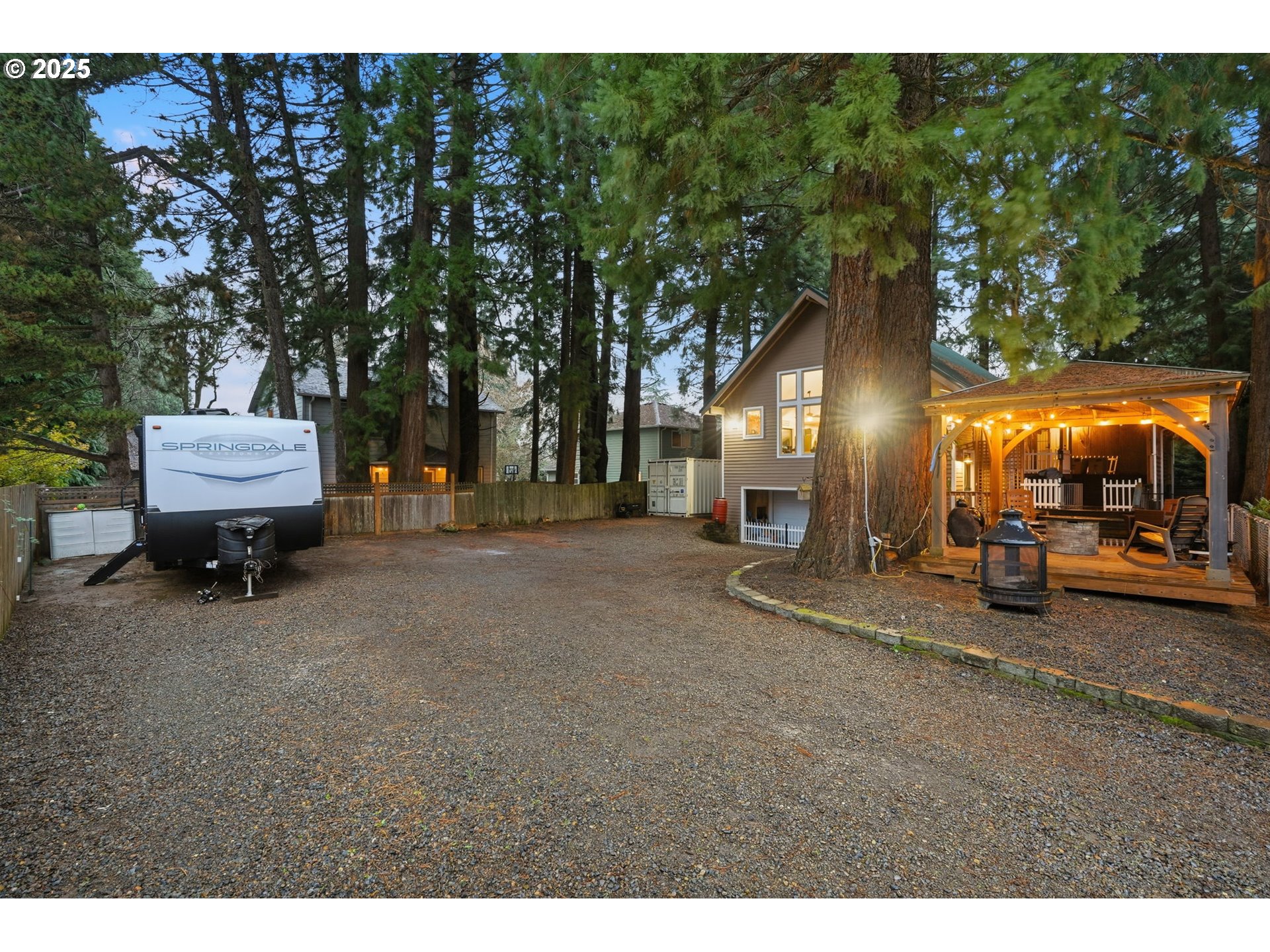 Nestled in a private location, this spacious 4 bed/3 bath home offers privacy with a private driveway/gate. Surrounded by beautiful, mature trees. Large windows throughout, flooding the space w/natural light. The multi-level deck is perfect for outdoor entertaining. Downstairs is currently being used as a Mother-in-Law Suite/ADU incl bedroom, bathroom, living area & kitchenette. Space for RV parking & toys. If your looking for a versatile property in a private setting—this is the perfect match! A Must-see!