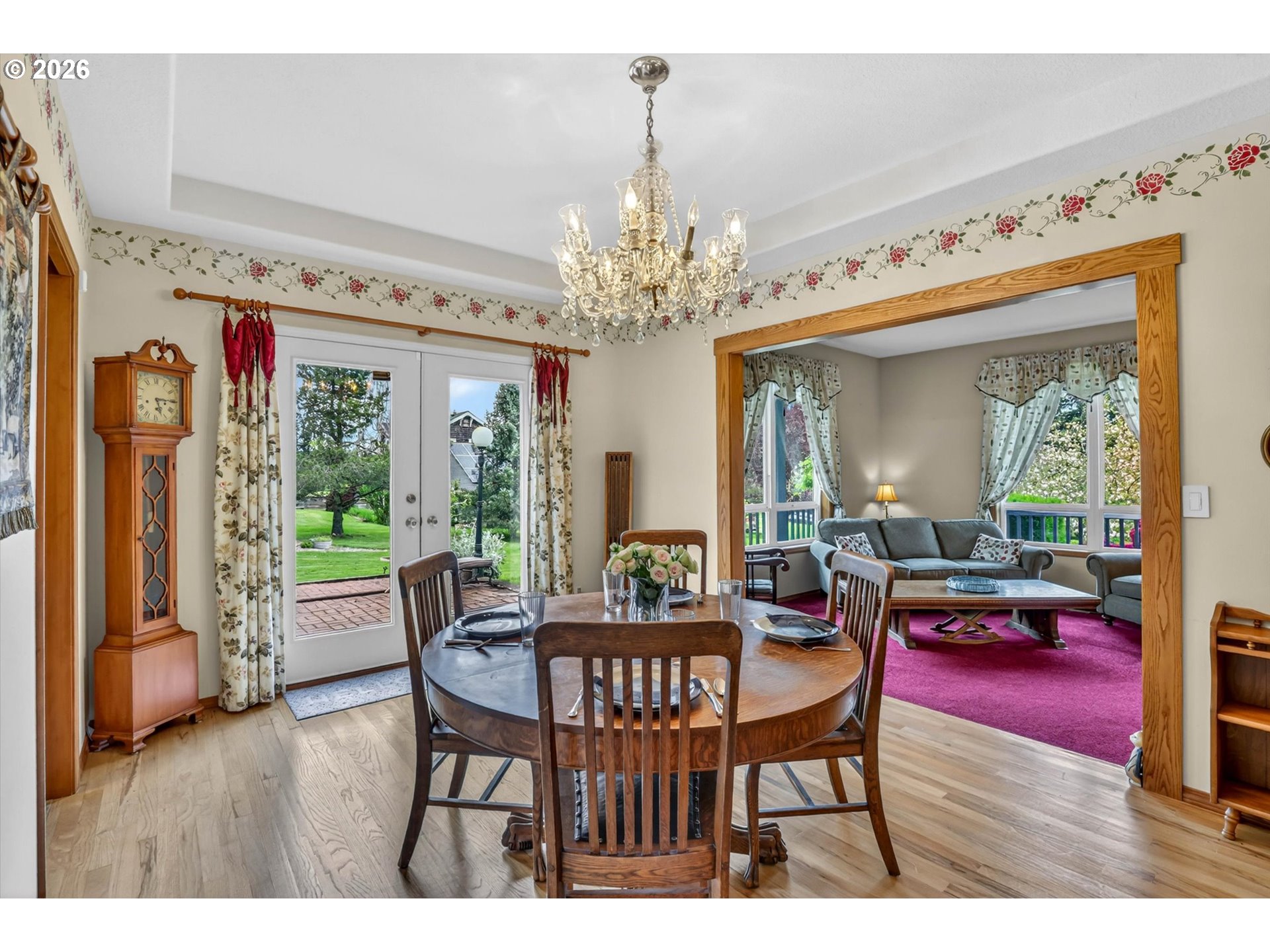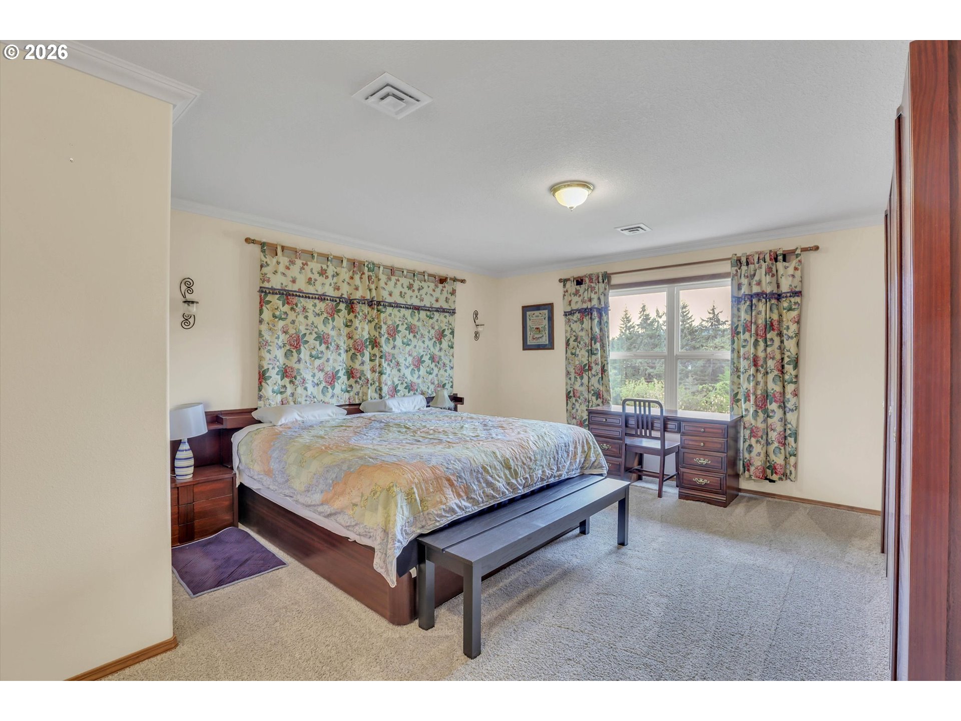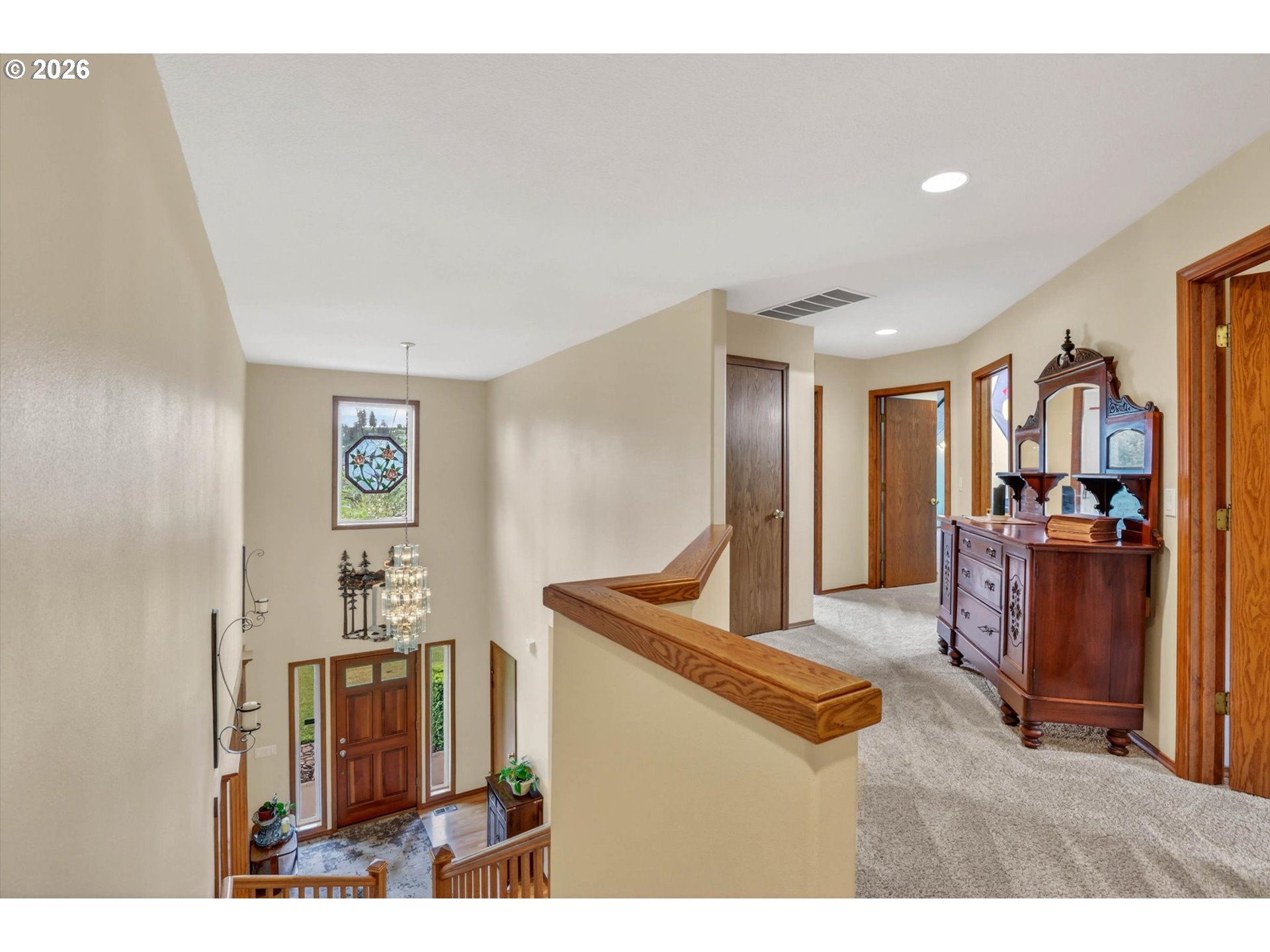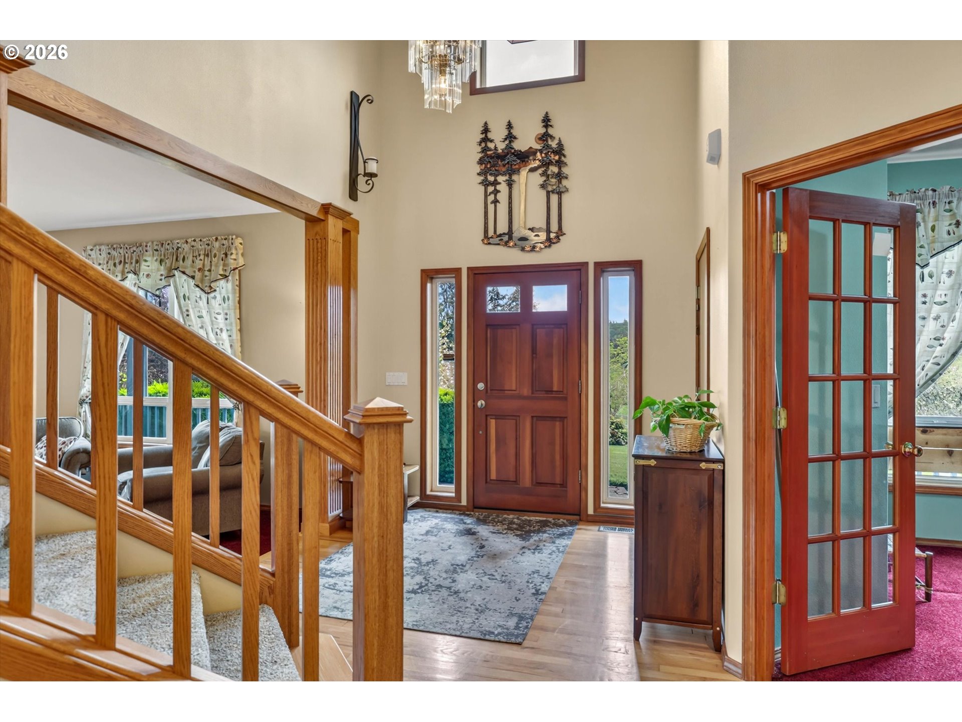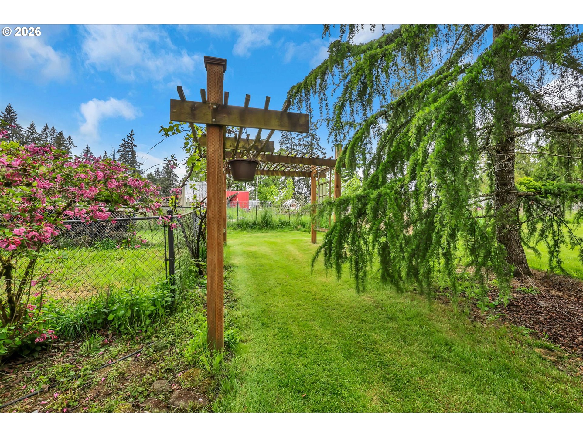 Tucked into a rural setting with sweeping, picturesque views, this exceptional property offers the perfect balance of privacy and convenience—just minutes from downtown amenities. A tree-lined paved driveway welcomes you home, setting the tone for the beauty and tranquility that await. Designed for both everyday living and elegant entertaining, the home features soaring high ceilings and a grand foyer that creates a stunning first impression. Inside, you’ll find a thoughtfully designed layout including a dedicated office, formal dining room, spacious living room, and a comfortable family room. A versatile bonus room provides endless possibilities for hobbies, media, or guest space. French doors open to a large brick patio, seamlessly blending indoor and outdoor living, while a wraparound porch invites you to relax and take in the peaceful surroundings. An observation deck offers a perfect vantage point to soak in the breathtaking views. Outdoors, enjoy a fully fenced pet area and a variety of established plantings, including blueberries, raspberries, thornless blackberries, and a charming grape arbor—ideal for those who appreciate homegrown delights. Additional features include solar panels for energy efficiency and a new well for peace of mind. This one-of-a-kind property delivers comfort, functionality, and natural beauty in a truly idyllic setting.