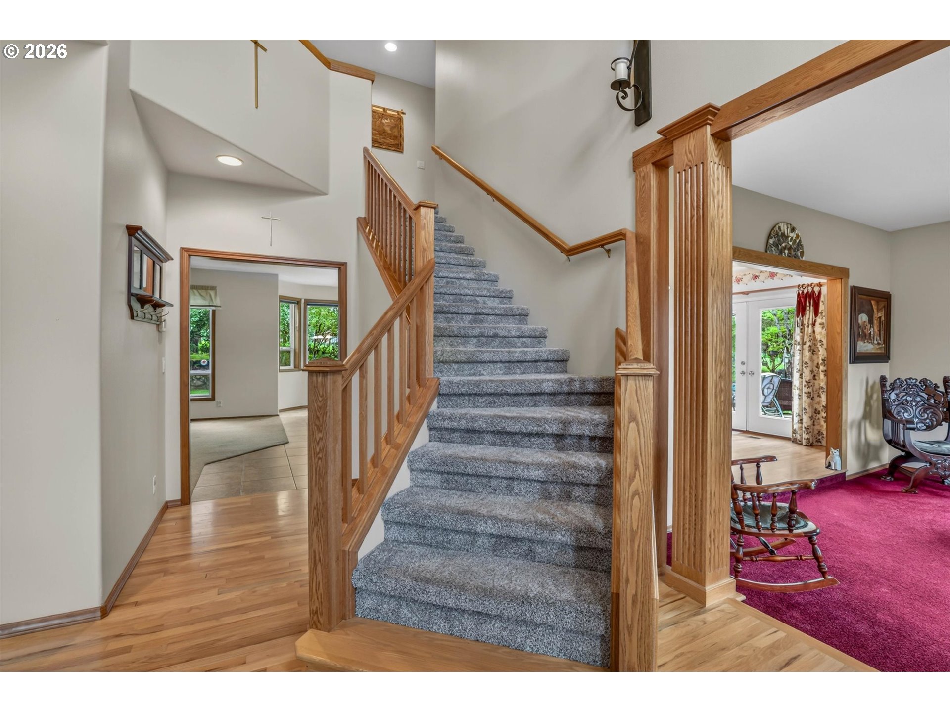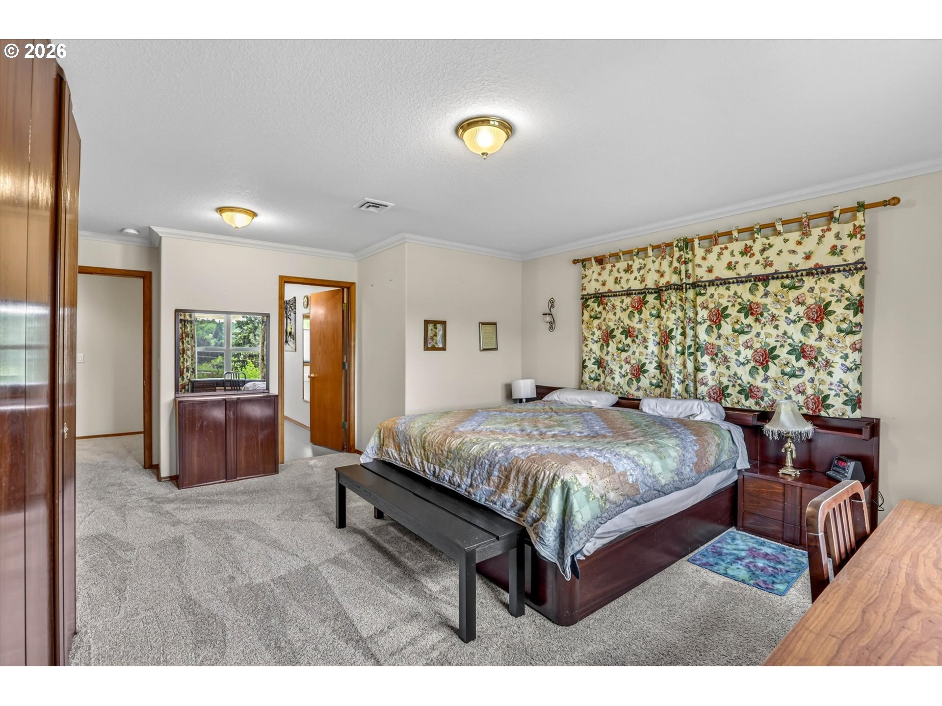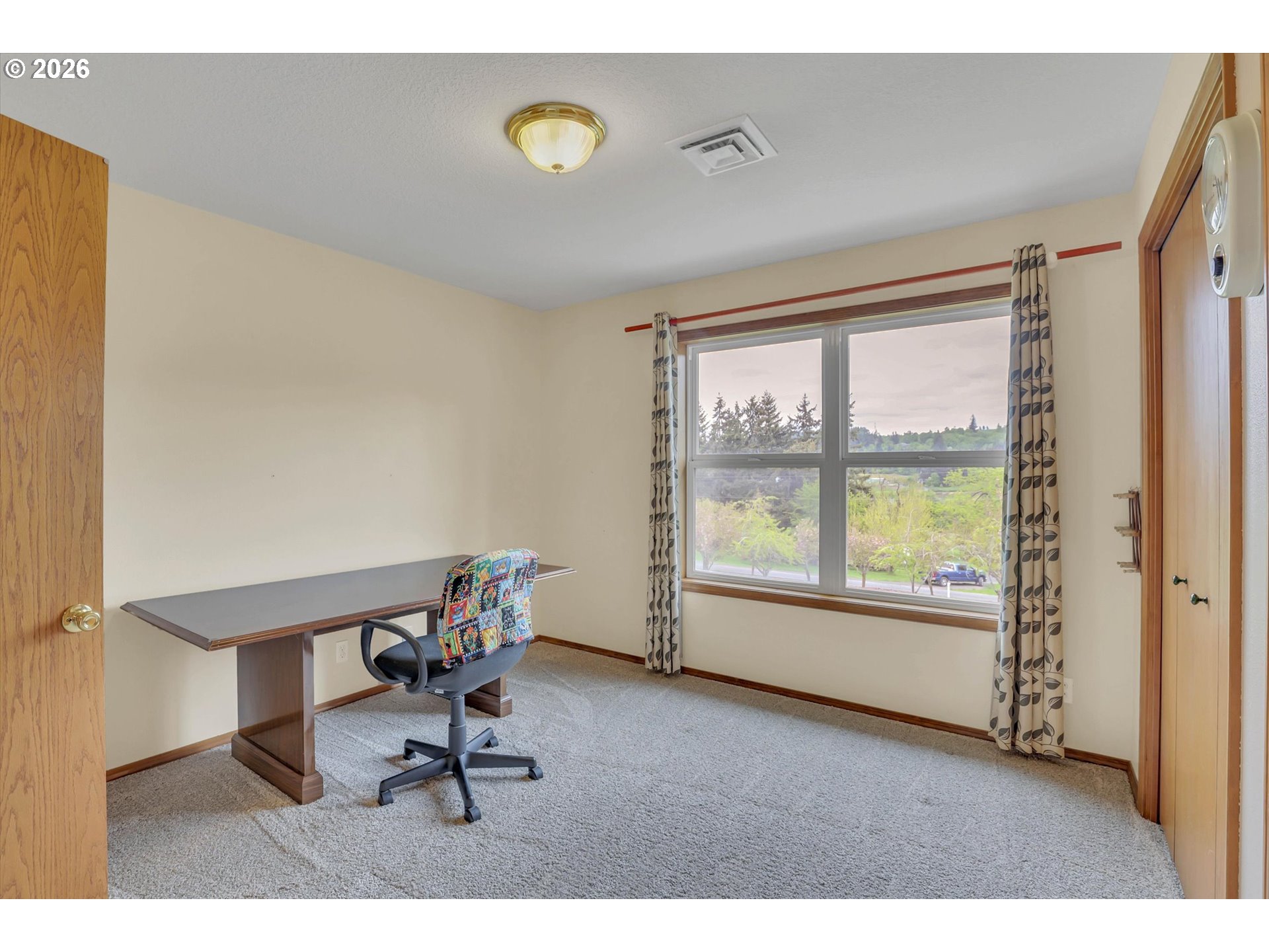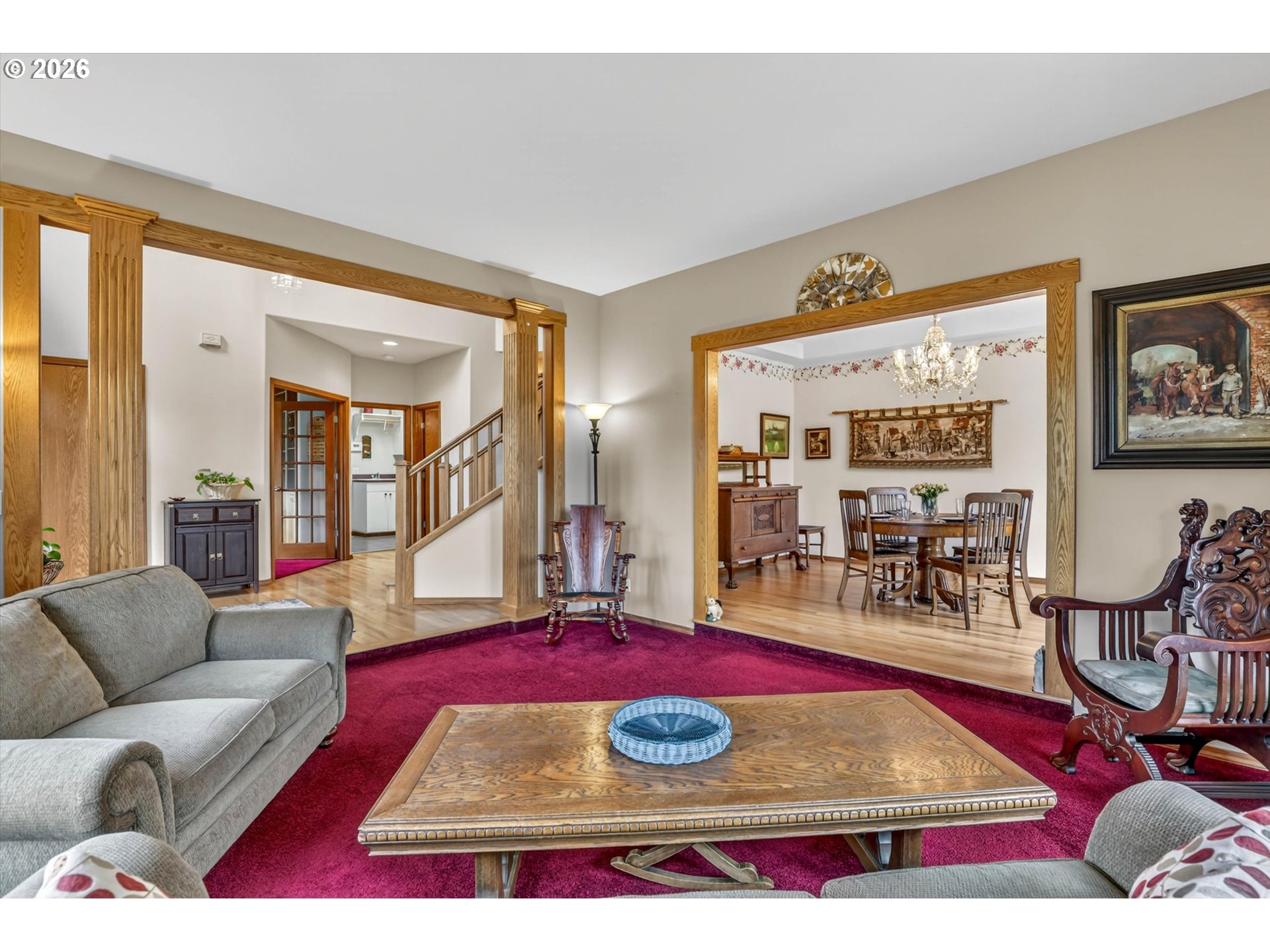 Tucked into a rural setting with sweeping, picturesque views, this exceptional property offers the perfect balance of privacy and convenience—just minutes from downtown amenities. A tree-lined paved driveway welcomes you home, setting the tone for the beauty and tranquility that await. Designed for both everyday living and elegant entertaining, the home features soaring high ceilings and a grand foyer that creates a stunning first impression. Inside, you’ll find a thoughtfully designed layout including a dedicated office, formal dining room, spacious living room, and a comfortable family room. A versatile bonus room provides endless possibilities for hobbies, media, or guest space. French doors open to a large brick patio, seamlessly blending indoor and outdoor living, while a wraparound porch invites you to relax and take in the peaceful surroundings. An observation deck offers a perfect vantage point to soak in the breathtaking views. Outdoors, enjoy a fully fenced pet area and a variety of established plantings, including blueberries, raspberries, thornless blackberries, and a charming grape arbor—ideal for those who appreciate homegrown delights. Additional features include solar panels for energy efficiency and a new well for peace of mind. This one-of-a-kind property delivers comfort, functionality, and natural beauty in a truly idyllic setting.