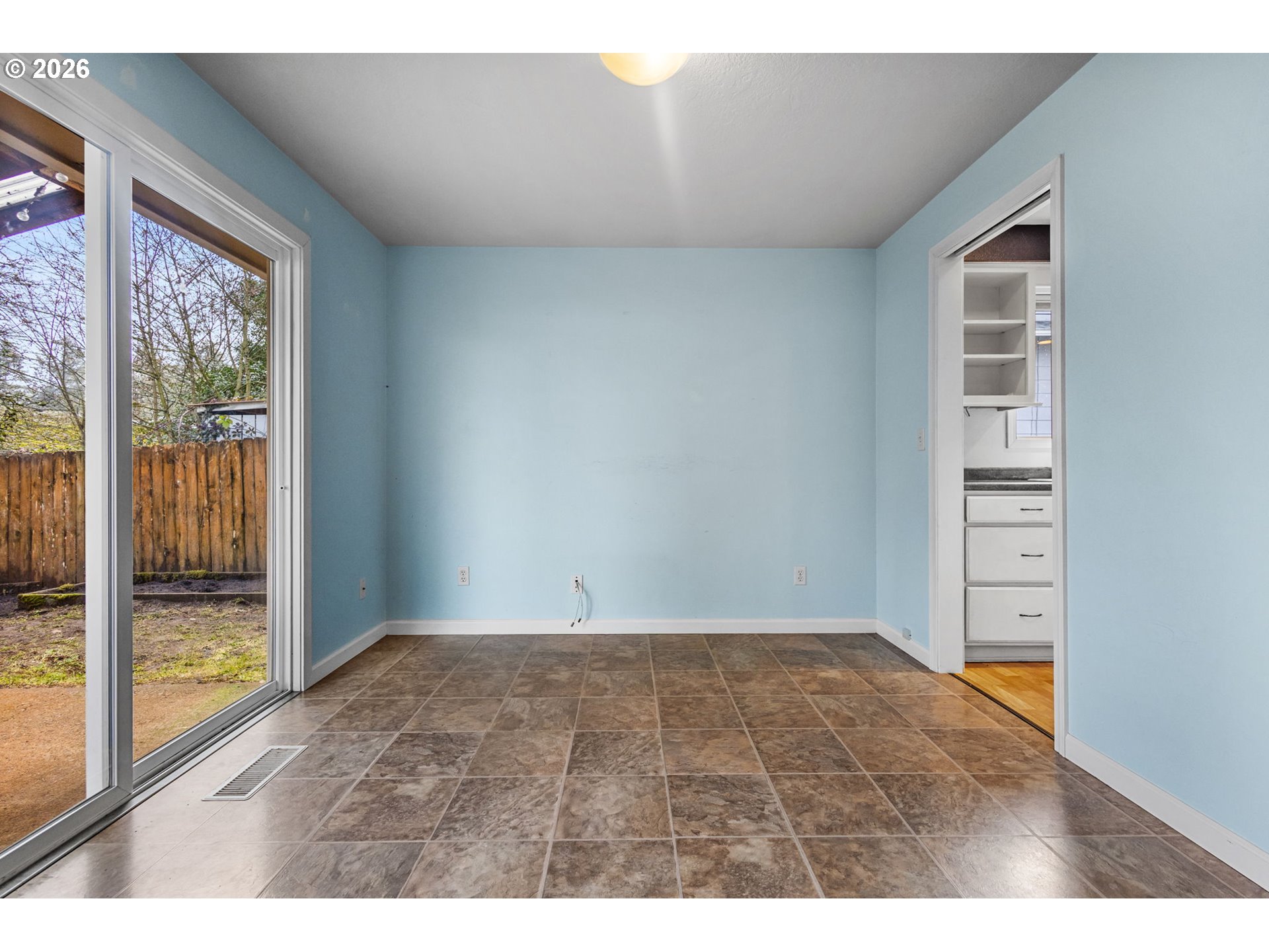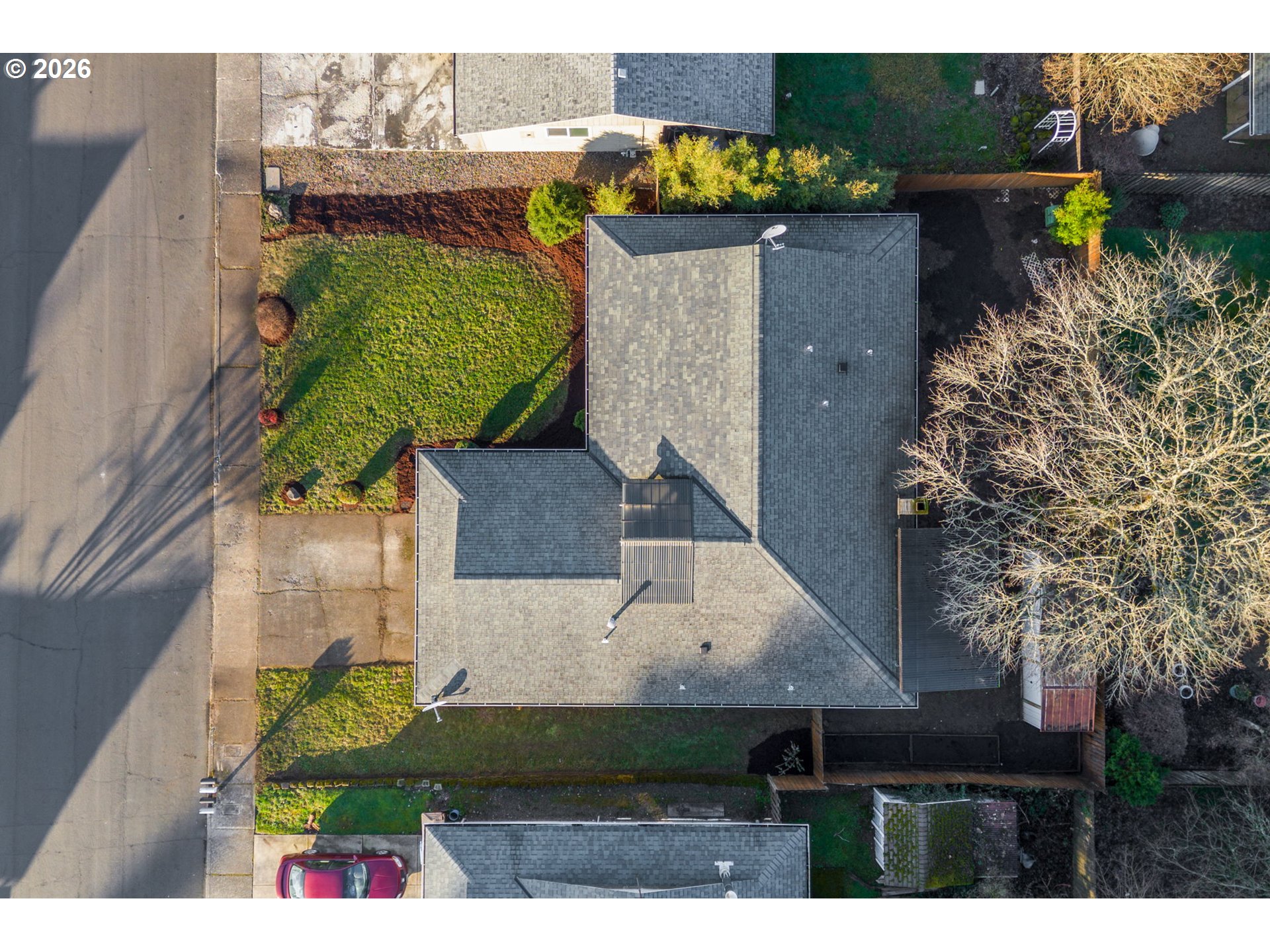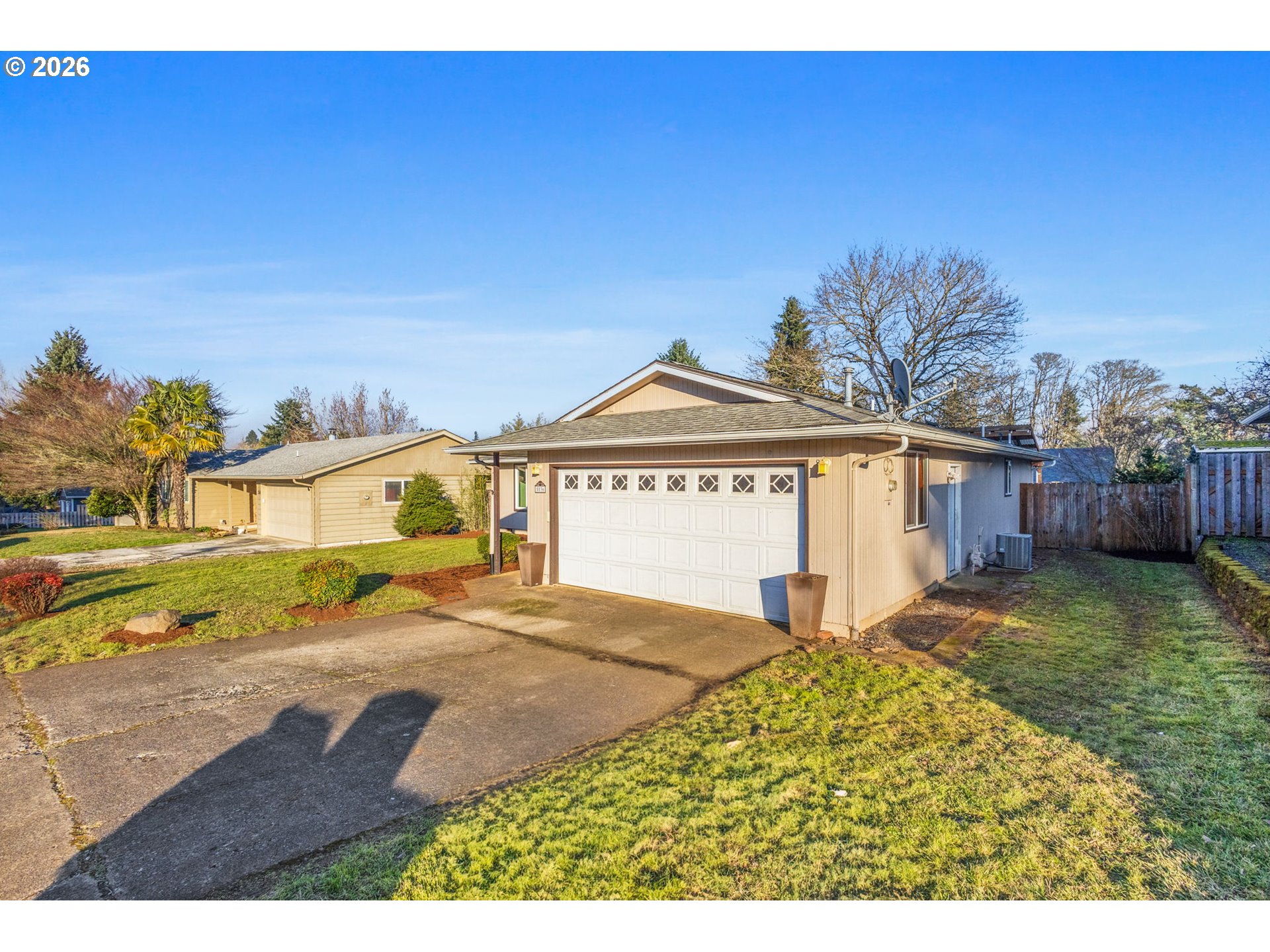 Single-level 1,454 sqft home located in a quiet South Salem cul-de-sac. ** Seller credit for interior paint **. Large, covered walkway leads to entrance with a covered atrium on front deck tucked into the side with its own kitchen entrance. Features include formal and casual dining areas, a covered backyard patio off kitchen, and a spacious living room with fireplace and beamed ceilings. Primary suite offers a walk-in closet. Just down the street from Crossler Middle School and Secor Park.This home really shines at night with great interplay between mid-century modern style windows and exterior lighting. Fully fenced and gated backyard ready for grass seed. Newer drainage system that that connects with gutter system and French drains. Lots of linen closets and a laundry/mudroom with utility sink. The home is perfectly set up to enjoy both back and front yard areas and the atrium compliments the natural flow of the layout. Vinyl windows and sliding doors.