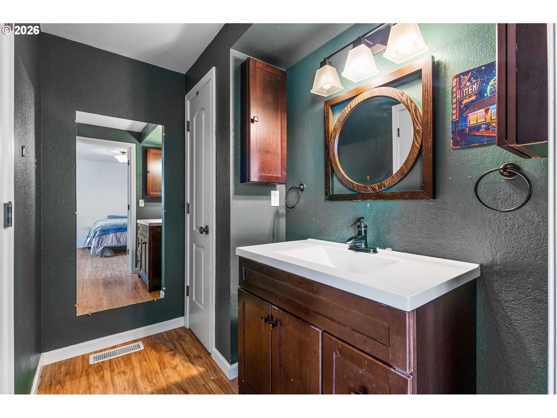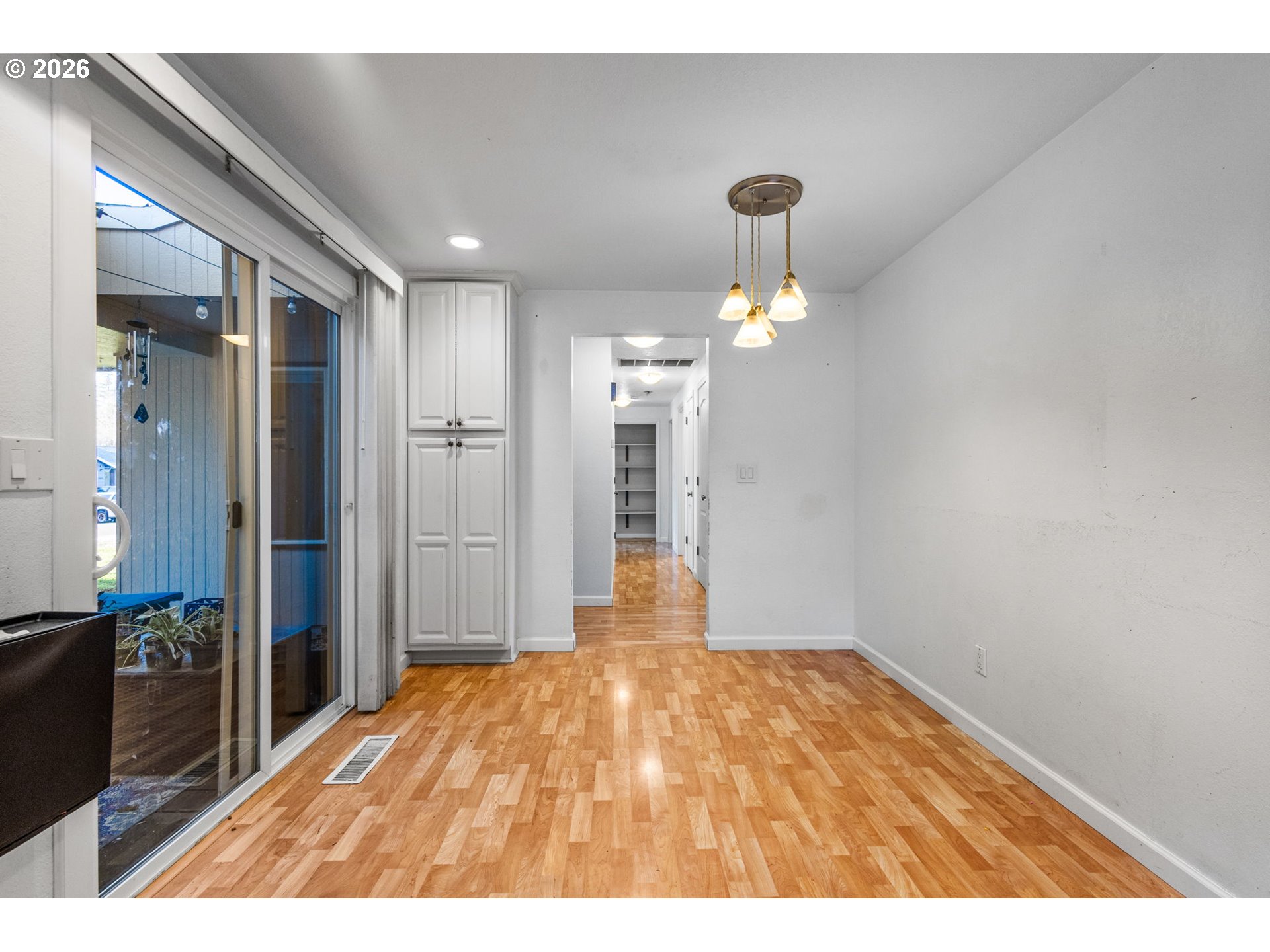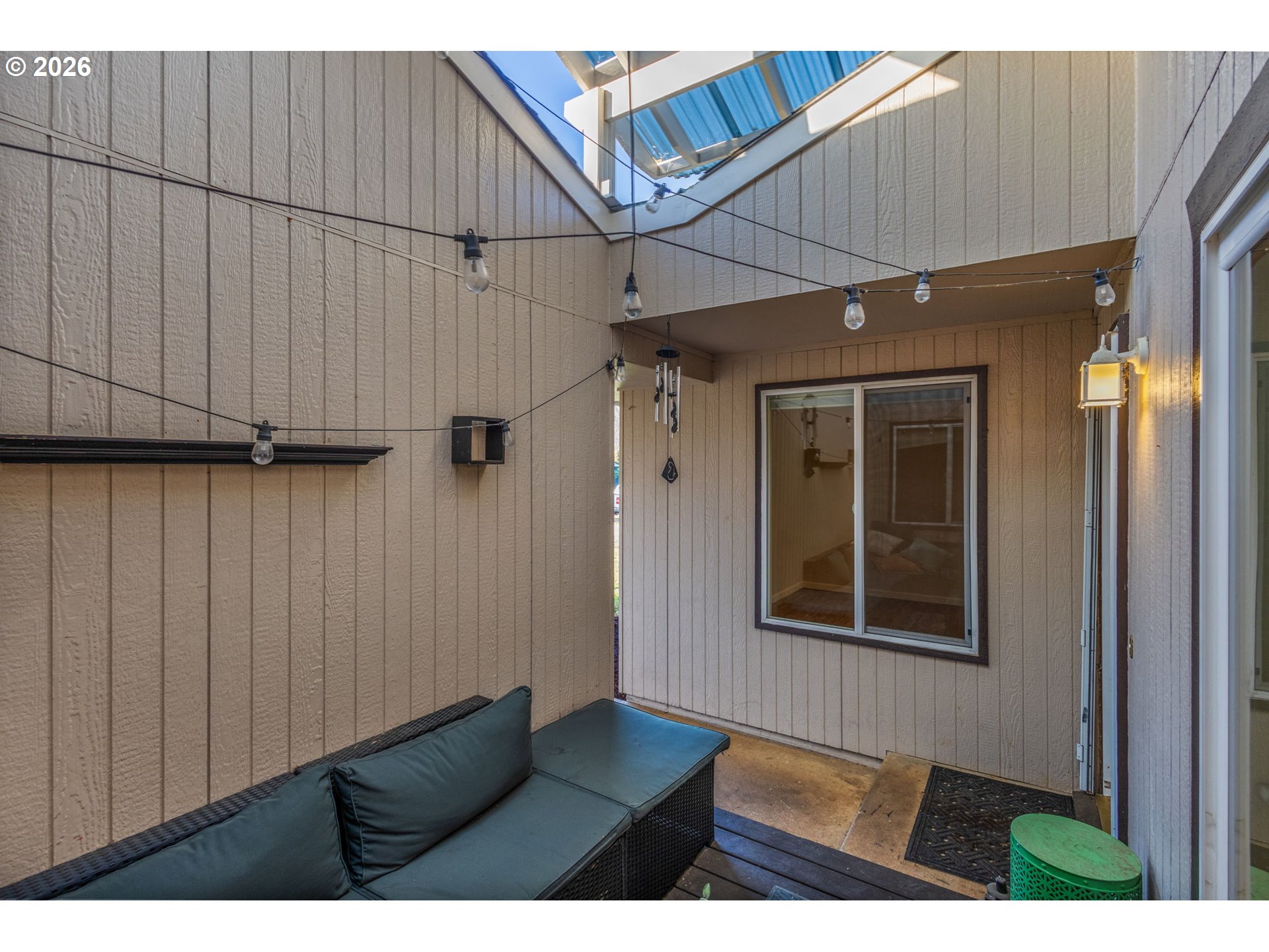 Single-level 1,454 sqft home located in a quiet South Salem cul-de-sac. ** Seller credit for interior paint **. Large, covered walkway leads to entrance with a covered atrium on front deck tucked into the side with its own kitchen entrance. Features include formal and casual dining areas, a covered backyard patio off kitchen, and a spacious living room with fireplace and beamed ceilings. Primary suite offers a walk-in closet. Just down the street from Crossler Middle School and Secor Park.This home really shines at night with great interplay between mid-century modern style windows and exterior lighting. Fully fenced and gated backyard ready for grass seed. Newer drainage system that that connects with gutter system and French drains. Lots of linen closets and a laundry/mudroom with utility sink. The home is perfectly set up to enjoy both back and front yard areas and the atrium compliments the natural flow of the layout. Vinyl windows and sliding doors.
