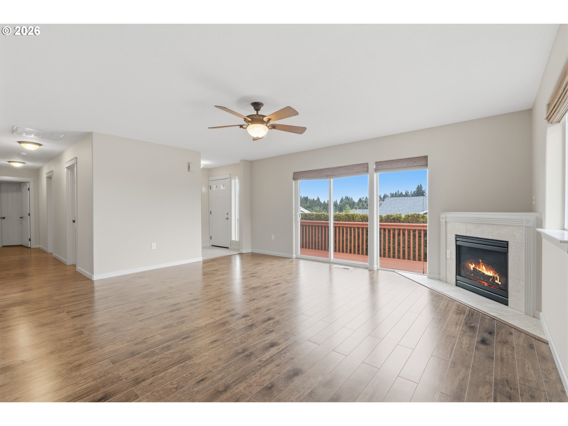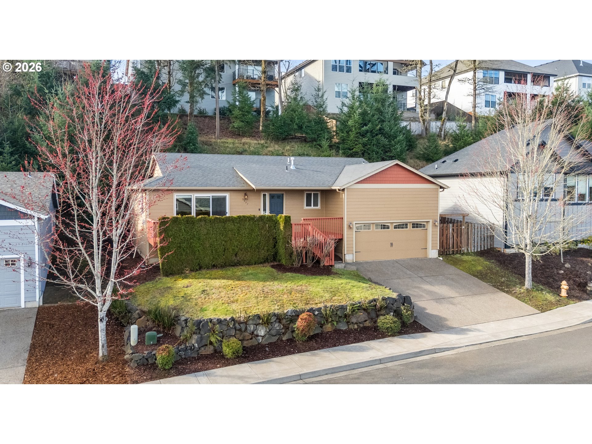 Immaculate one-level home in a newer South Salem neighborhood. Bright great room with lots of sunlight and territorial views from the large front deck. Open floor plan with gas fireplace, dining area, and kitchen with pantry. Three bedrooms and two bathrooms, including a primary suite. Indoor laundry and laminate floors throughout. Low maintenance yard with underground sprinklers.