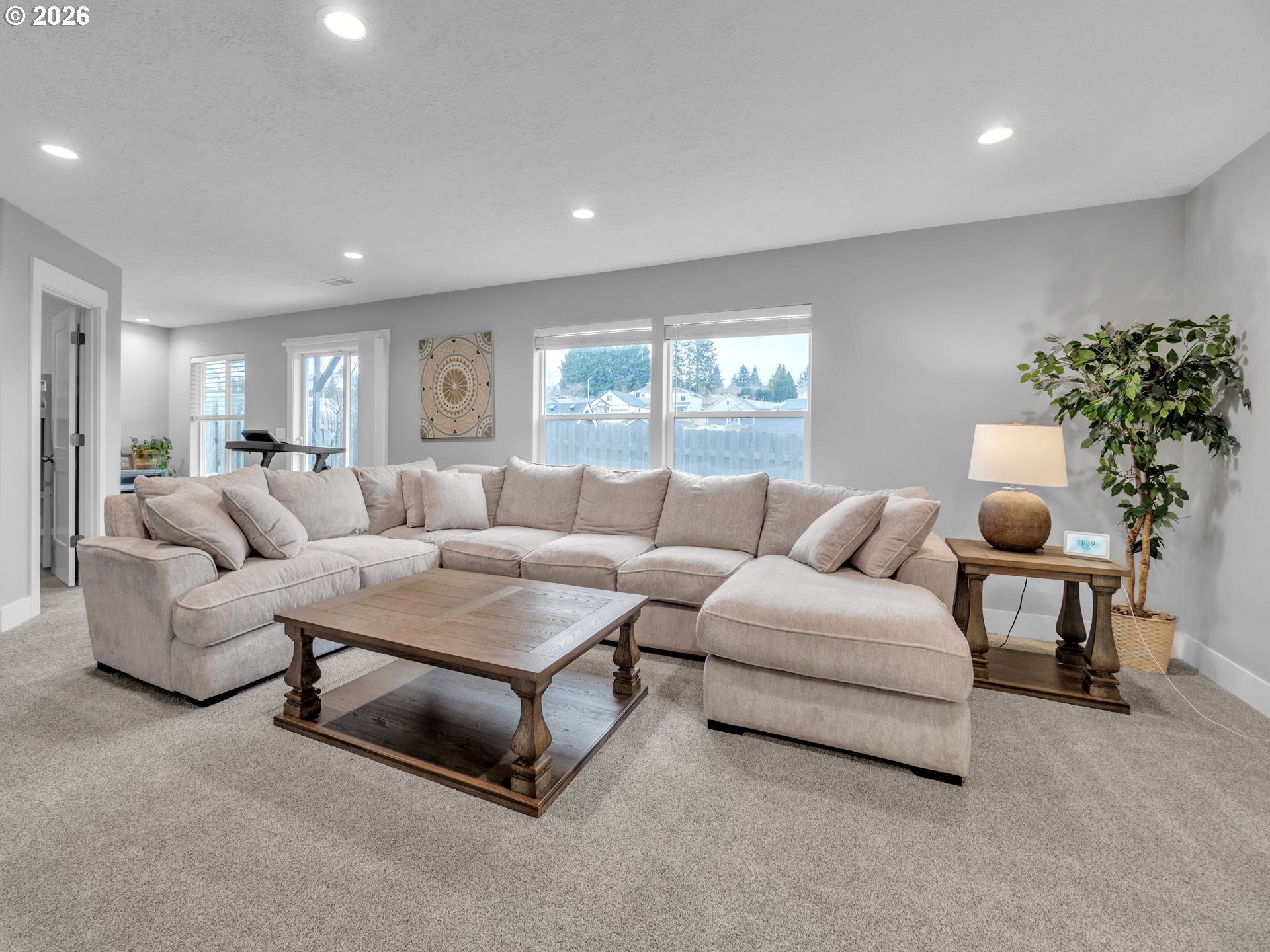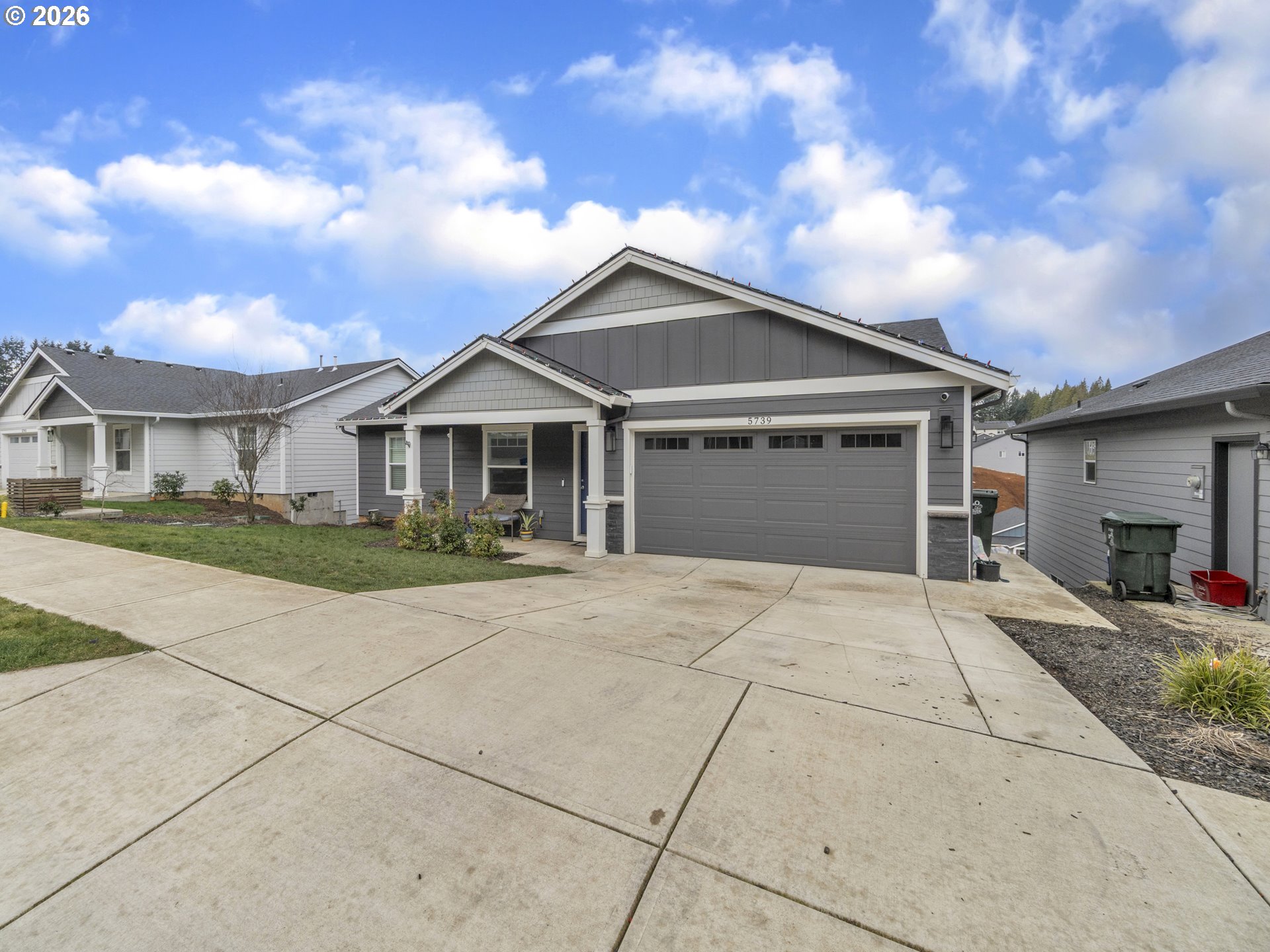 Built 2022 | 2,640sqft | 5 bedrooms | 3 bathrooms. The main level features a primary suite with dual sinks and W-I-C, a living room with gas fireplace opening to the kitchen + large eating island + SS appliances, plus a guest bedroom and full bath. The lower level offers a spacious family room, two additional bedrooms, another full bath, and large storage area. Outside, gives you a patio and deck with elevated views overlooking the community (no HOA). A true must-see.