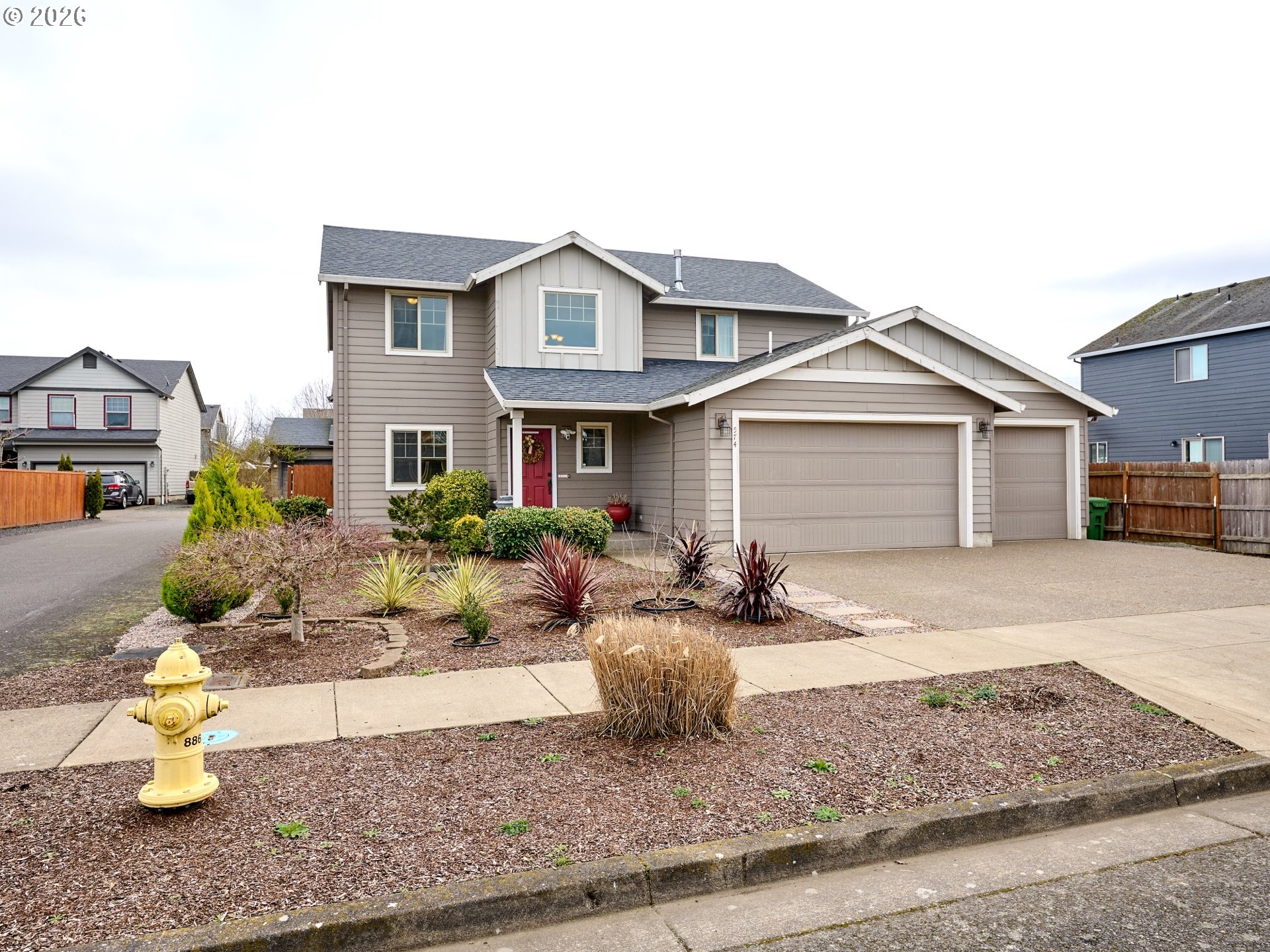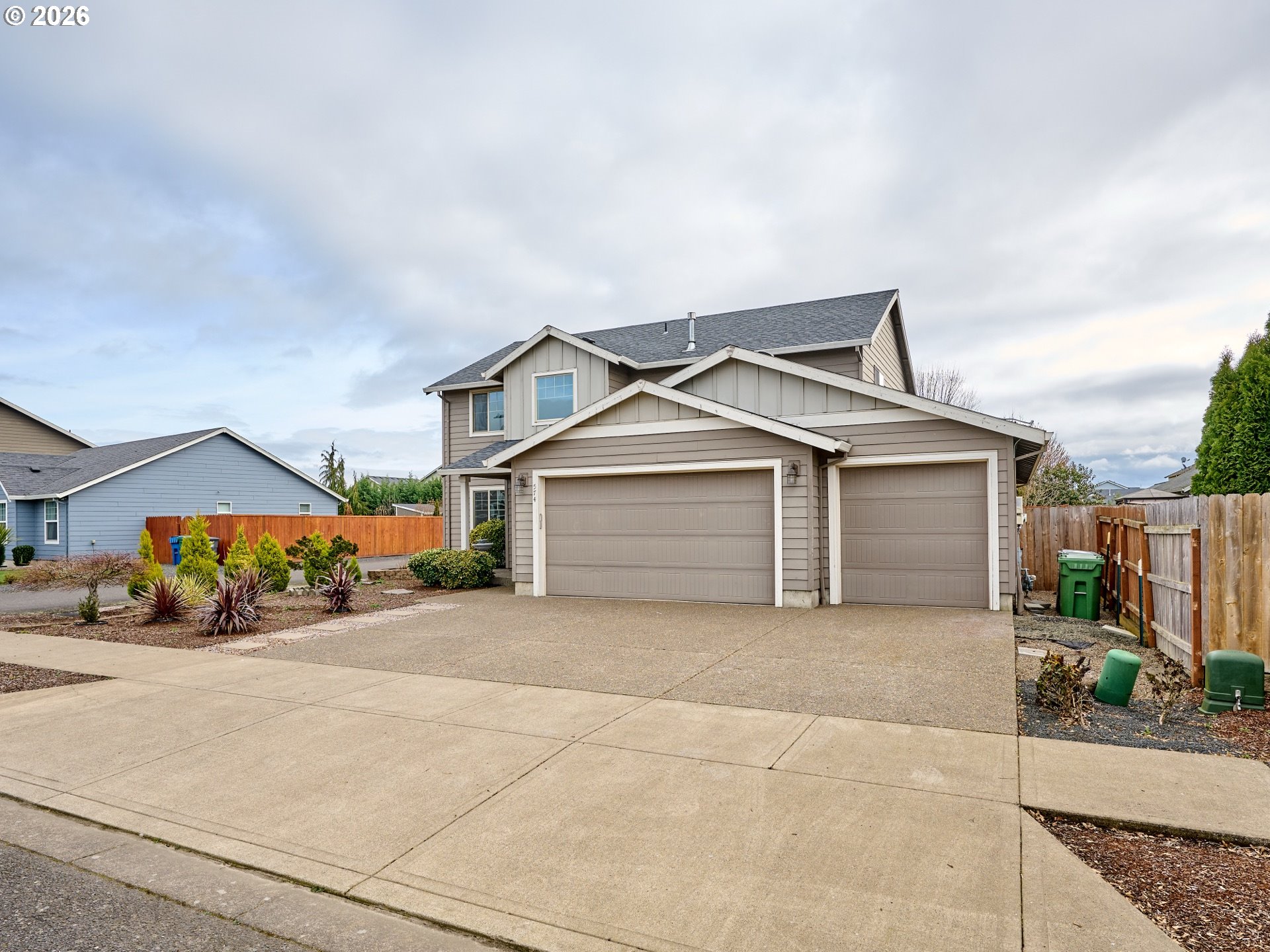 (503) 893-8874Welcome to your next home! This beautifully maintained 4-bedroom, 2.5-bathroom residence offers a perfect blend of comfort and convenience. The open kitchen seamlessly connects to the main living areas, creating a welcoming atmosphere for family gatherings. On the main floor, you'll find a versatile extra bedroom, ideal for use as a home office, guest den, or bonus room. Step outside to discover a backyard oasis, featuring a newly installed fence for complete privacy. Enjoy evenings around the designated firepit space, ready to entertain guests on the covered rear patio, complemented by an additional, newer, large covered patio, perfect for hosting parties. The property features a wide entry gate for easy backyard access and established trees, including fig, persimmon, cherry, and apple, offering both beauty and privacy. The front landscape is well cared for, with tidy greenery, trimmed shrubs, and a clean, inviting entryway that sets a warm first impression. Located in a well-established neighborhood, this home provides quick access to I-5 and nearby shopping outlets, ensuring convenience at your doorstep. The expansive and deep 3-car garage offers ample room for parking and storage, including built-in shelves, while established landscaping presents a beautiful, low-maintenance solution. To top it off, solar panels are incorporated for energy efficiency. Don't miss the opportunity to own this exceptional home, perfect for those who love to entertain and enjoy a serene, private setting.