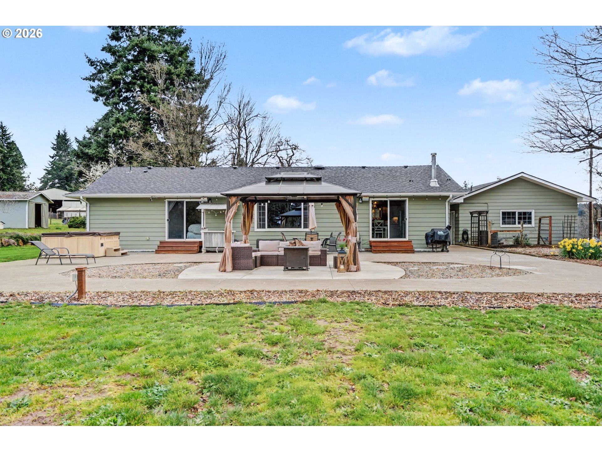 (503) 893-8874Beautifully remodeled home with a View on 9 Acres! An amazing gourmet kitchen at the center of the open floor plan boasts granite countertops, gas stove top w/pot filler, dbl. ovens, lg. butcher block island. Perfect for entertaining! This home has it all.New Roof 2024. Finished basement with lg. family/rec room. Patio with gazebo, above ground pool, hot tub, barn with 6 Stalls, Hay loft, attached lean to for equipment. Fenced/Cross fenced. Shed. Chicken Coop. Paved Drive, Garden Area. New leach lines 2025.