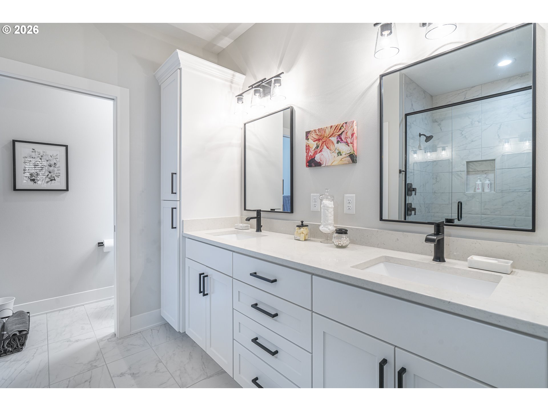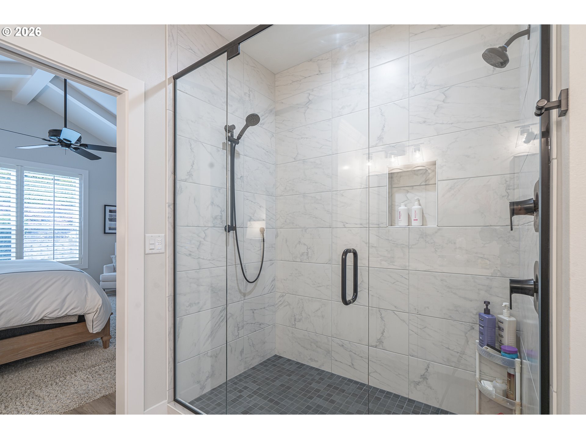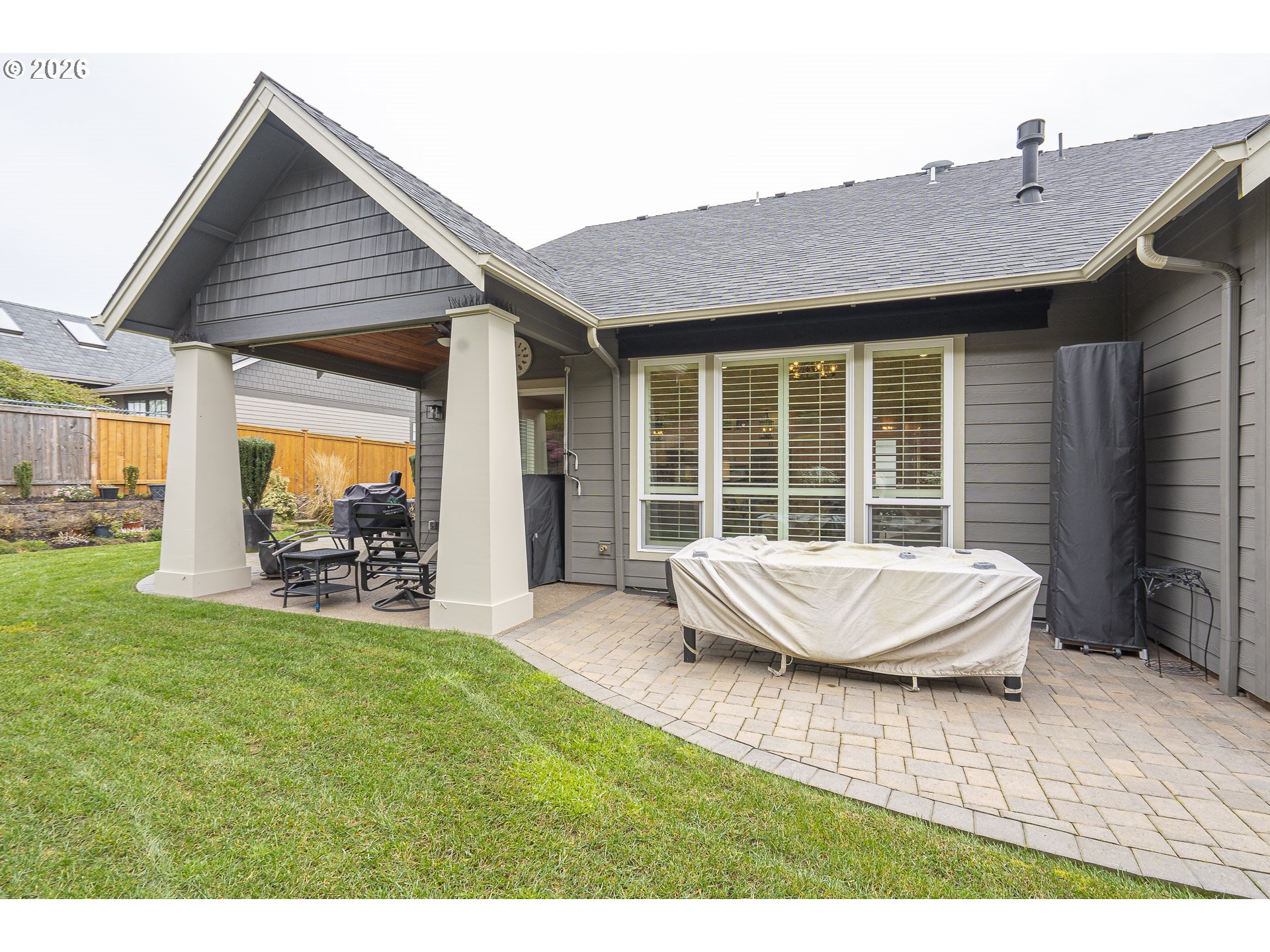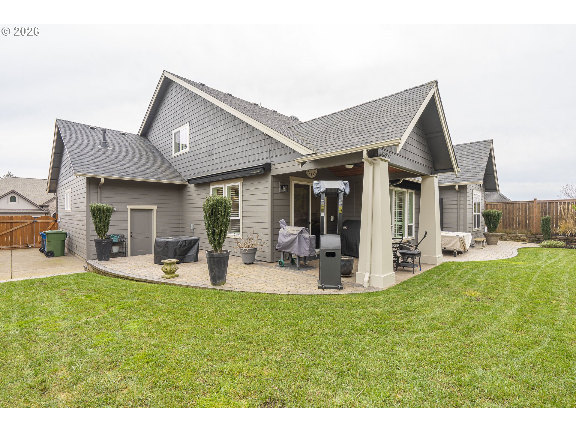 (503) 893-8874Main floor living at its finest! This beautifully maintained home with upstairs bonus room/flex space and full bath offers low-maintenance living in a well-kept neighborhood with an abundance of thoughtful upgrades throughout. The interior showcases custom wood shutters throughout, luxury vinyl plank flooring in the master bedroom, a ceiling fan in the master, and a backup electrical panel ready for generator hookup. The garage features custom cabinetry with a built-in workbench — perfect for hobbyists. Step outside to a gorgeous paver patio with two retractable awnings, a covered area with ceiling fan, and lush, extensively landscaped grounds with a drip irrigation system for effortless upkeep. Security is covered with a security alarm, Ring doorbell, and two outdoor cameras. Additional features include an attic fan for energy efficiency. This one checks every box — don't miss it!