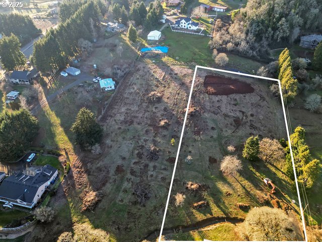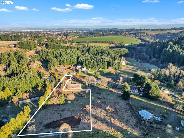 Prime location! Beautiful 2.18 acre lot in South Salem with territorial views and glimpses of Mt. Jefferson. This flag lot features a seasonal stream, start of a gravel driveway, partial fencing, and established cherry, apple, walnut, and cedar trees. Septic approved, recently surveyed, and pinned. A cleared and prepped homesite awaits at the top of the slope, or choose your ideal spot. Enjoy a peaceful setting close to town, perfect for building your dream home.