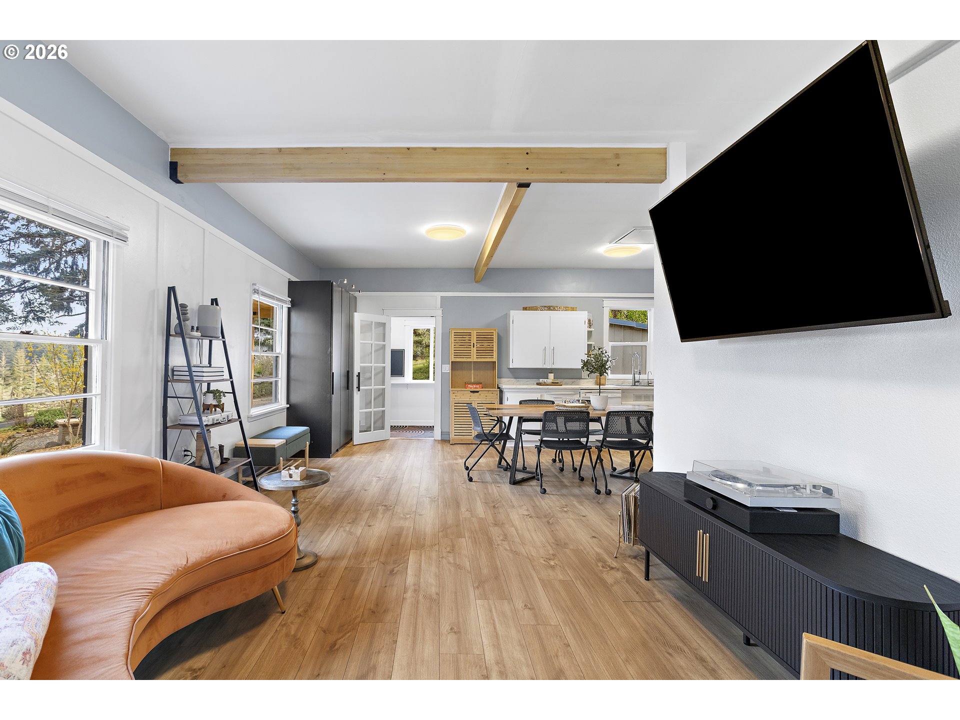 Updated cottage in peaceful setting surrounded by nature just outside city limits. Open floorplan, studio-style interior with beautiful finishes. New roof and gutters in 2025, exterior paint 2026. Other features include expansive parking, underground cellar, unfinished attic, low-voltage landscape lighting. This is move-in and comfortable living ready!
