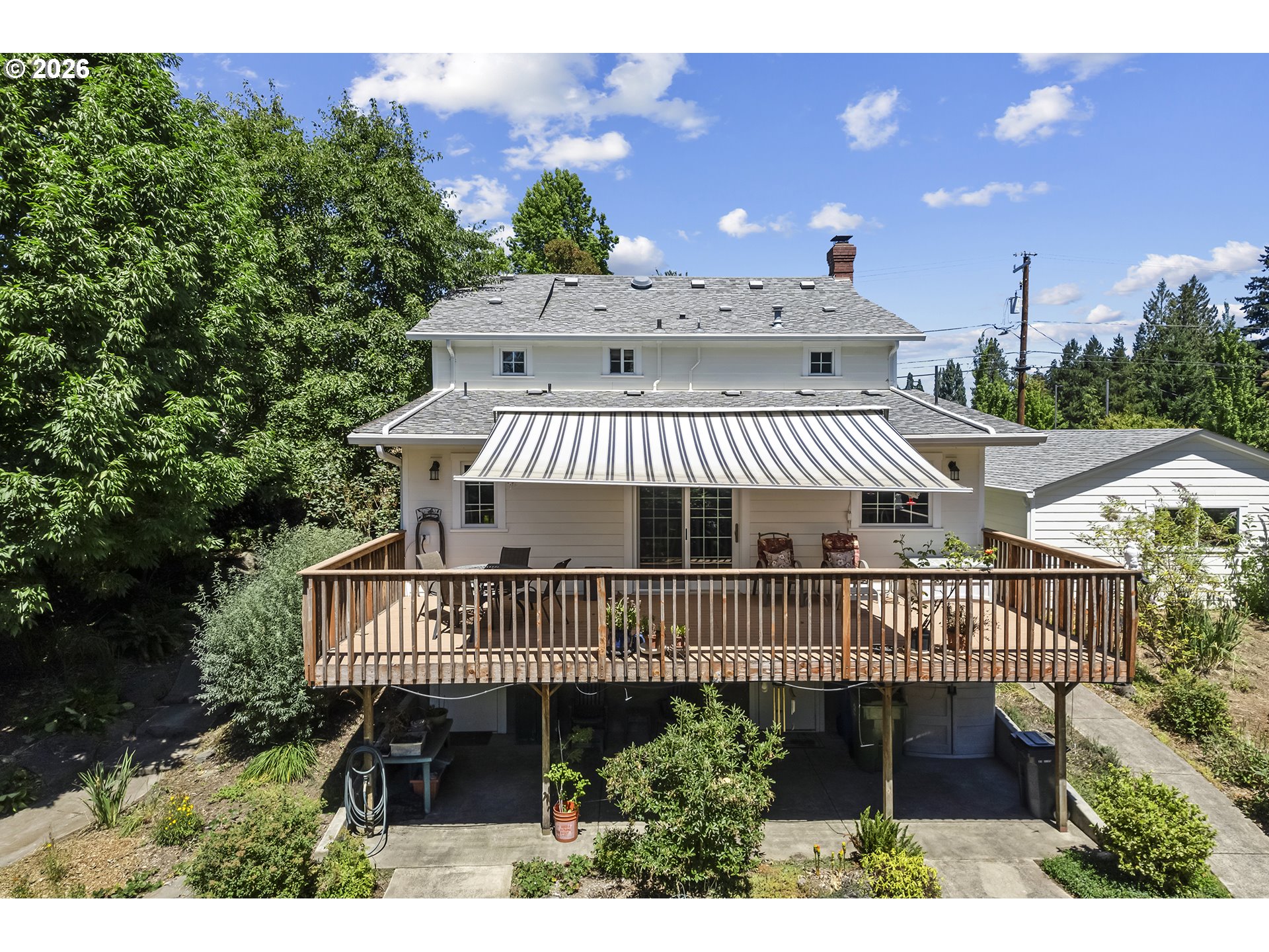 (503) 893-8874Lovingly Restored North Facing American Colonial. Beautifully maintained 5 bedroom, 2.5 bath home offers thoughtful upgrades throughout. Finished basement features a separate entrance, ramp access, and kitchenette for multi generational living, guest quarters, or income potential. Multiple bedroom configuration versatility, including a flexible 5th bedroom in the family/den or basement. Expanded, remodeled kitchen with abundant storage, huge walk in pantry with second refrigerator. Trex composite decking invites effortless outdoor enjoyment. Ceiling fans in every room ensure year round comfort. Home is meticulously designed to maximize intentional, usable space. Expansive yard is a true sanctuary with winding connected walking paths, charming footbridges, concrete pavers, raised garden beds, and lush, mature landscaping supported by a full sprinkler system and multiple faucets. Whether enjoyed as a private retreat or envisioned as an event ready venue with income potential, the possibilities are endless. Additional highlights include newer fiber cement siding, new gutter guards, an oversized 2 car garage with its own electrical panel (perfect for a future ADU). Potential RV/boat parking, and space for a future parking pad. A rare opportunity to own a truly versatile property in a storybook setting!