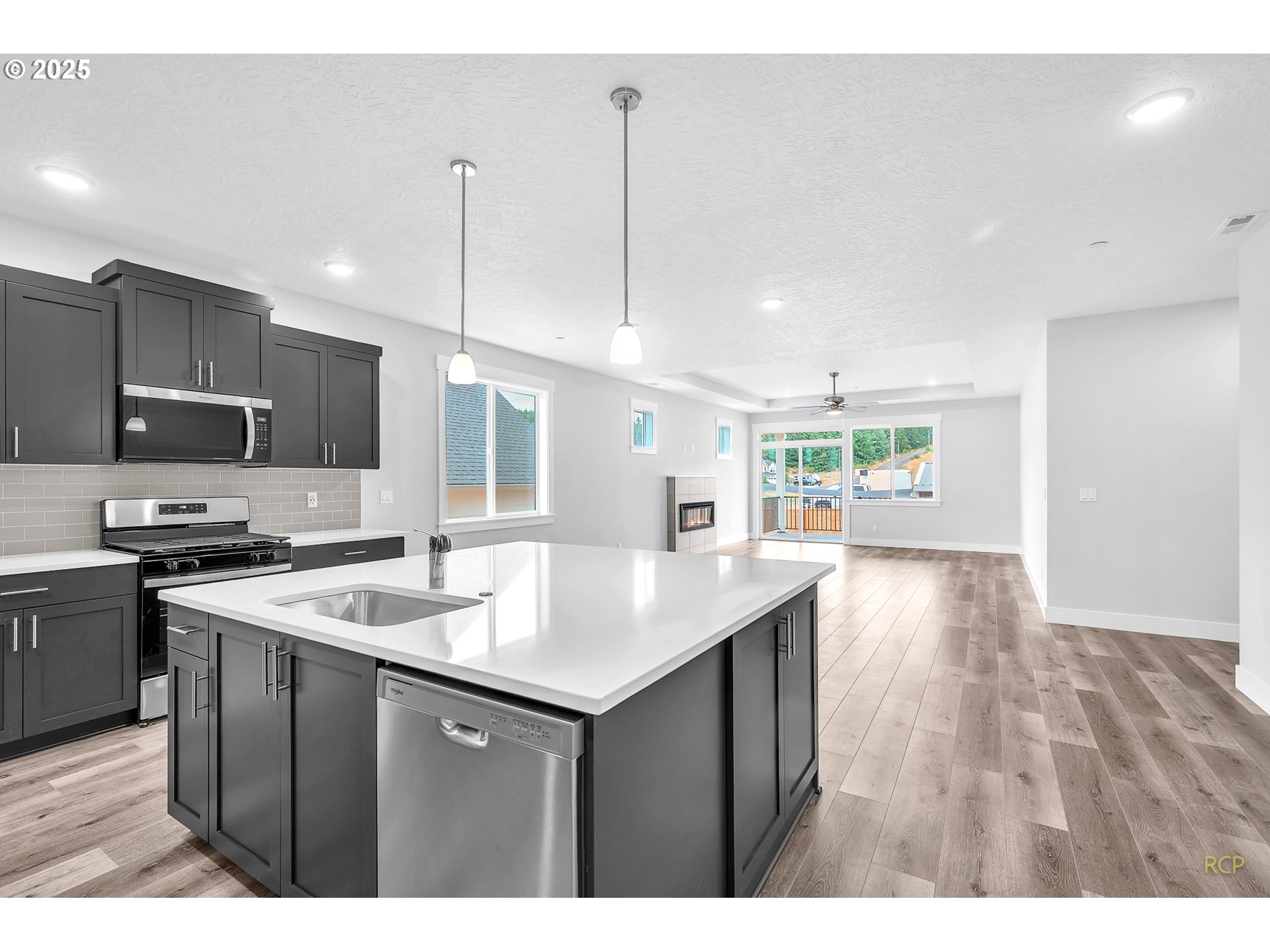 Designed with ease and elegance in mind, this beautifully crafted 4-bedroom, 2-bathroom home offers the best of one-level living in the heart of Pioneer Village. With an open floor plan that maximizes every square foot, this home is ideal for both functionality and style.Step into the spacious main living area, where a modern electric fireplace adds a cozy focal point and the kitchen shines with rich dark grey cabinetry, crisp white countertops, and a central island perfect for casual dining or entertaining. The seamless flow to the covered back deck makes indoor-outdoor living a breeze. The primary suite provides a peaceful retreat, complete with a walk-in closet, tile shower, and a double vanity in the private en suite bath. The versatile fourth bedroom offers ideal space for a home office, guest room, or creative space, making this home flexible to fit your lifestyle.Additional highlights include a 2-car garage, gas appliances, and quality finishes throughout—all nestled in a welcoming neighborhood that feels like home from the moment you arrive.If you're looking for comfort, convenience, and modern design—all on one level—this home is a must-see.