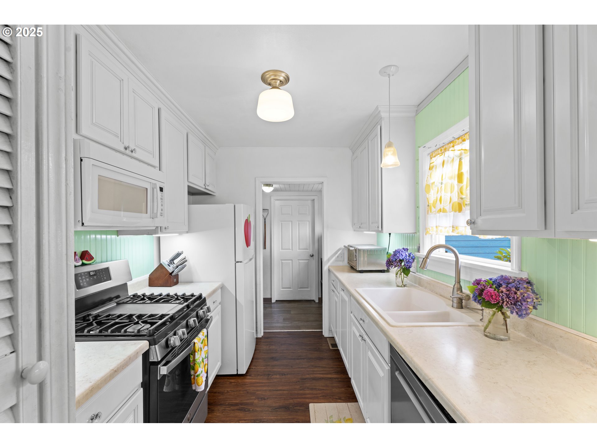 Discover the perfect blend of classic charm and modern updates in this beautiful 1,434 square foot home, featuring four bedrooms and one bathroom, nestled on a sizable 0.11-acre corner lot. This property is ideal for those who dream of cultivating a large garden or contemplating future constructions like a garage or workshop. Experience the timeless craftsmanship apparent in the arcano of original design elements such as arched doorways, elegant wood millwork, and a built-in dining room hutch. The enclosed porch offers a warm, inviting entryway into a home filled with character. Recent upgrades are evident and enhance the home’s appeal, including a new roof and exterior paint in 2024, tastefully remodeled kitchen, fresh exterior paint, updated double pane insulated windows and new flooring, blending seamlessly with the original character. Indoor features include a sundrenched, spacious living room, a welcoming dining area, and a master bedroom thoughtfully converted from a garage to offer ample personal space. Additional amenities like an interior laundry room and efficient forced air gas heating system ensure practical living in a delightful setting. Filled with natural light from numerous windows, this house affords a bright and airy ambiance, inviting relaxation and comfort. It’s a perfect space for anyone looking to enjoy the best of both worlds: timeless architectural elements coupled with modern comforts and conveniences.