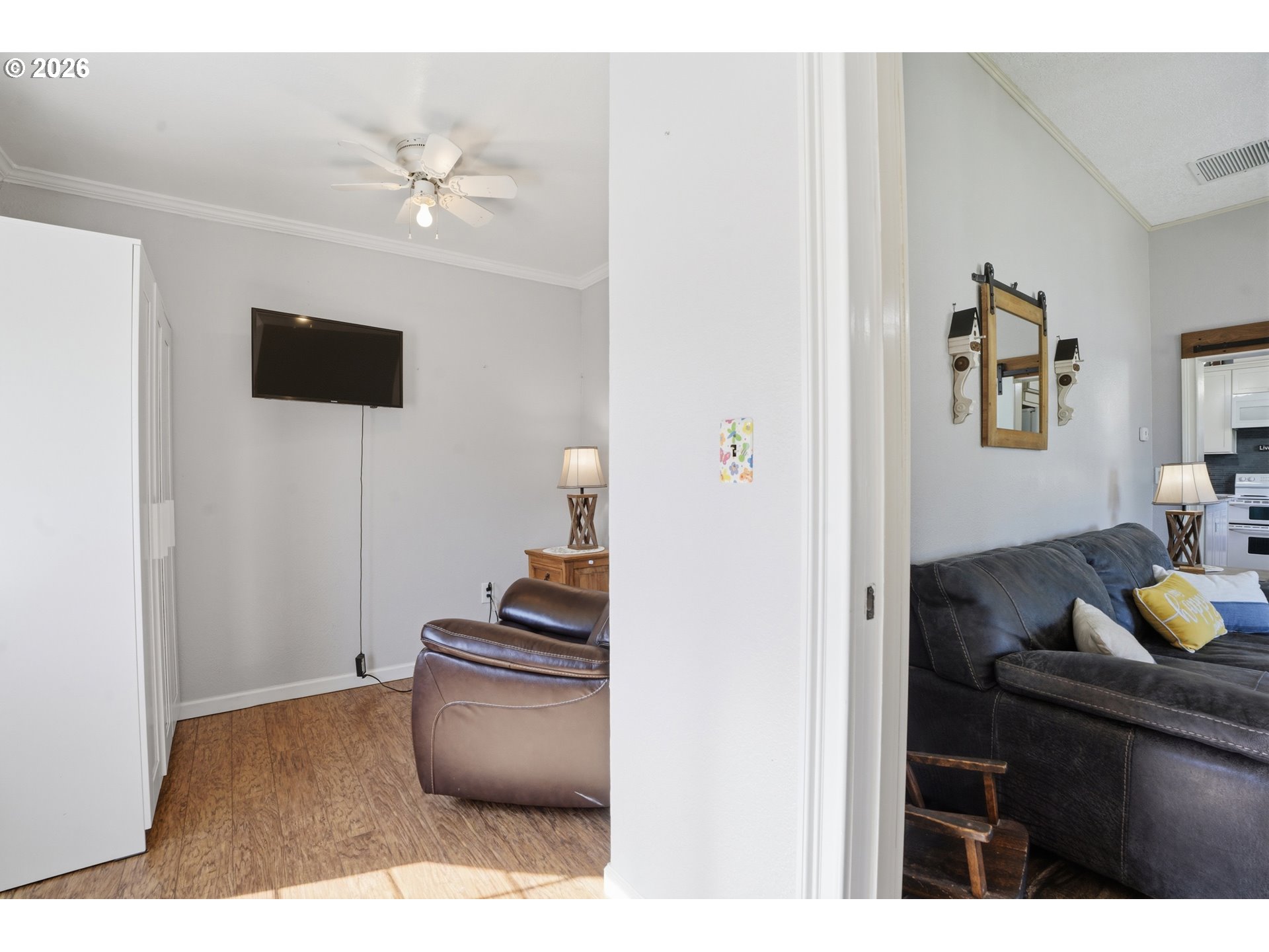 Welcome to this Woodburn gem, full of charm and updates throughout! Step inside to a light-filled living room with soaring 10-foot ceilings that create a warm, inviting sense of space. The beautifully remodeled kitchen (2020) is a true centerpiece, featuring stunning granite countertops and a spacious island with plenty of seating for gatherings.This delightful home offers 3 bedrooms and 2 bathrooms, including a private primary suite with cathedral ceilings, its own entrance, a covered deck, and a walk-in shower, your own peaceful retreat. Just off the kitchen, you’ll find a convenient utility room with extra storage, laundry, and a second bathroom complete with a relaxing jetted tub.Step outside to enjoy the fully fenced backyard, featuring two covered spaces ideal for year-round entertaining. The boasted front yard features ample garden space and a flower-lined walkway. For additional space, the home includes a detached garage and a fully insulated shed equipped with electricity, heating, and cooling.Recent updates provide peace of mind and modern comfort, including a newer roof and solar panels (just 3 years old), updated bathrooms, new entry doors, fresh interior and exterior paint, new flooring throughout, a new deck off the primary suite, a new lawn with sprinkler system, updated siding, plumbing, vapor barrier, and so much more. This home truly blends character and modern comfort and functionality—you won’t want to miss it!