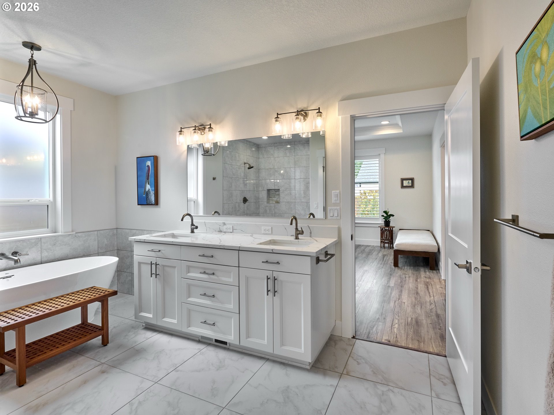 Single story home featuring custom high end construction with thoughtful added extras throughout and a 3 car garage. Fully fenced back yard with beautifully designed, low maintenance landscaping, plumbed for gas bbq, including over $20,000 in professional landscaping work w/ wifi enabled drip controls. Inside, enjoy new plantation shutters, luxury finishes, a large kitchen island and a spacious, stunning primary bathroom highlighted by a large soaking tub.