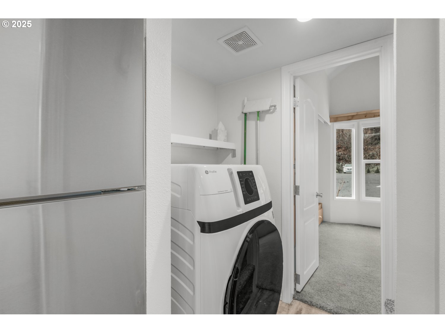 Beautifully maintained 1-bedroom, 1-bath Tiny Home on larger end lot in the tranquil, gated Hope Valley Resort community! Designed for easy living and minimal maintenance, this creek side home offers a peaceful, resort-style lifestyle where less upkeep means more time to relax and enjoy your surroundings. While the home may be tiny, the community and amenities are anything but! Enjoy stunning views of rolling hills and surrounding forest from your covered deck, perfect for morning coffee or evening unwinding. Inside, the home features beautiful flooring throughout, vaulted ceilings, a cozy main-level bedroom, kitchen with fridge, range, microwave and portable dishwasher, dedicated laundry space with 2-in-1 washer/dryer, and an 18x28 upstairs loft ideal for guests, a home office, or flex space. An 11x7 insulated storage shed provides room for your extra belongings. There's plenty of parking for guests. Hope Valley Resorts offers exceptional amenities including a swimming pool, private catch-and-release fishing lake, clubhouse, lodge, fitness center, basketball courts, tennis and pickleball courts, walking trails, community garden, dog park, storage units, and more, all in a serene, natural setting. Ideally located just one mile from Willamette Valley Vineyards and only a 5-minute drive to South Salem dining and shopping, this location truly can’t be beat. Home has new paint, new leaf guard gutters for added peace of mind. Updates include updated bathroom, blinds, carpet in 2025 and new countertops and mini-split in 2024. $992 park rent includes all park amenities plus water, sewer, garbage, and yard debris, making this an effortless, lock-and-leave lifestyle in a beautiful resort-like community.